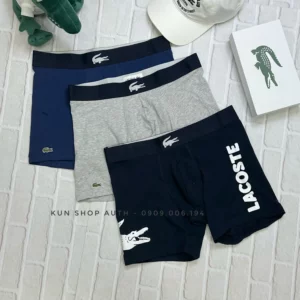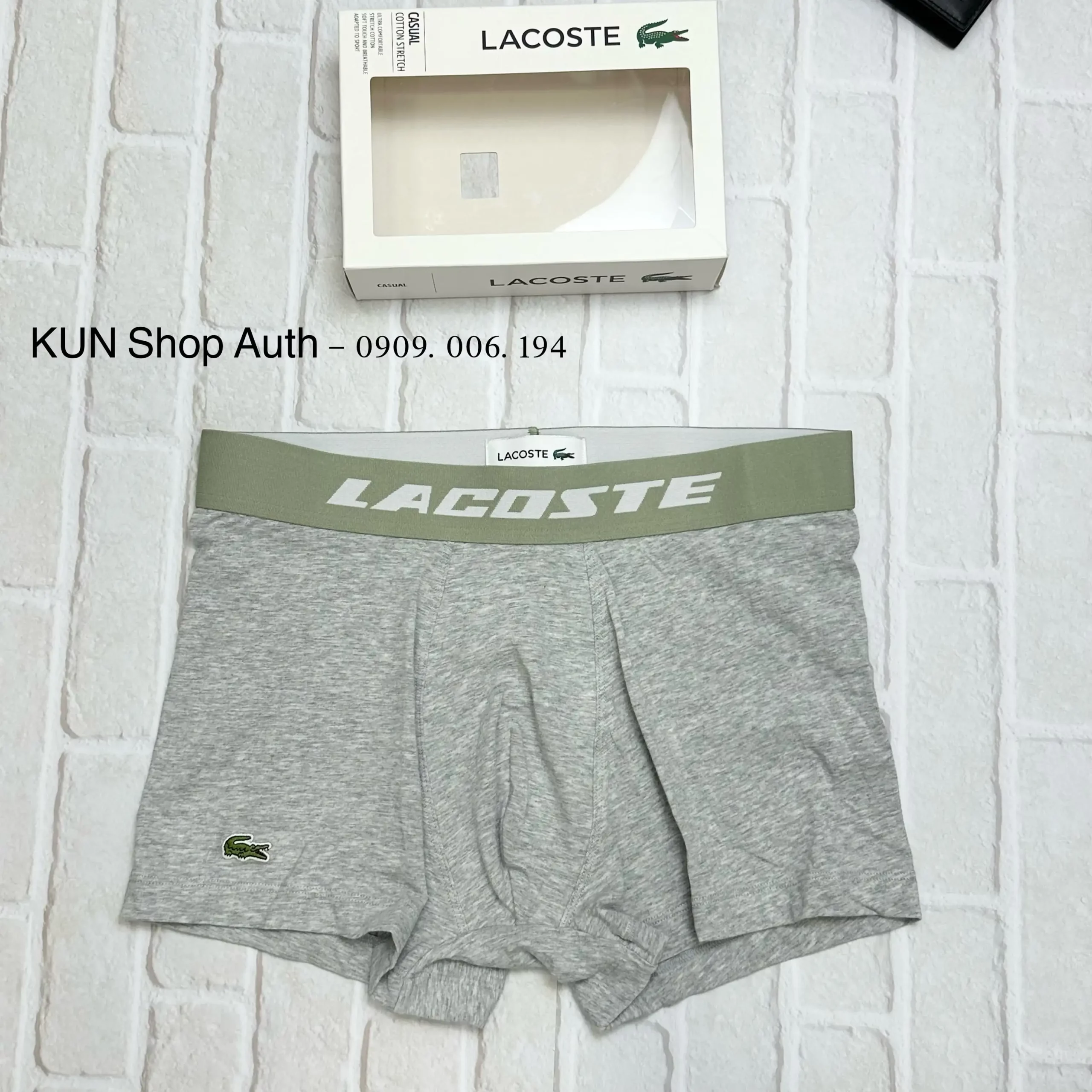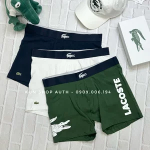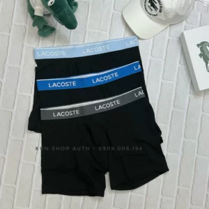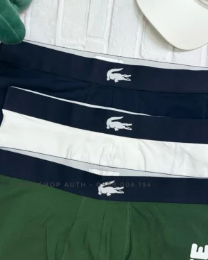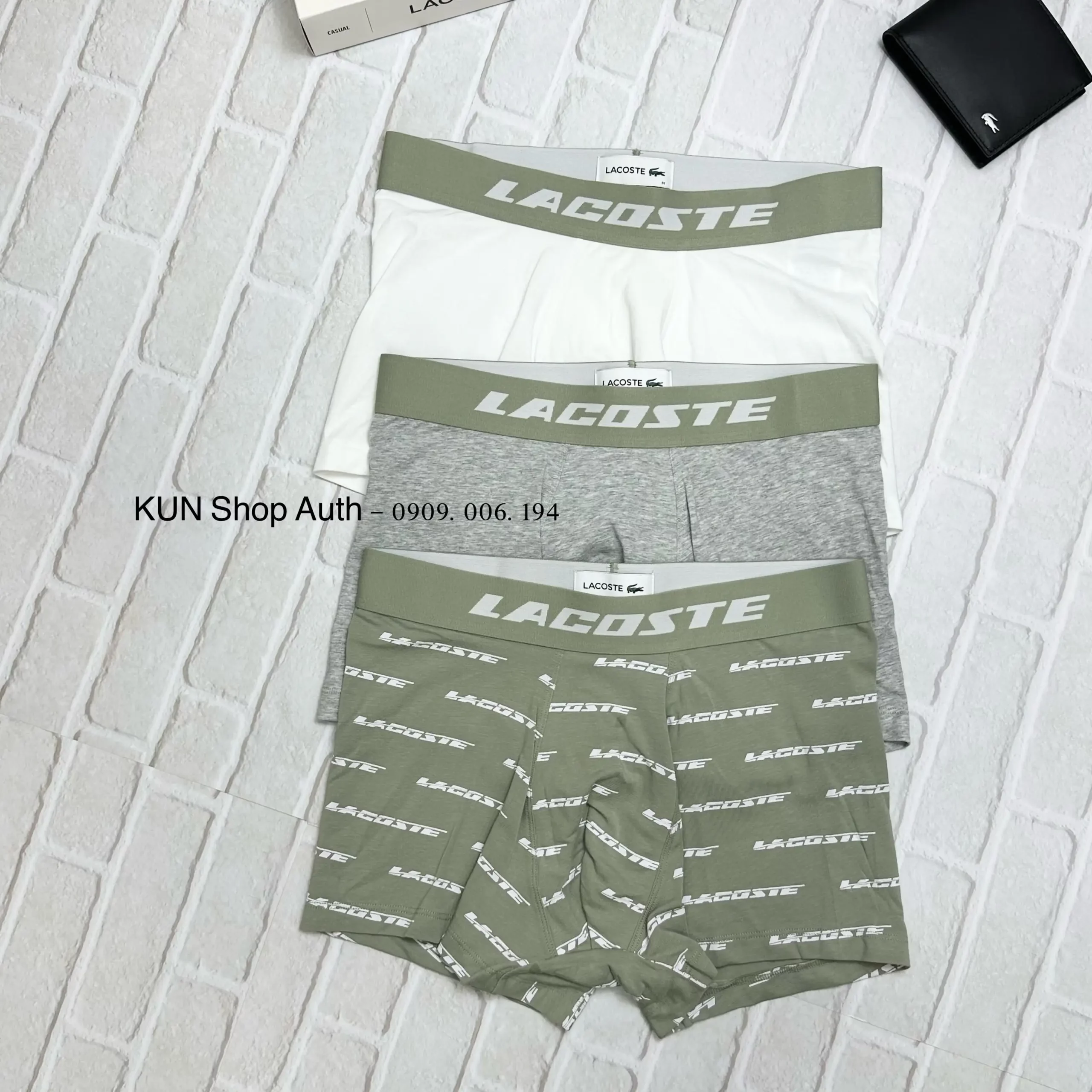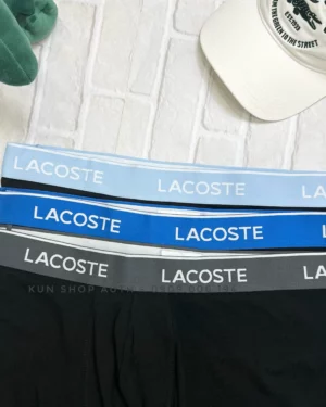 Set 3 quần lót Lacoste Trunks/Boxers, lưng quần có chữ LACOSTE to, chất liệu 95% cotton 5% elastane.