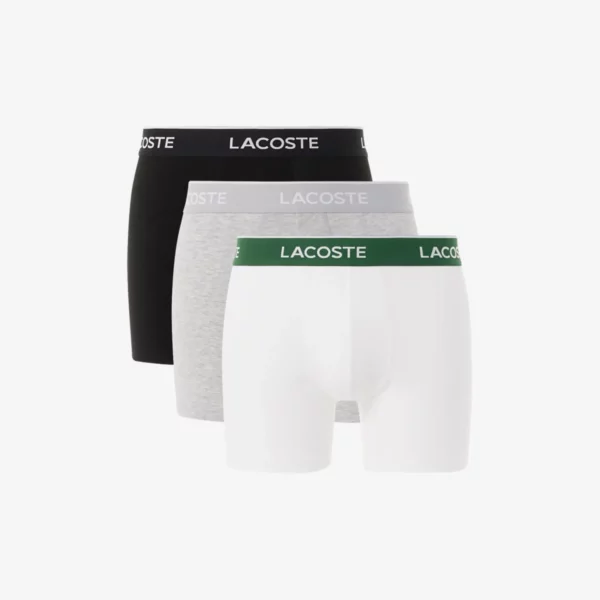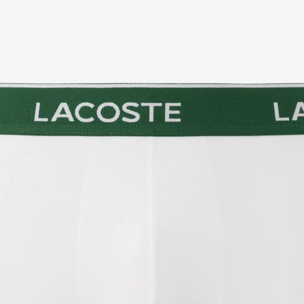 Set 3 quần lót Lacoste Trunks/Boxers lưng quần có chữ LACOSTE, chất liệu 95% cotton pha 5% elastane