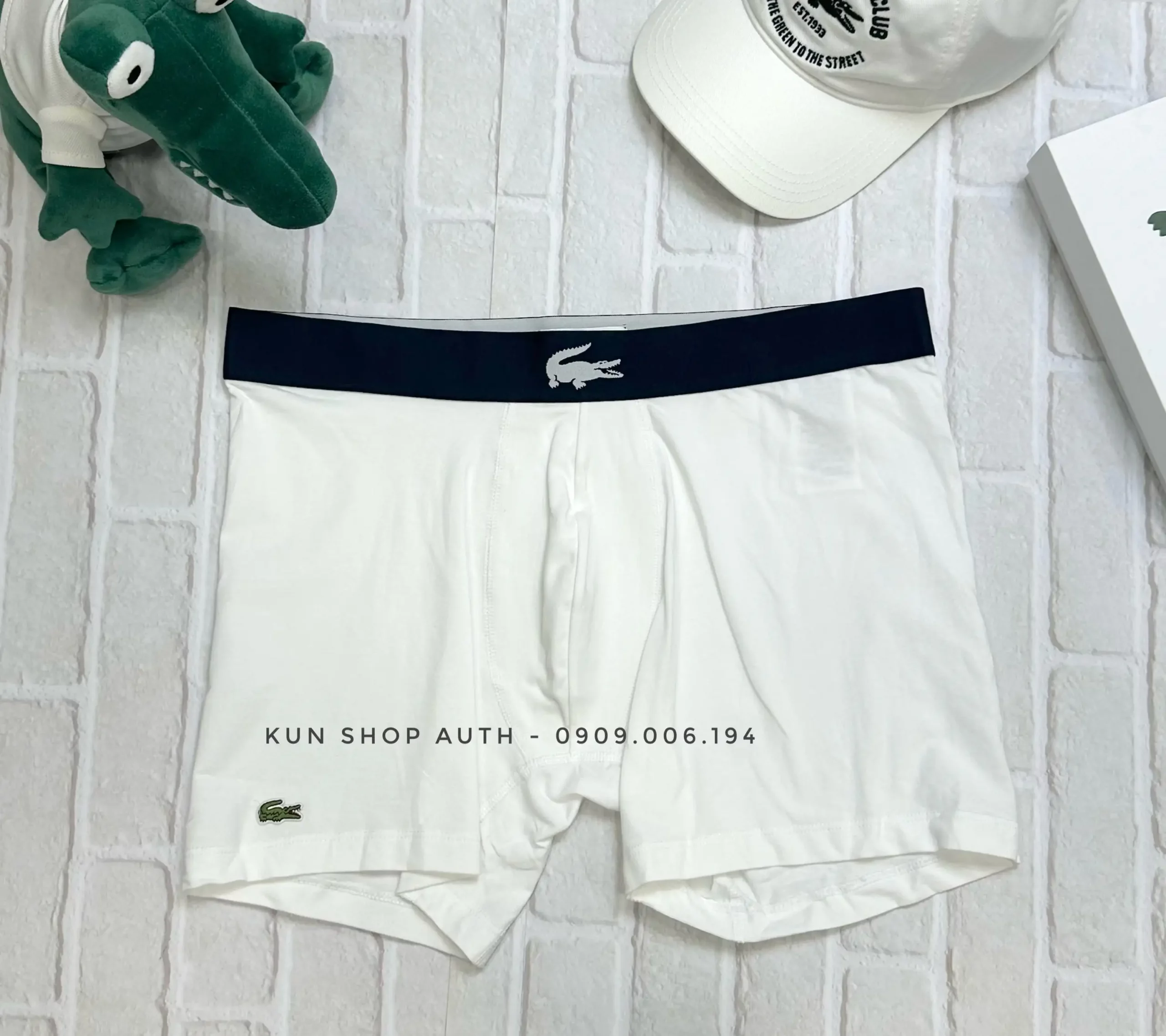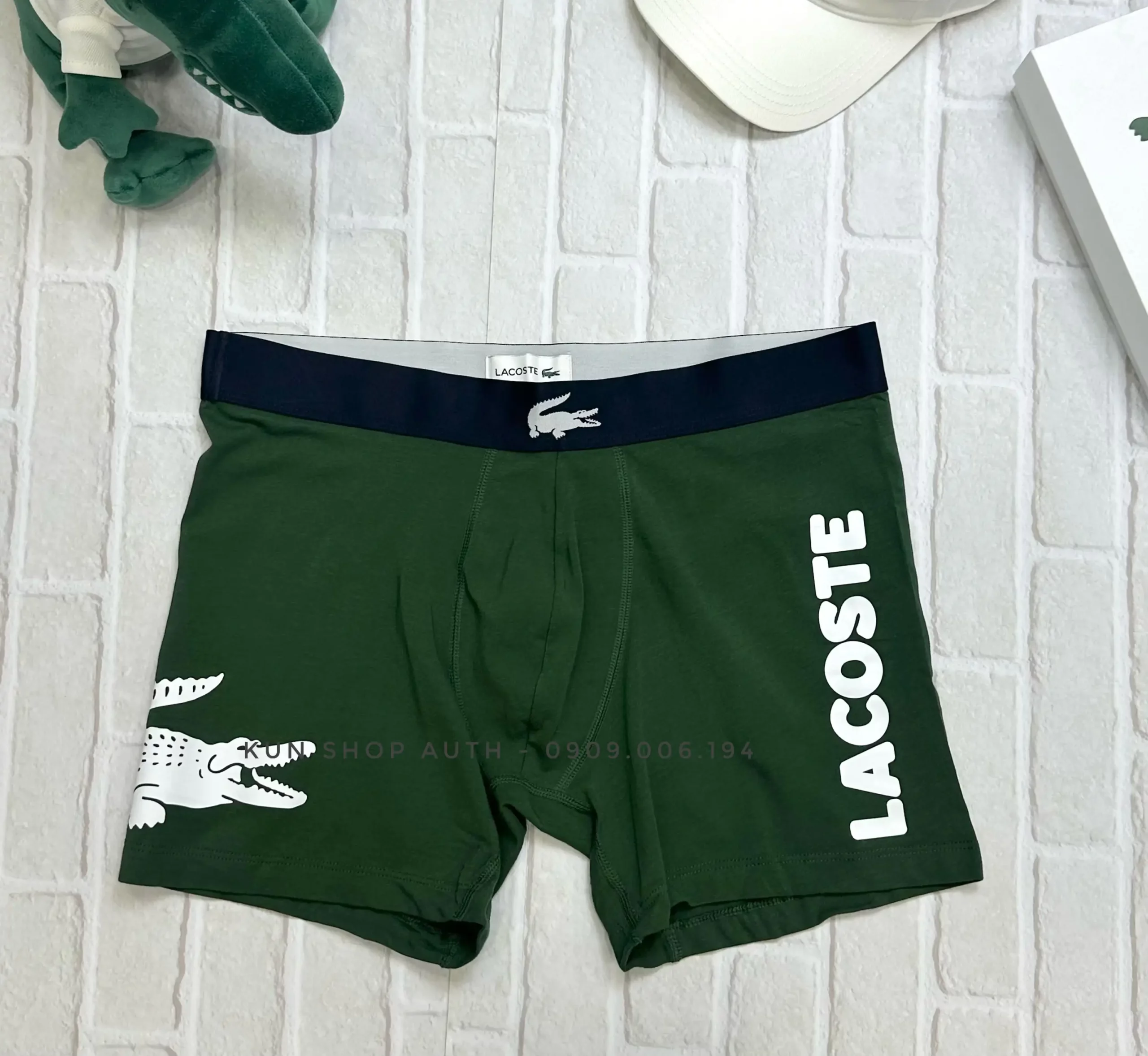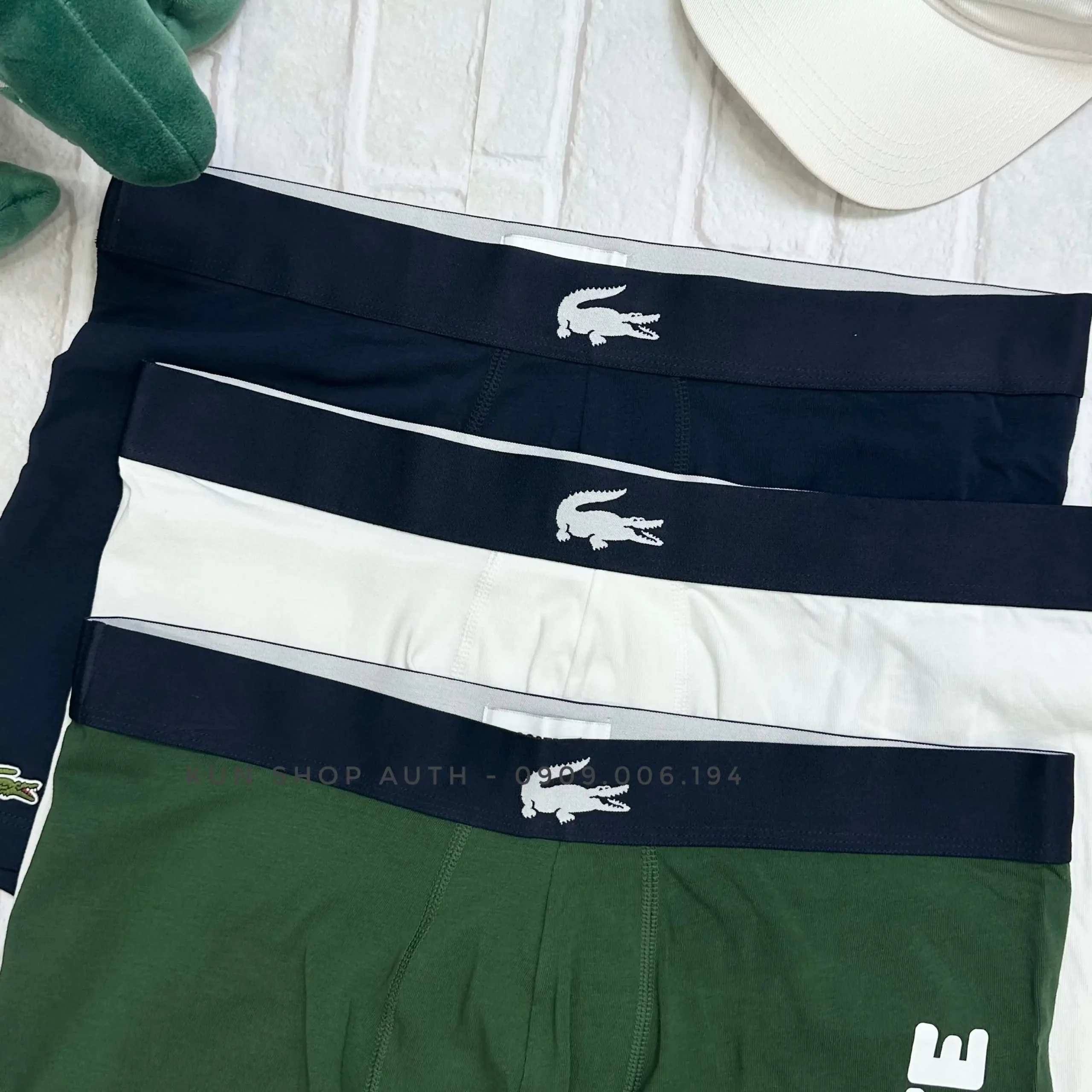 Set 3 quần lót Lacoste Trunks/Boxers lưng quần có chữ LACOSTE to, chất liệu 95% cotton 5% elastane. Made in Sri Lanka