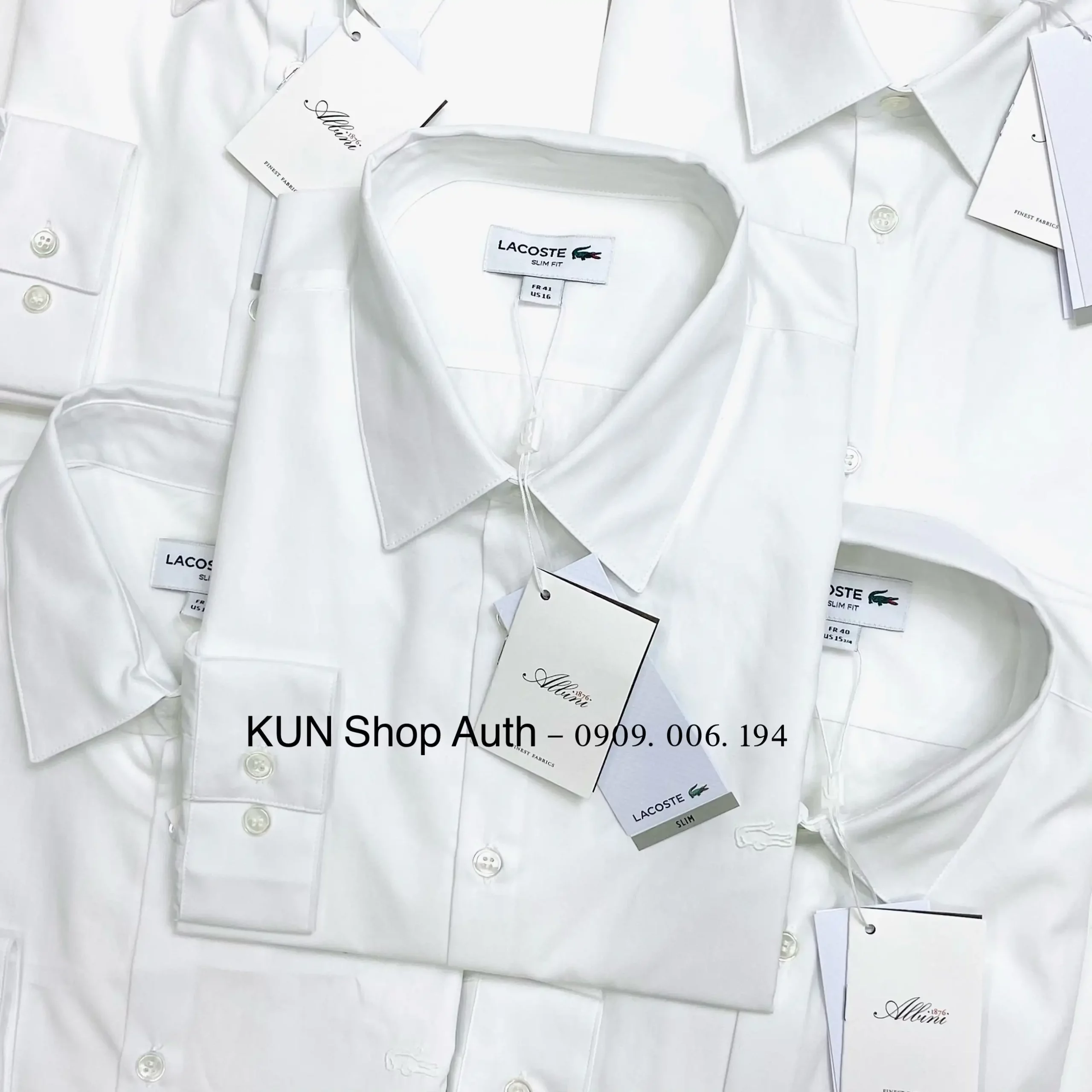 Áo sơmi Lacoste tay dài, form SLIM FIT, màu trơn, logo cá sấu trắng thêu, chất liệu 100% Albini cotton của Ý