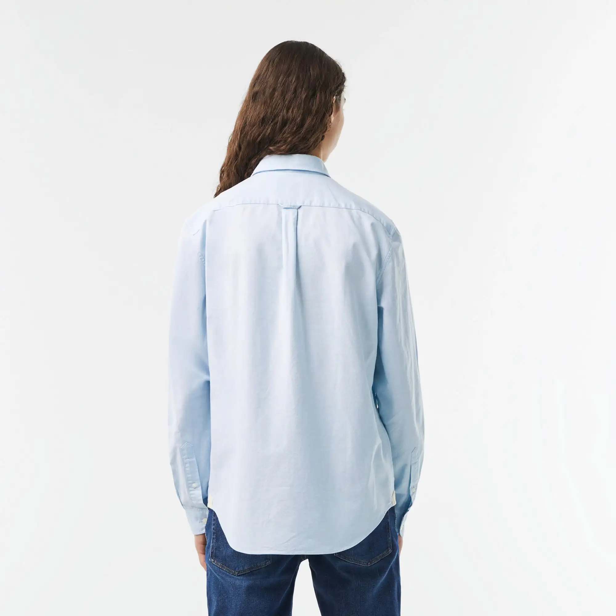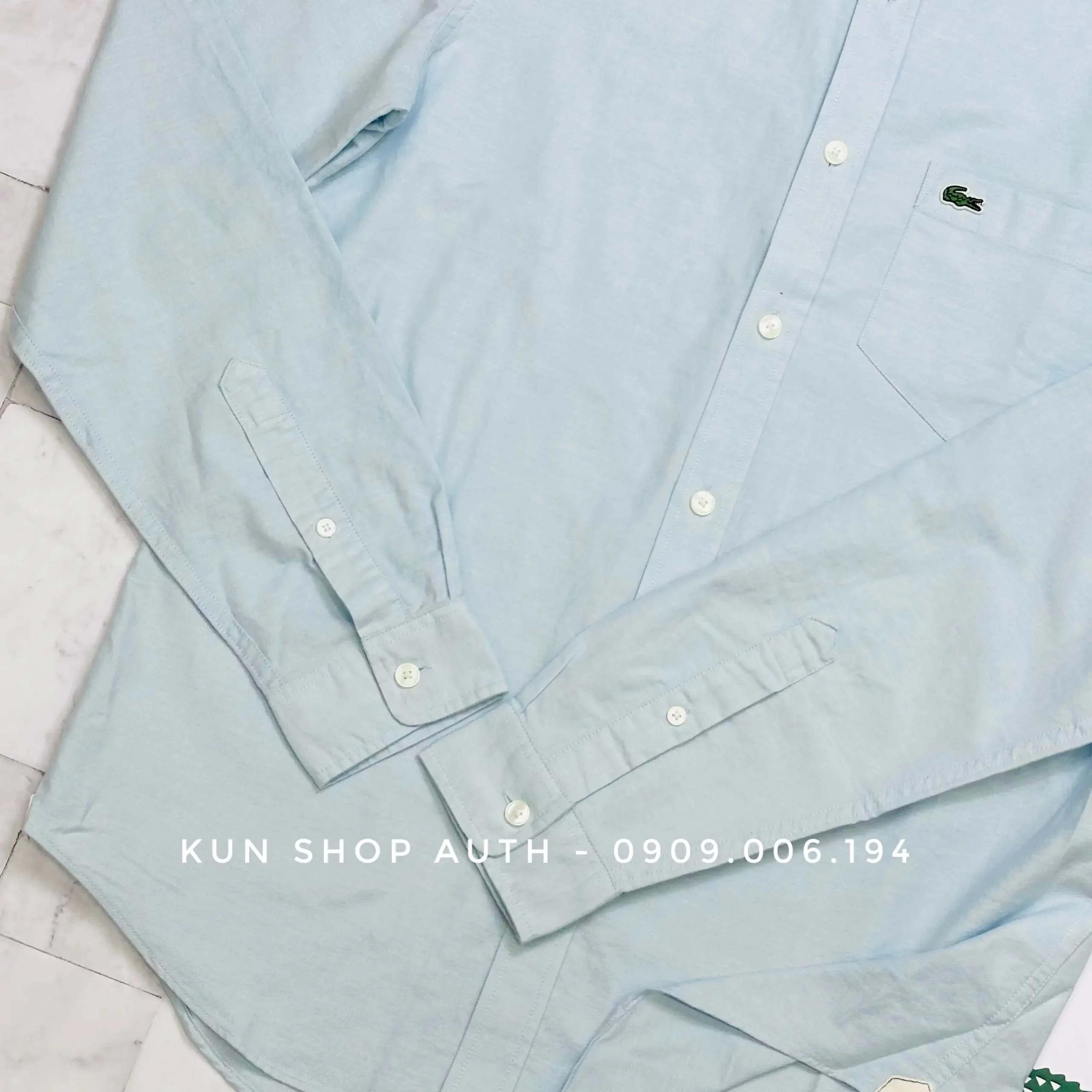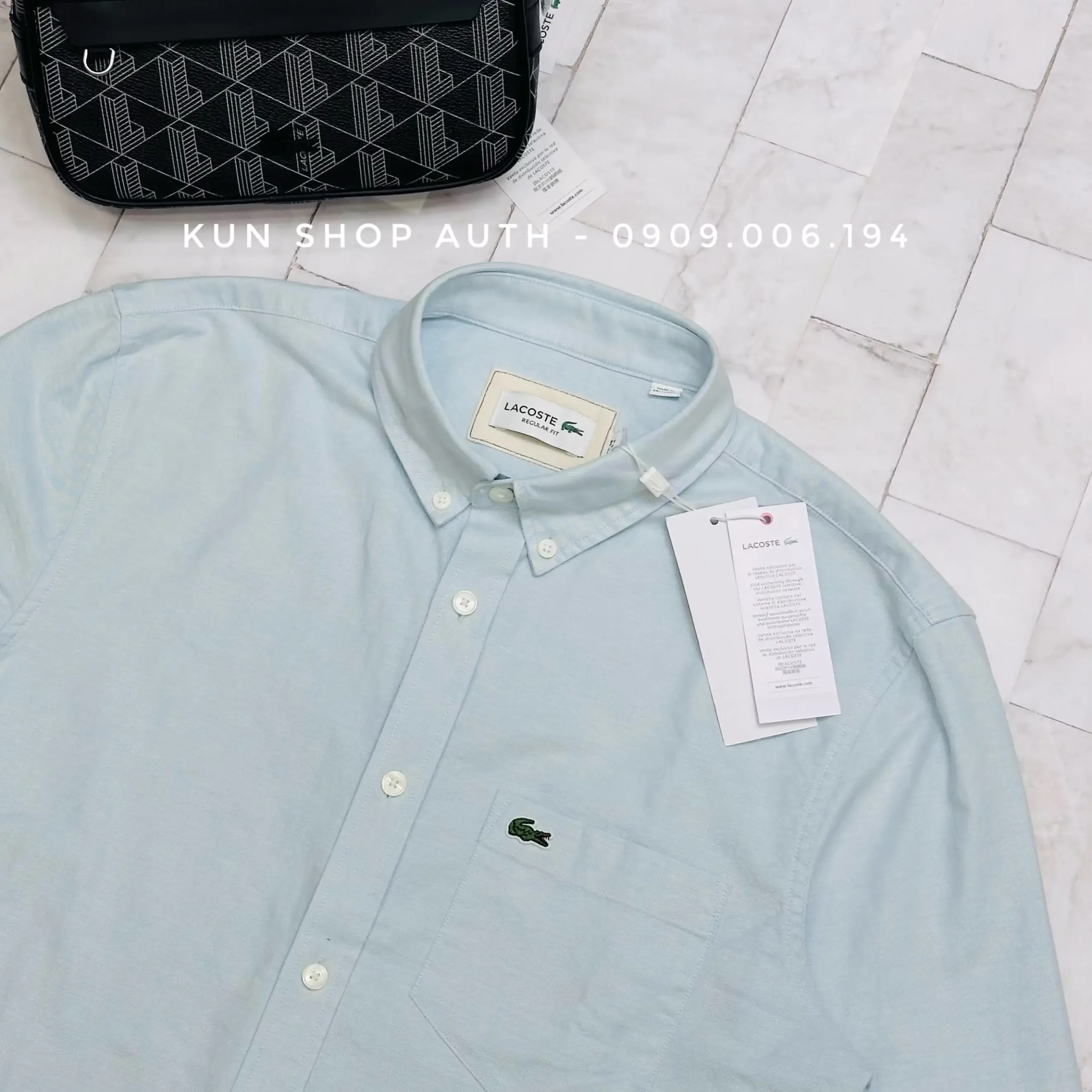 Áo sơmi Lacoste tay dài, form REGULAR FIT, màu trơn, có túi áo, logo cá sấu xanh thêu, chất liệu 100% Oxford cotton