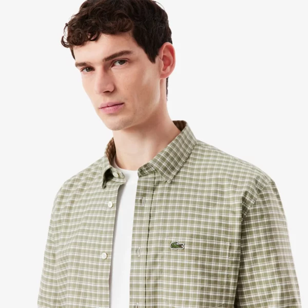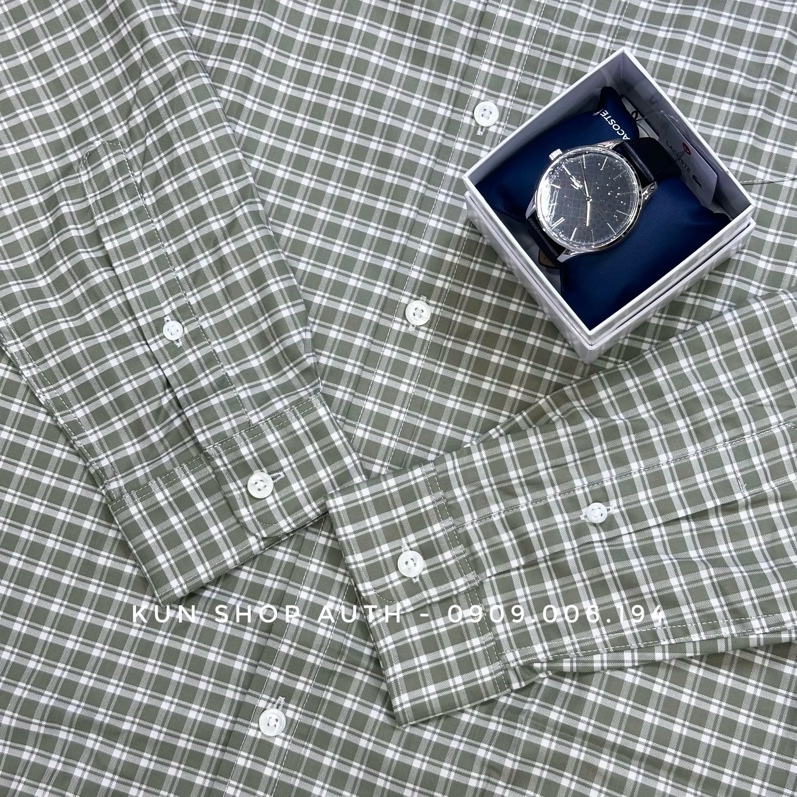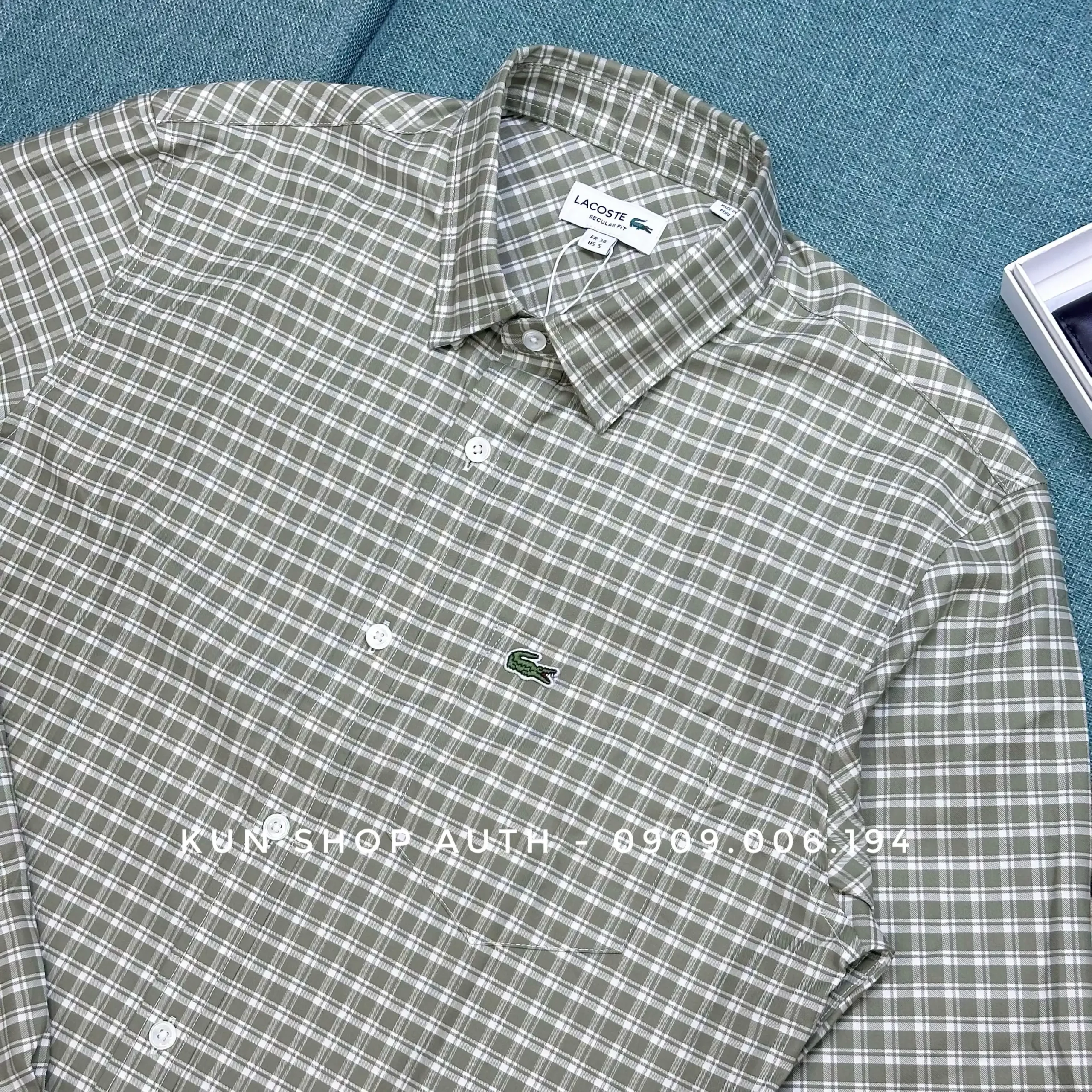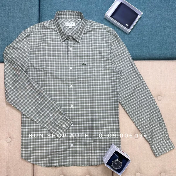 Áo sơmi tay dài Lacoste, form REGULAR FIT, thiết kế sọc caro, logo cá sấu xanh, chất vải 100% cotton