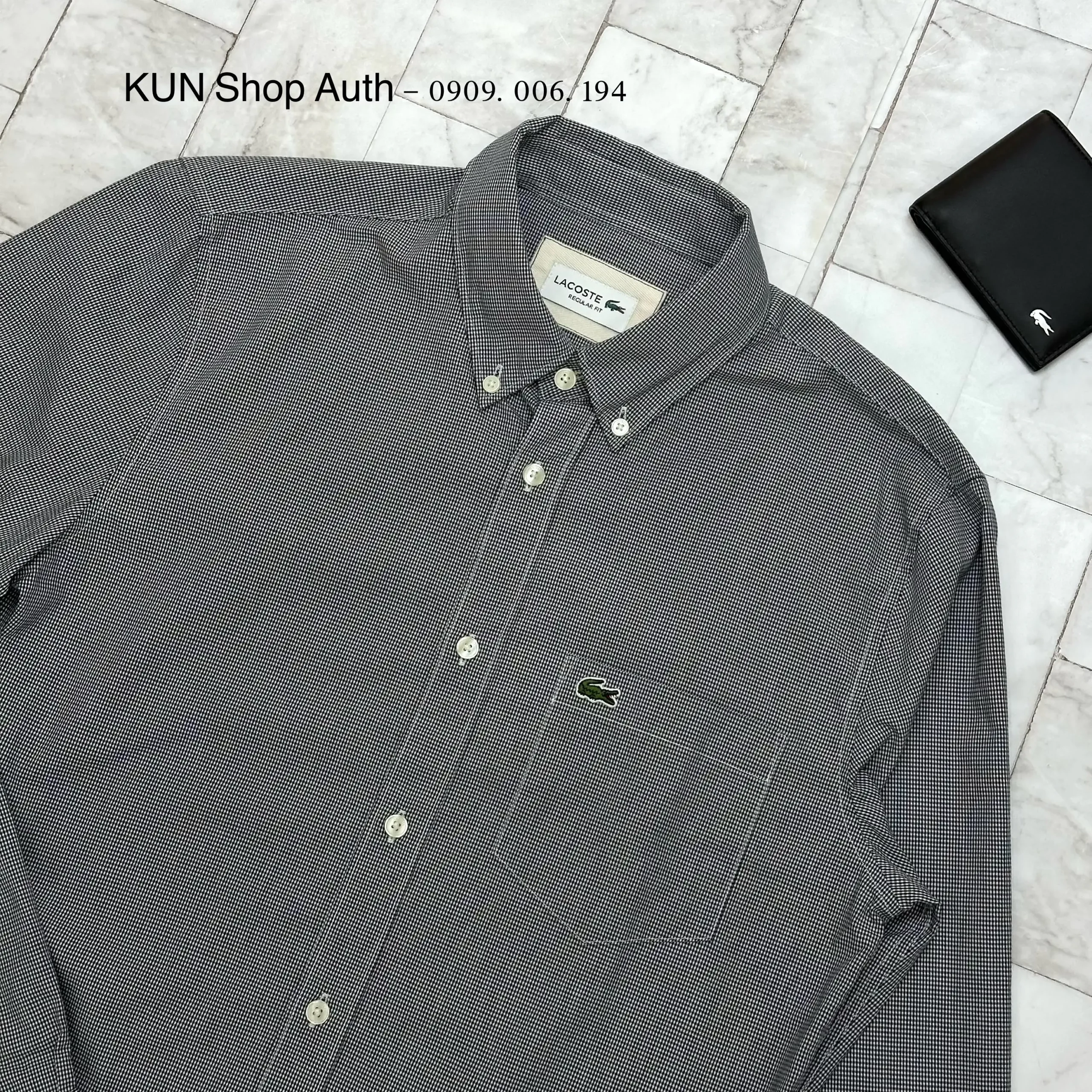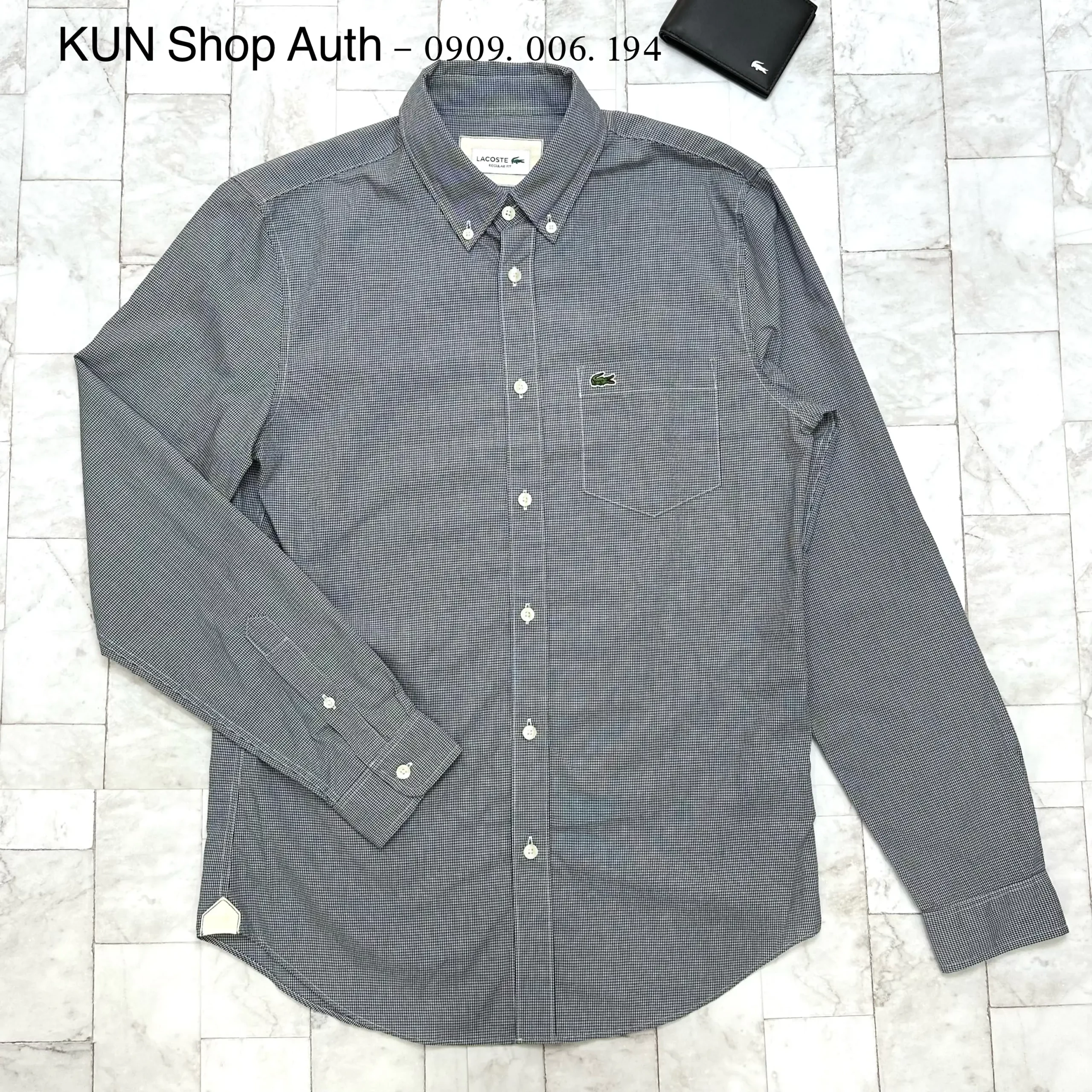 Áo sơmi Lacoste tay dài, form REGULAR FIT, có túi áo, sọc caro nhuyễn, logo cá sấu xanh thêu, chất liệu 100% cotton