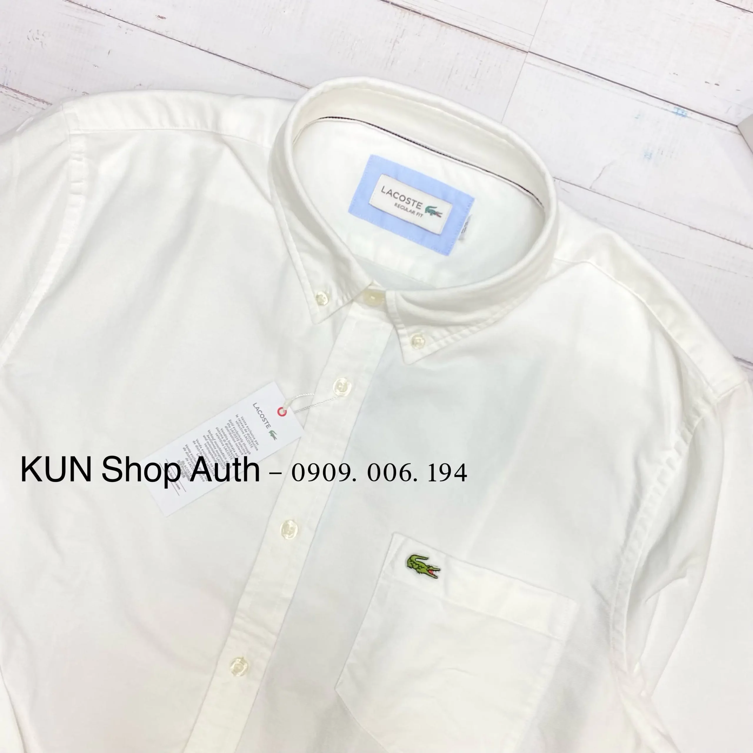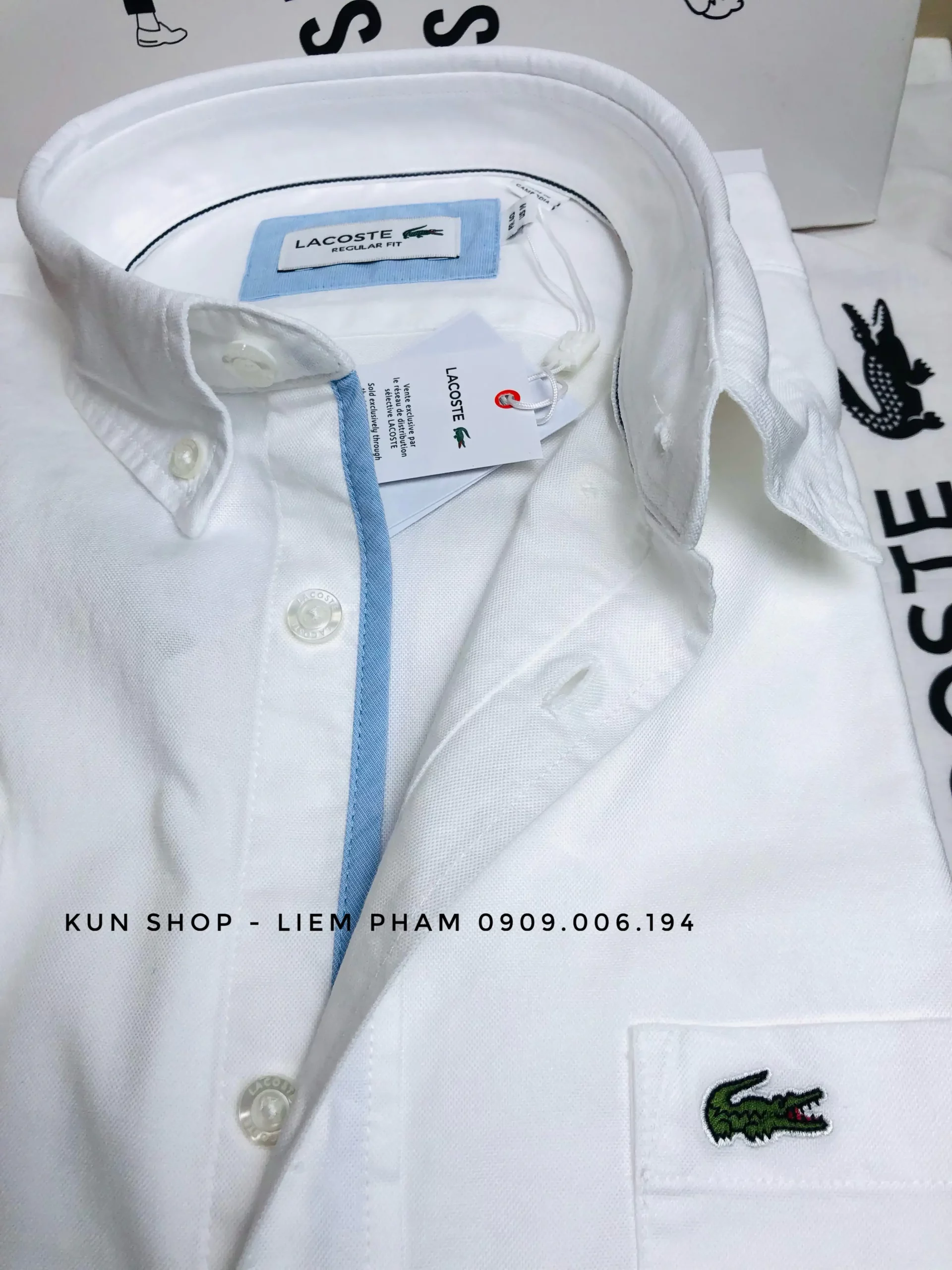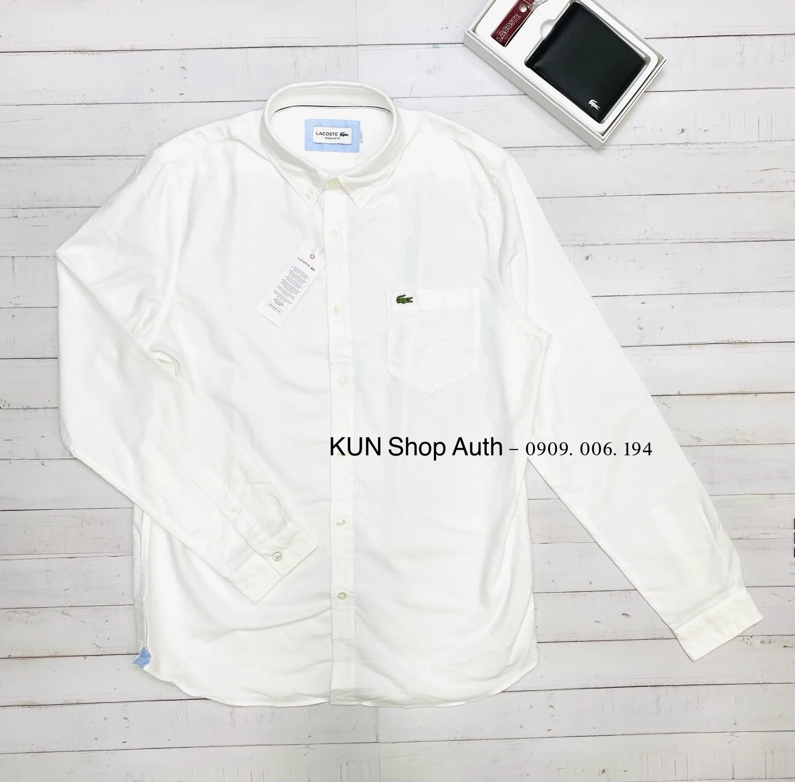 Áo sơmi tay dài Lacoste, form REGULAR FIT, màu trơn, có túi áo, logo cá sấu xanh, chất vải 100% Oxford cotton.