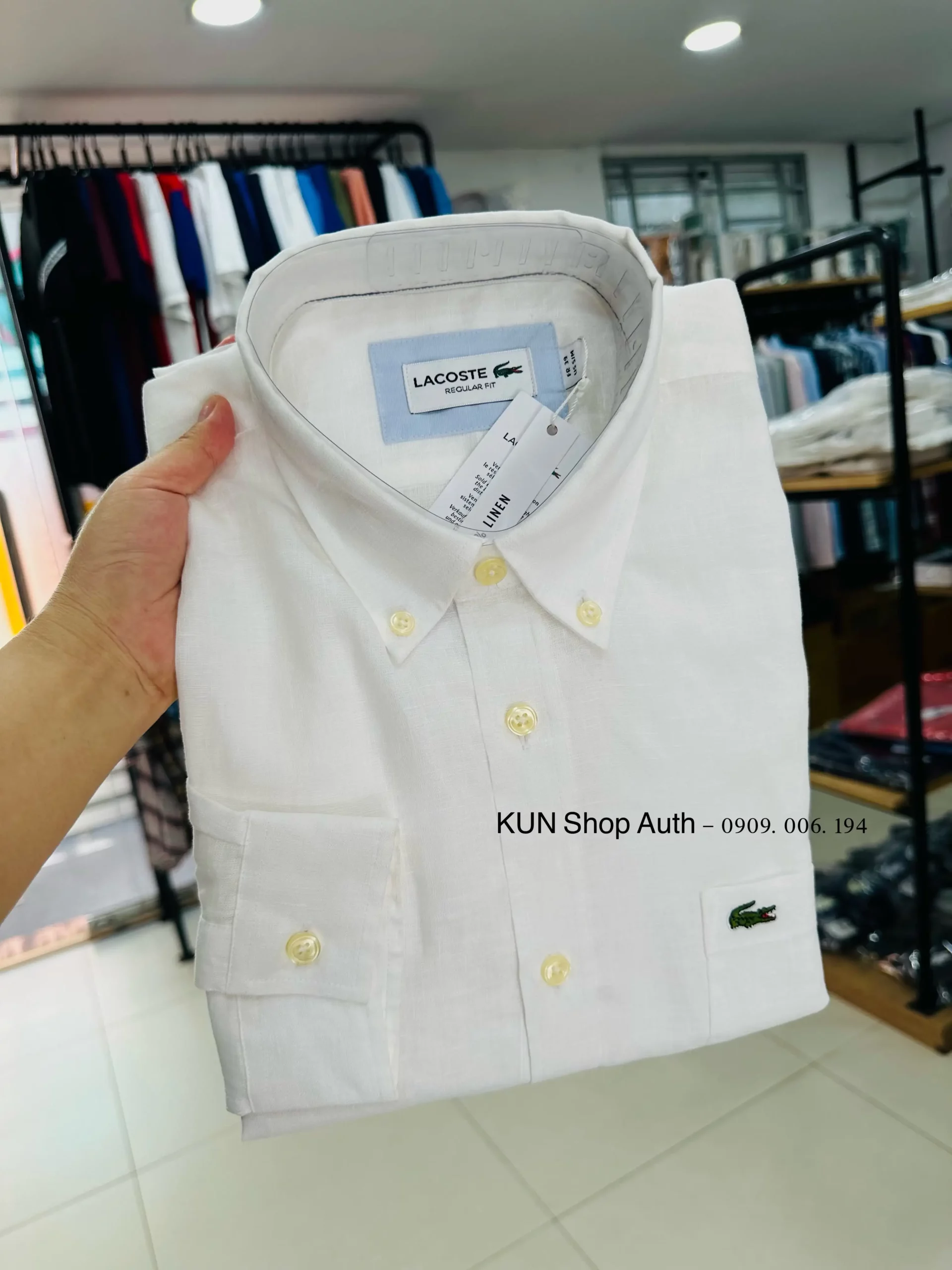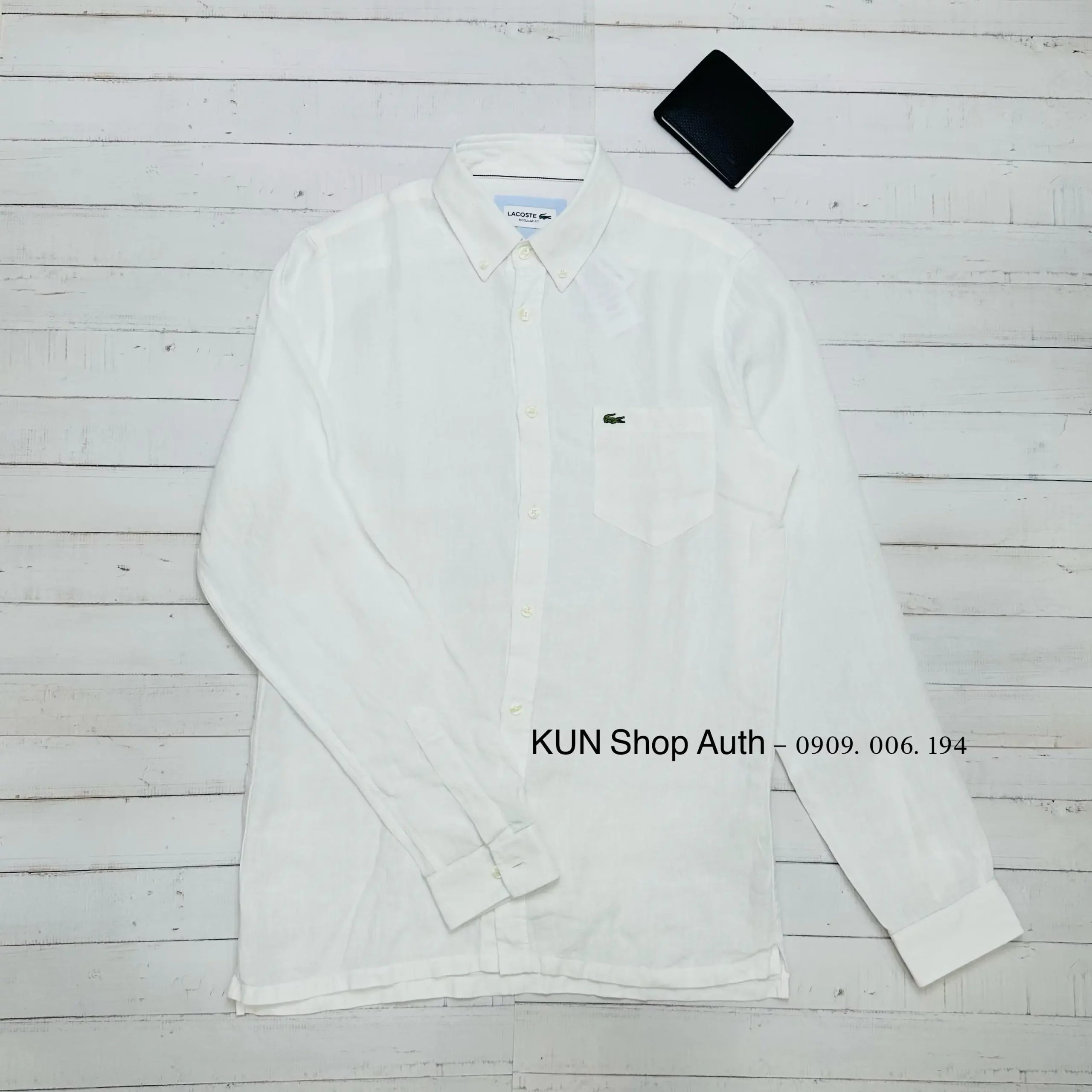 Áo sơmi tay dài Lacoste, form REGULAR FIT, màu trơn, có túi áo, logo cá sấu xanh, chất vải 100% linen.