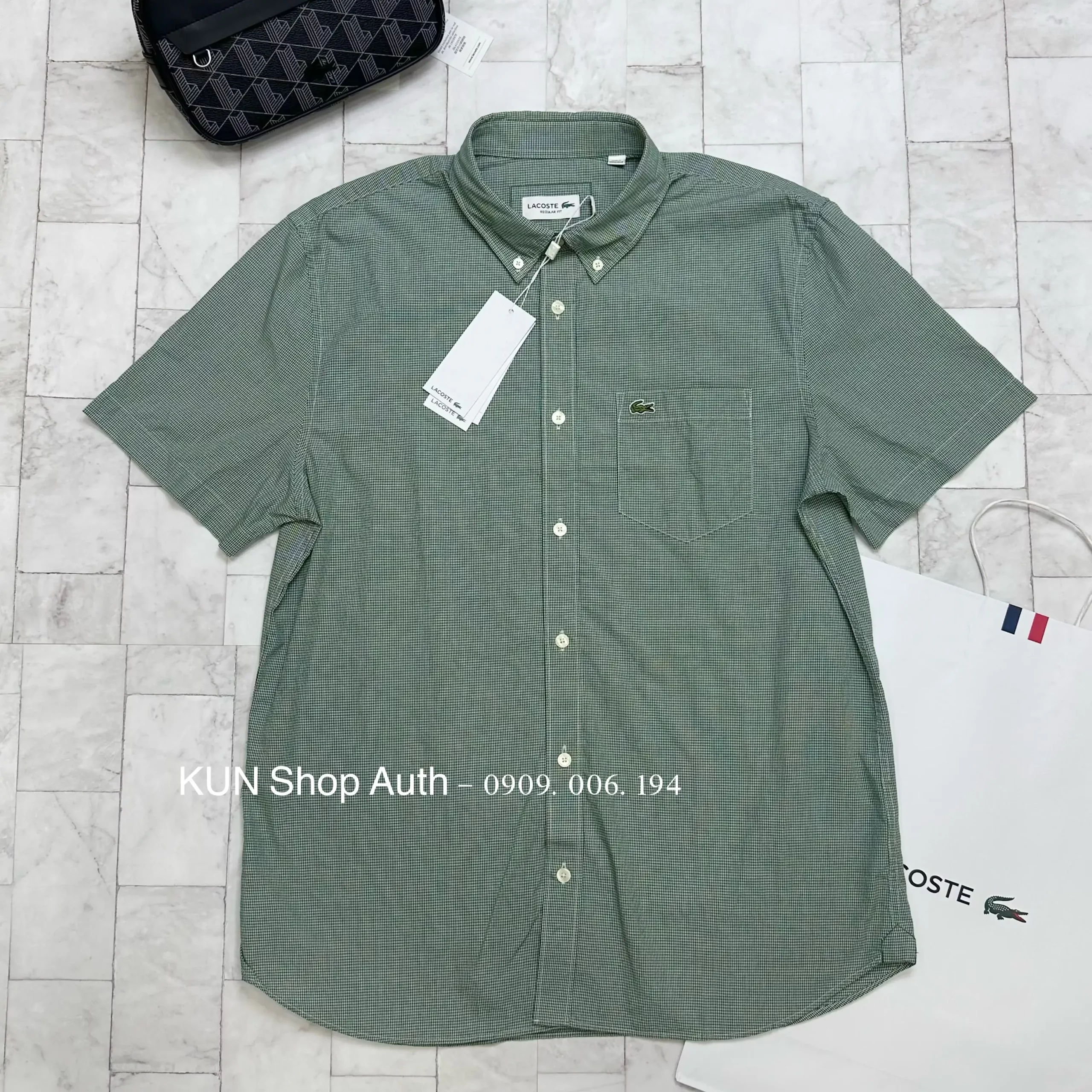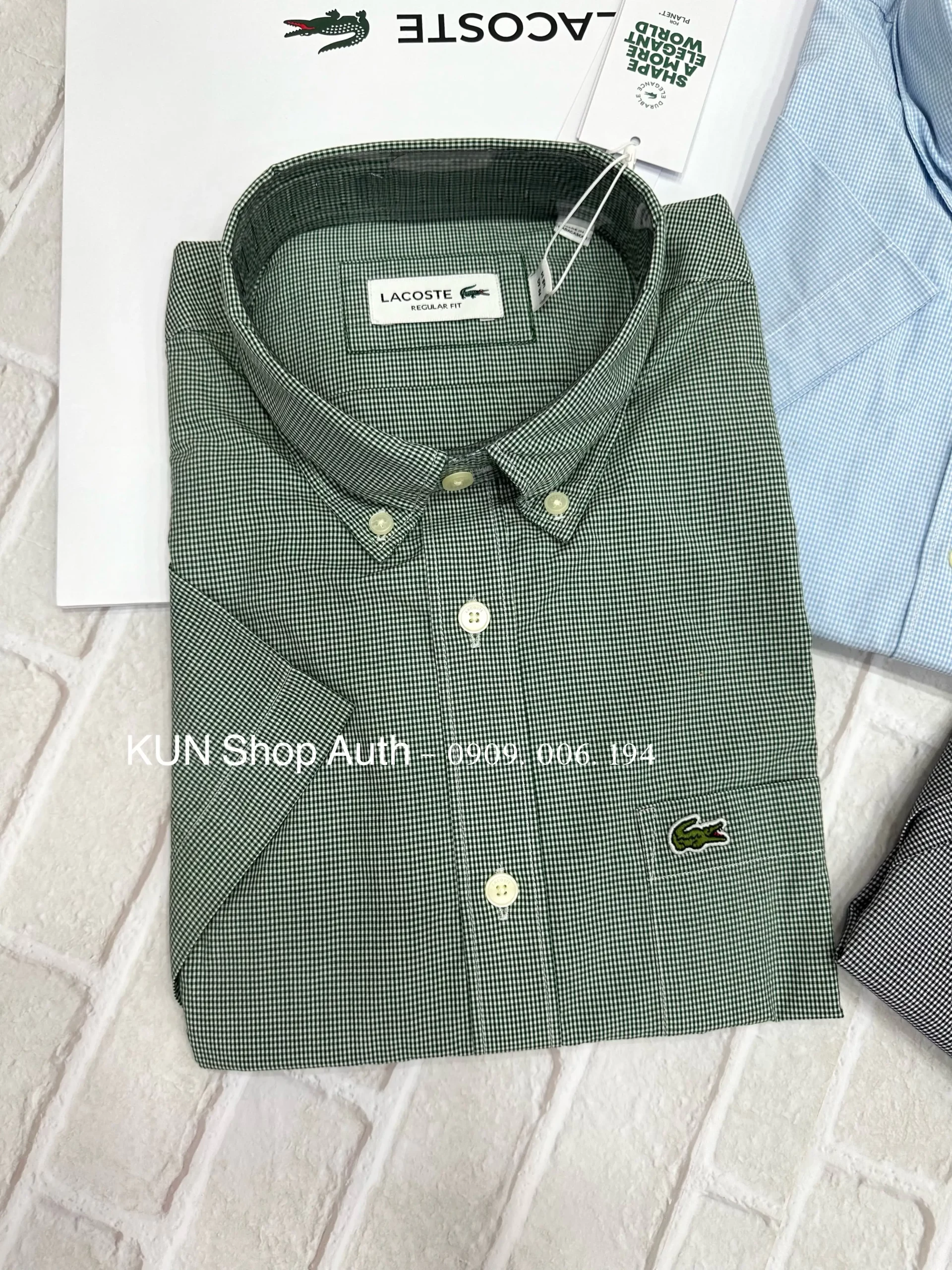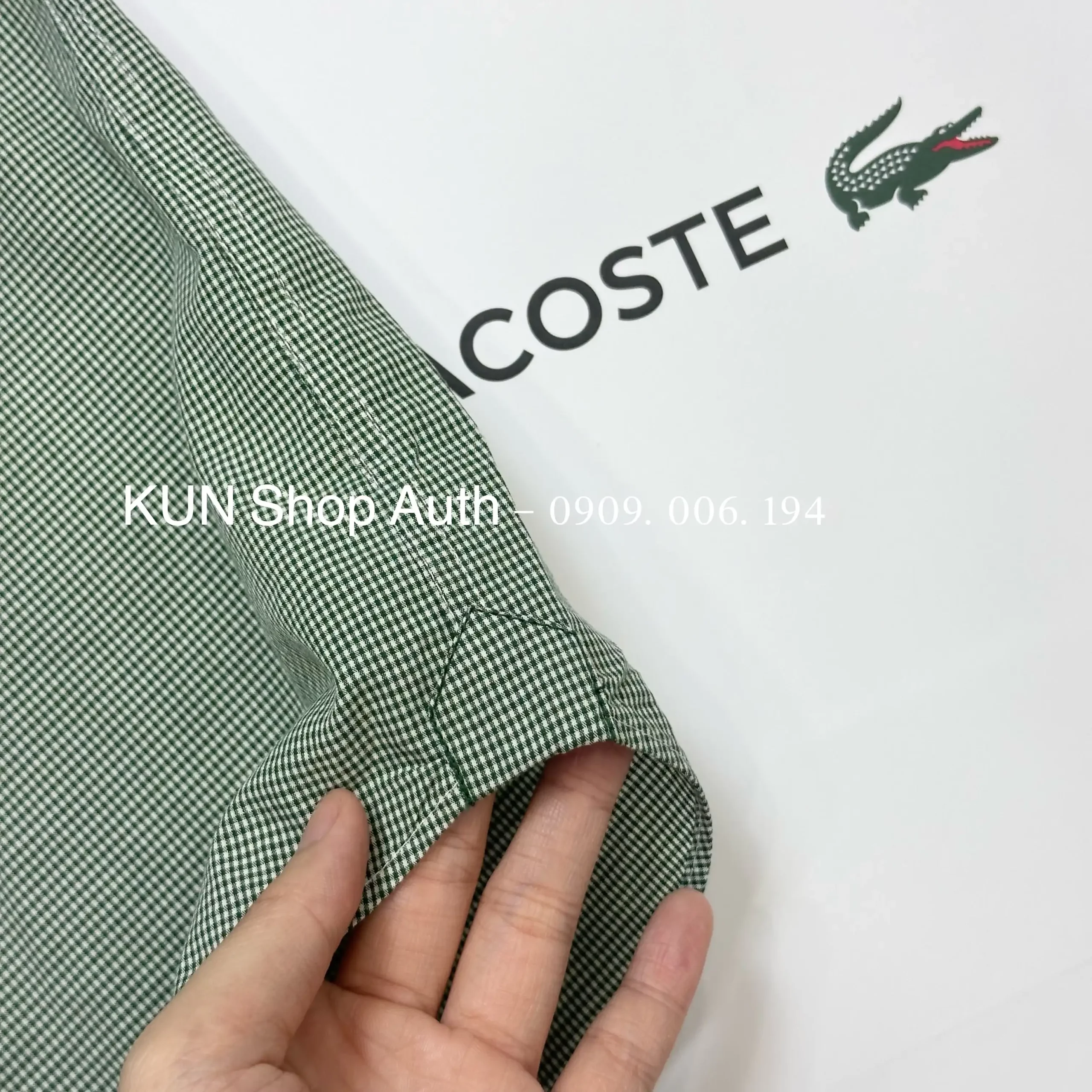 Áo sơmi Lacoste tay dài, form REGULAR FIT, có túi áo, sọc caro nhuyễn, logo cá sấu xanh thêu, chất liệu 100% cotton