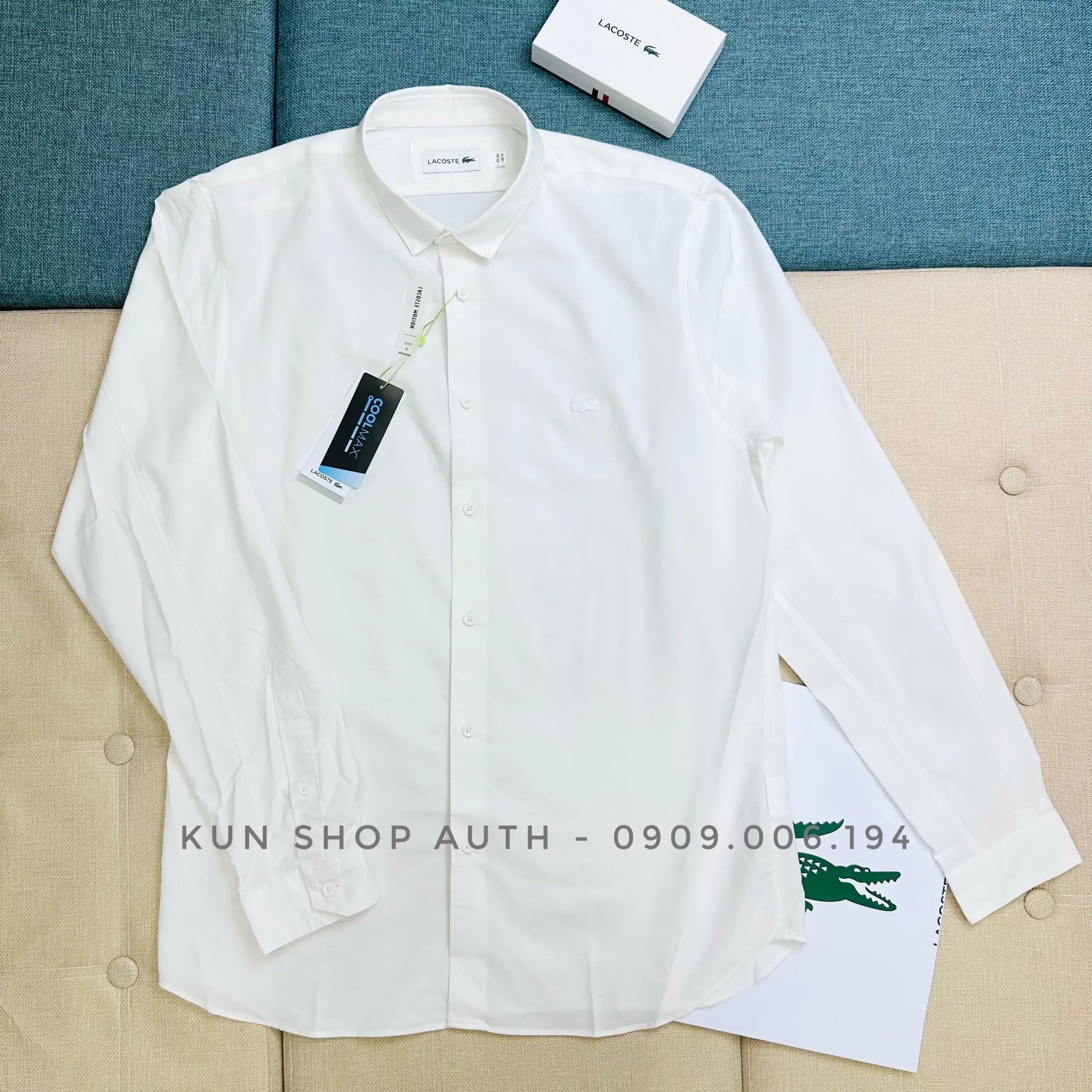 Áo sơmi tay dài Lacoste, form REGULAR FIT, thiết kế công năng học Ergonomically, logo cá sấu nhựa, chất vải COOLMAX 72% cotton pha 20% polyester và 8% elastane chống nhăn.