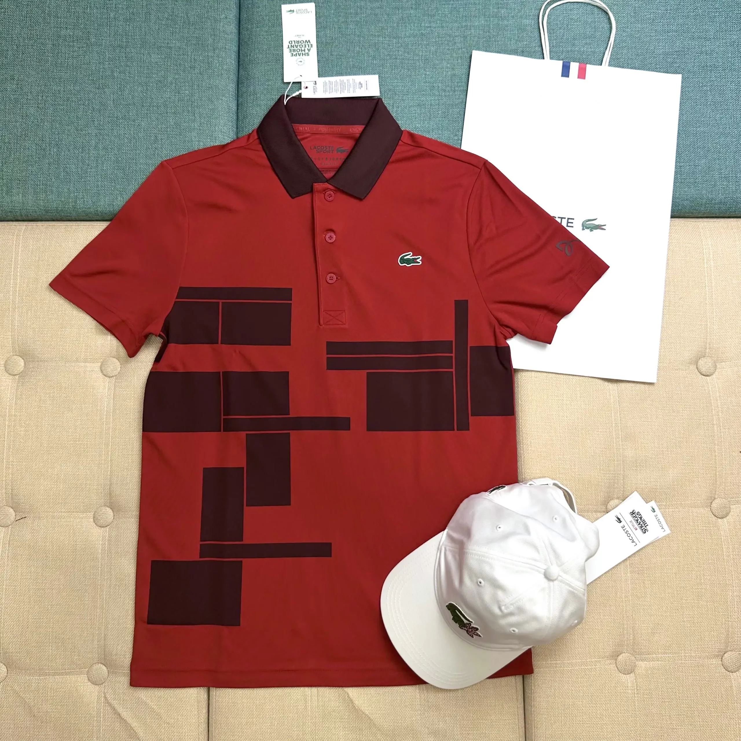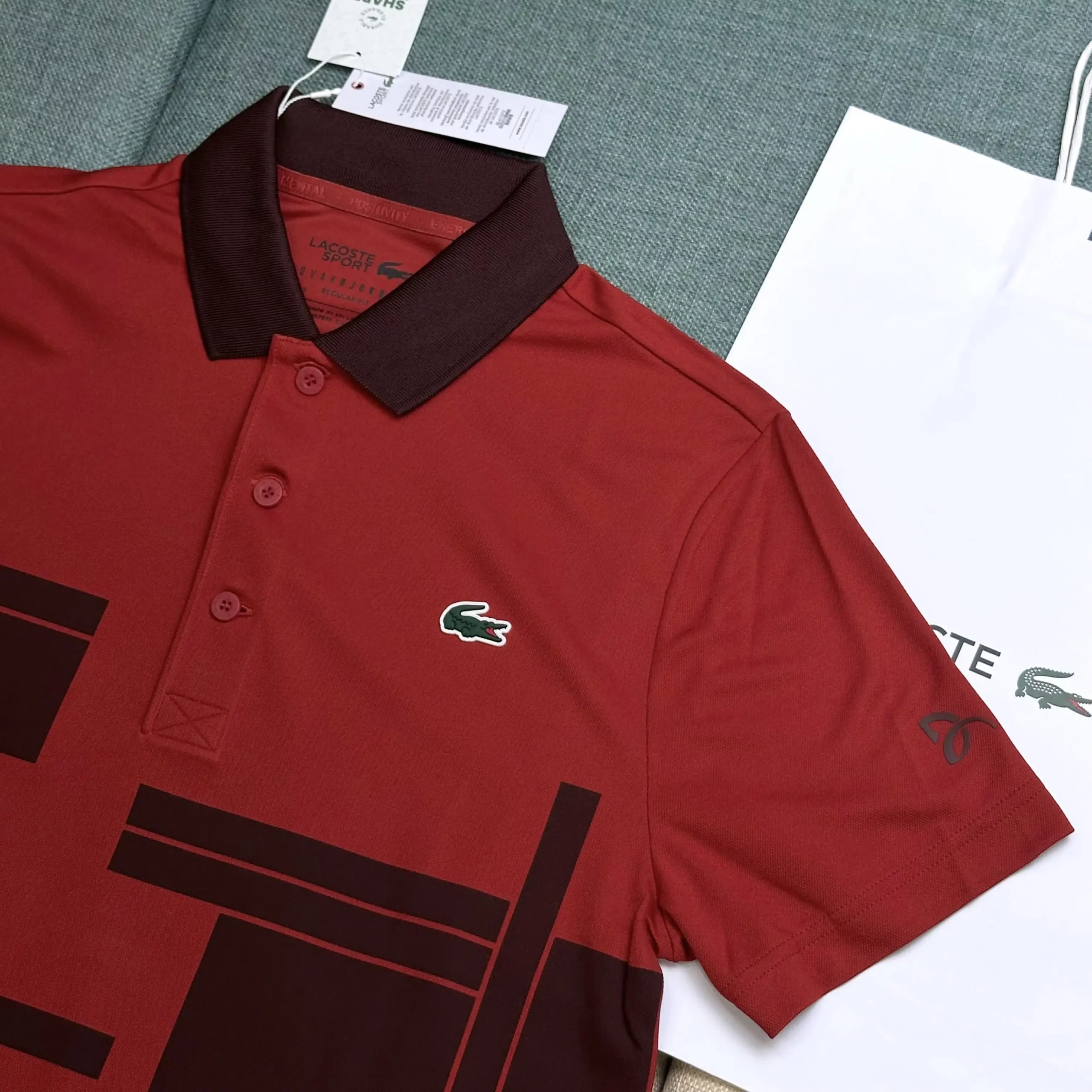 Áo Polo Lacoste thể thao dòng Novak Djokovic, form REGULAR FIT, hoạ tiết hình sân tennis trừu tượng, chất liệu 100% polyester.