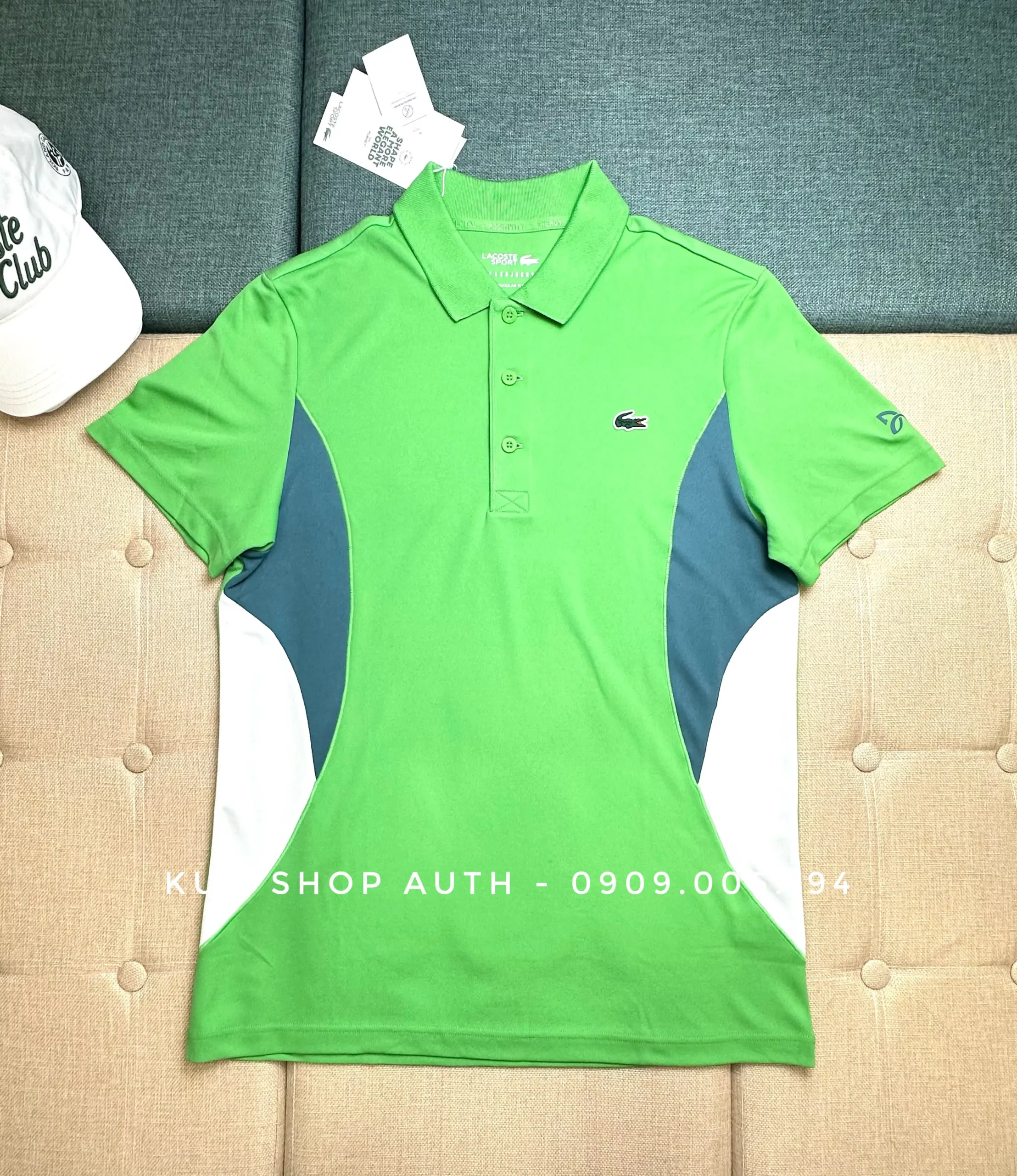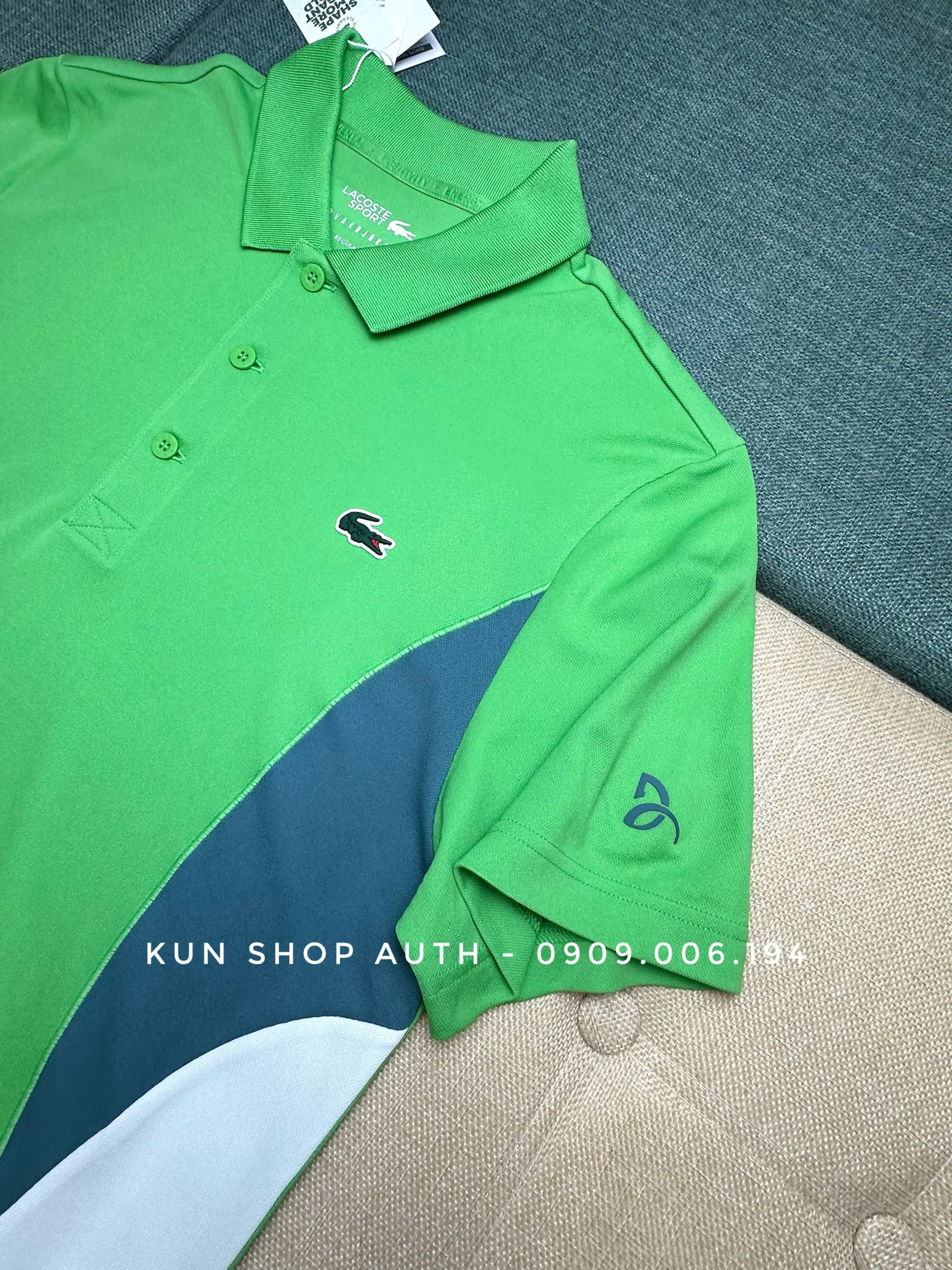 Áo Polo Lacoste dòng thể thao Novak Djokovic, form REGULAR FIT, thiết kế phối màu colorblock 2 bên áo, chất liệu 100% polyester