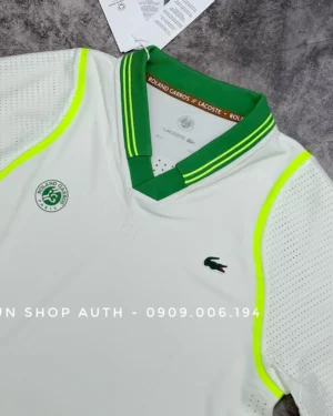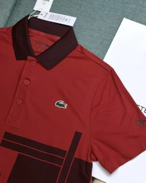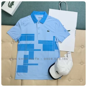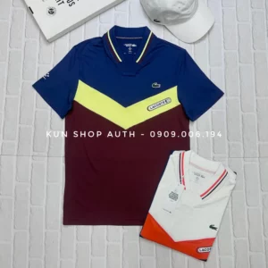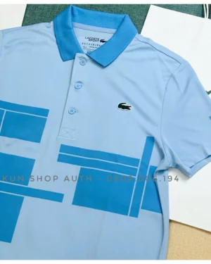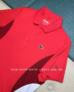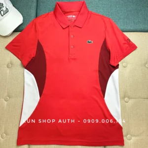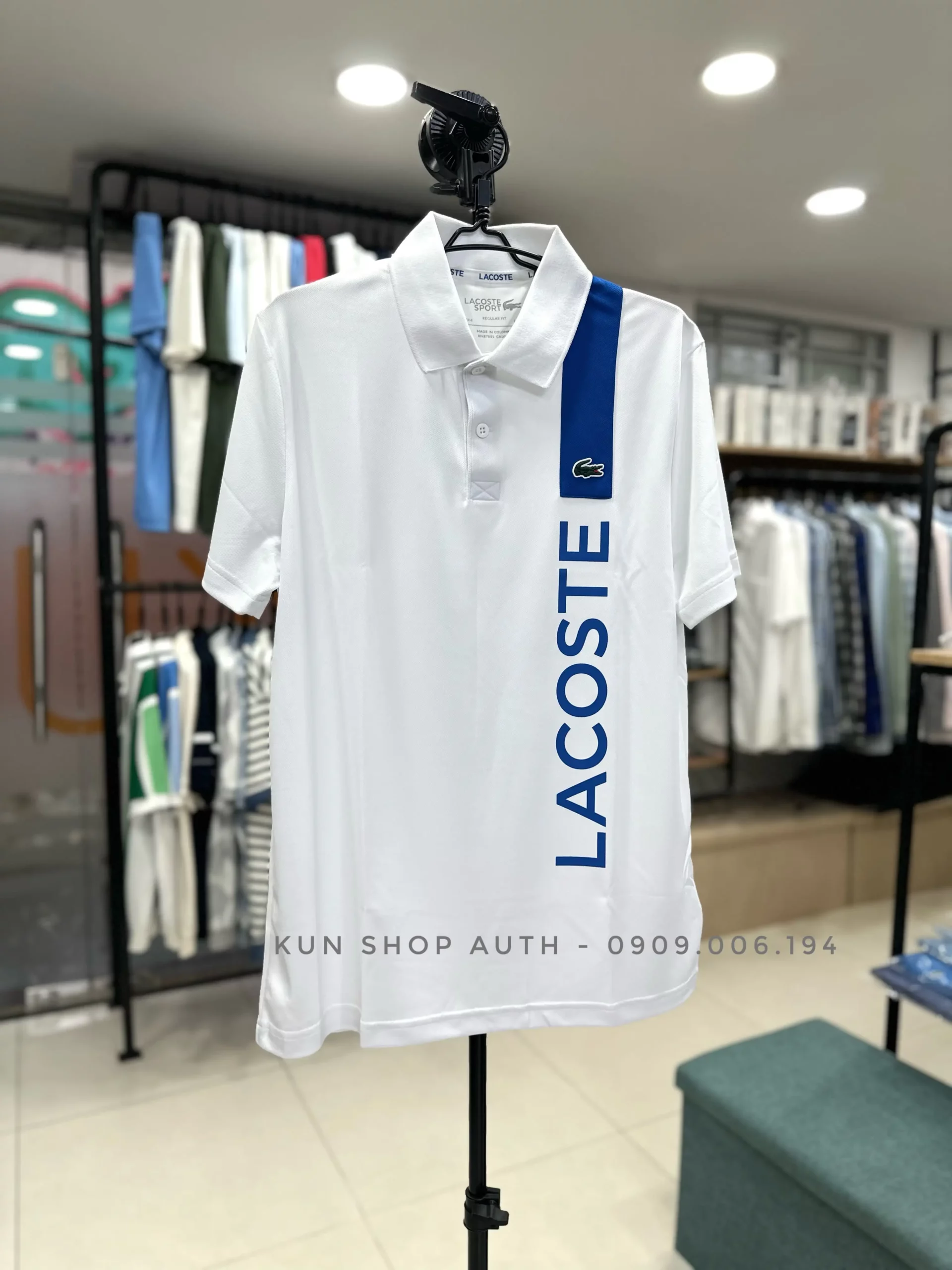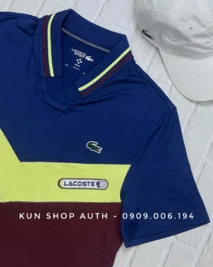 Áo Polo Lacoste dòng thể thao, form REGULAR FIT, thiết kế dải màu chạy dọc đứng, logo cá sấu Lacoste truyền thống, chất liệu 100% polyester.