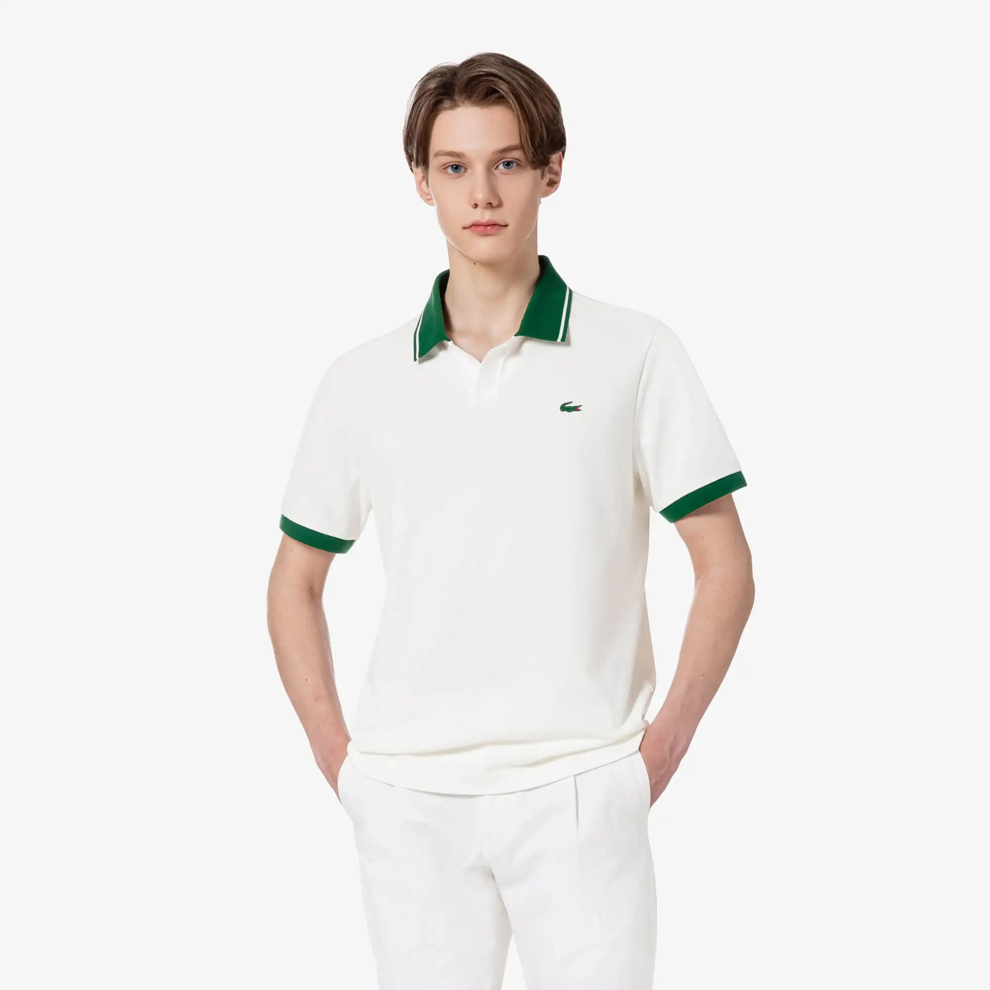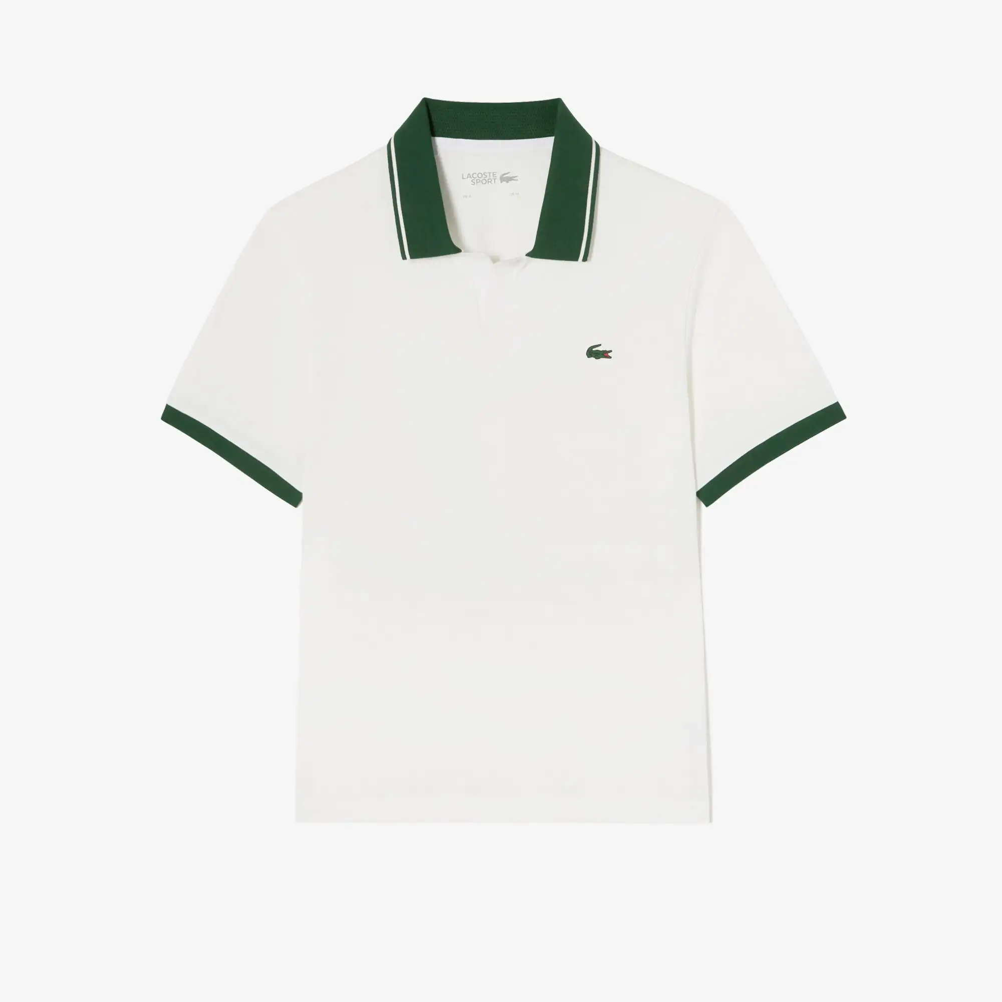 Áo Polo Lacoste dòng thể thao, form REGULAR FIT, thiết kế cổ chữ V Hàn Quốc, chất liệu 49% cotton pha 46 Polyester và 5% polyurethane. Made in Korea