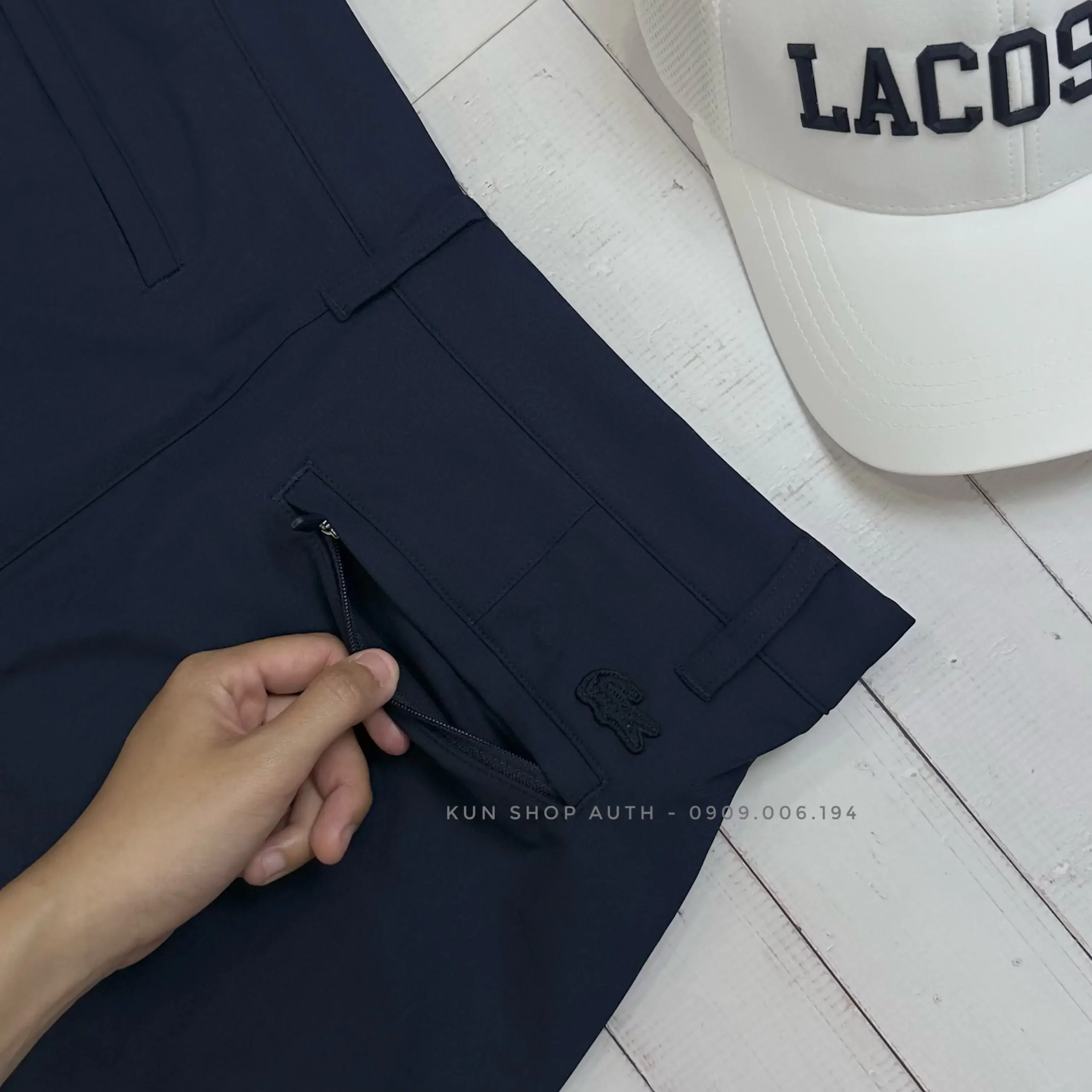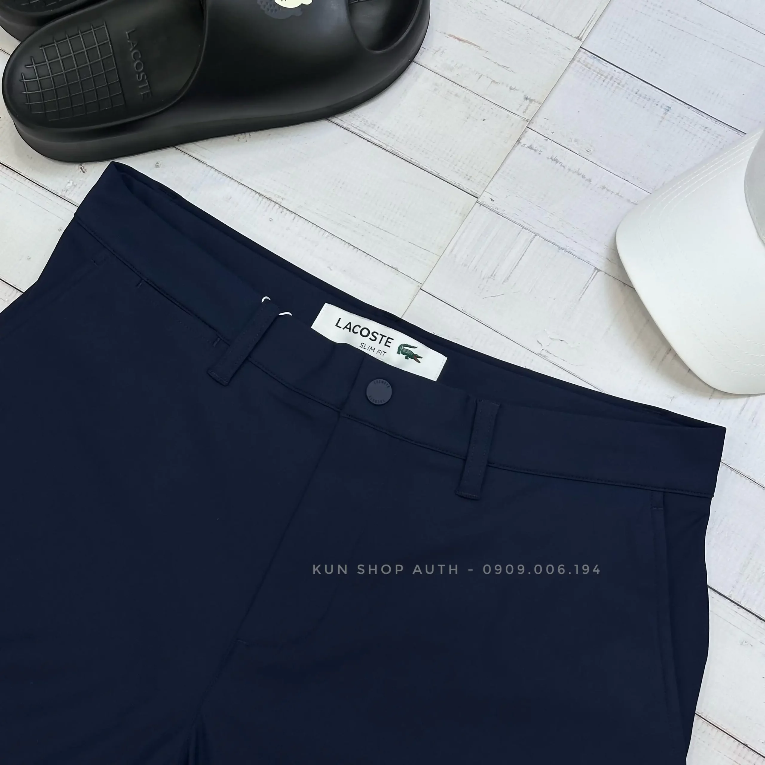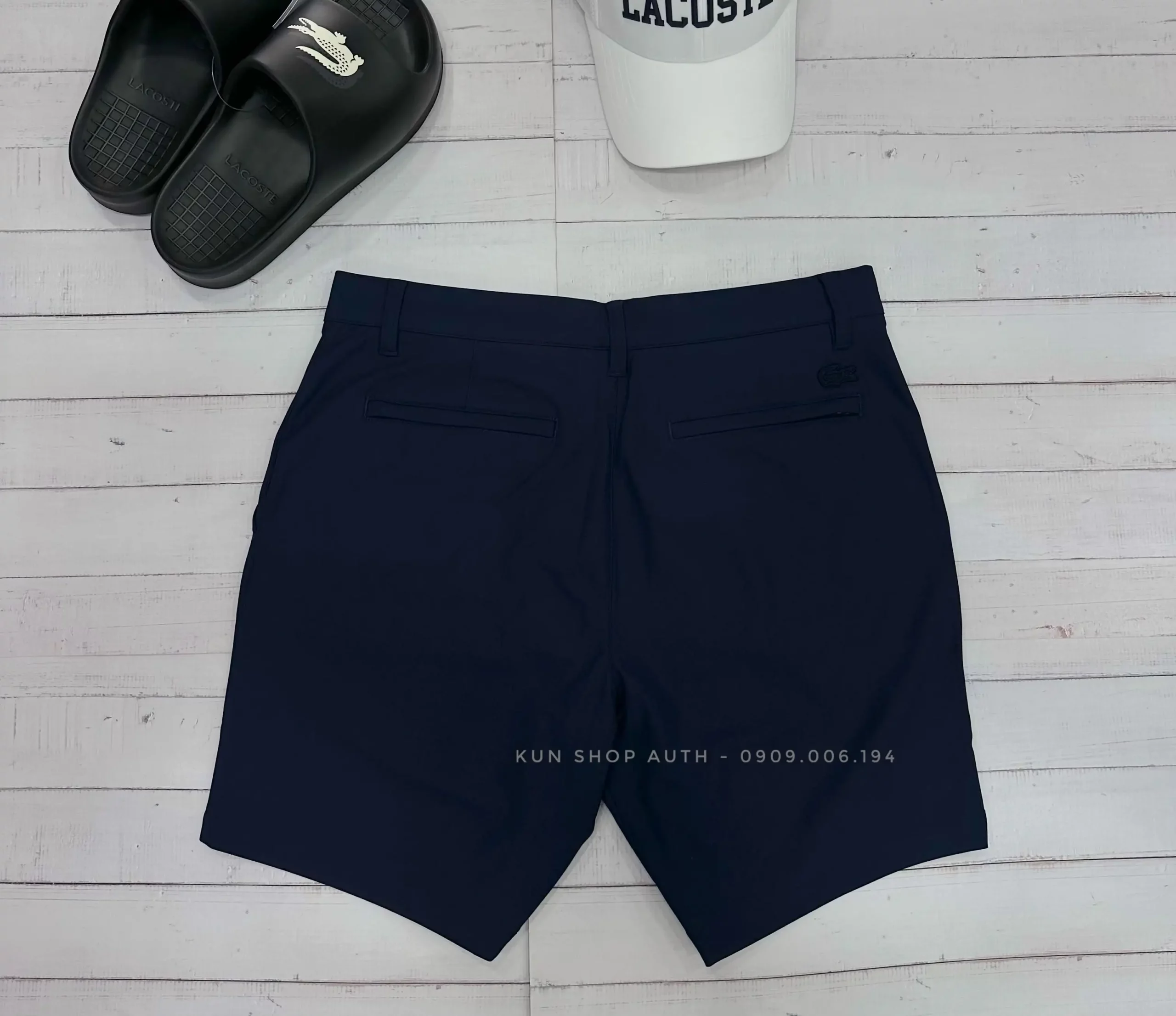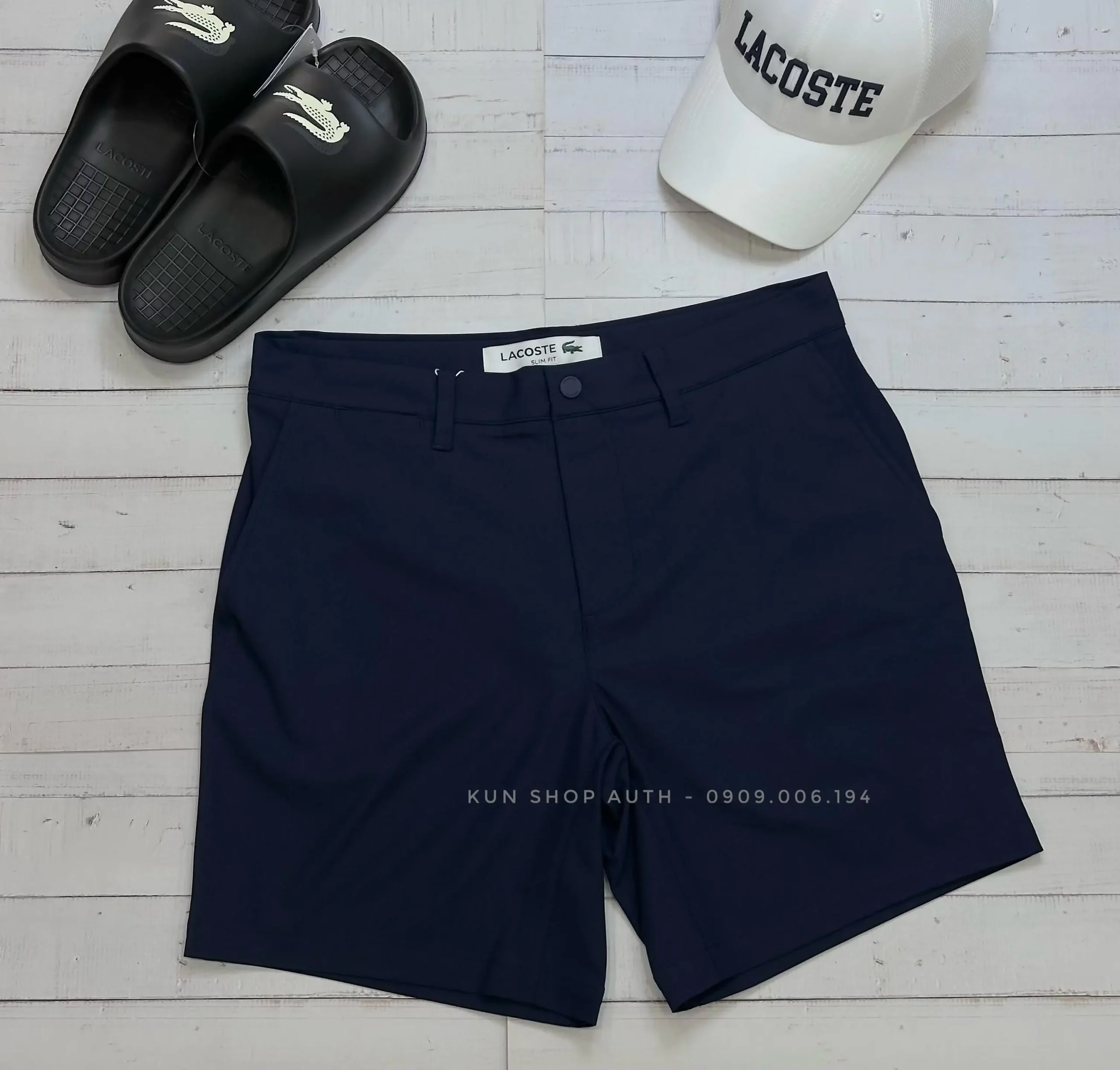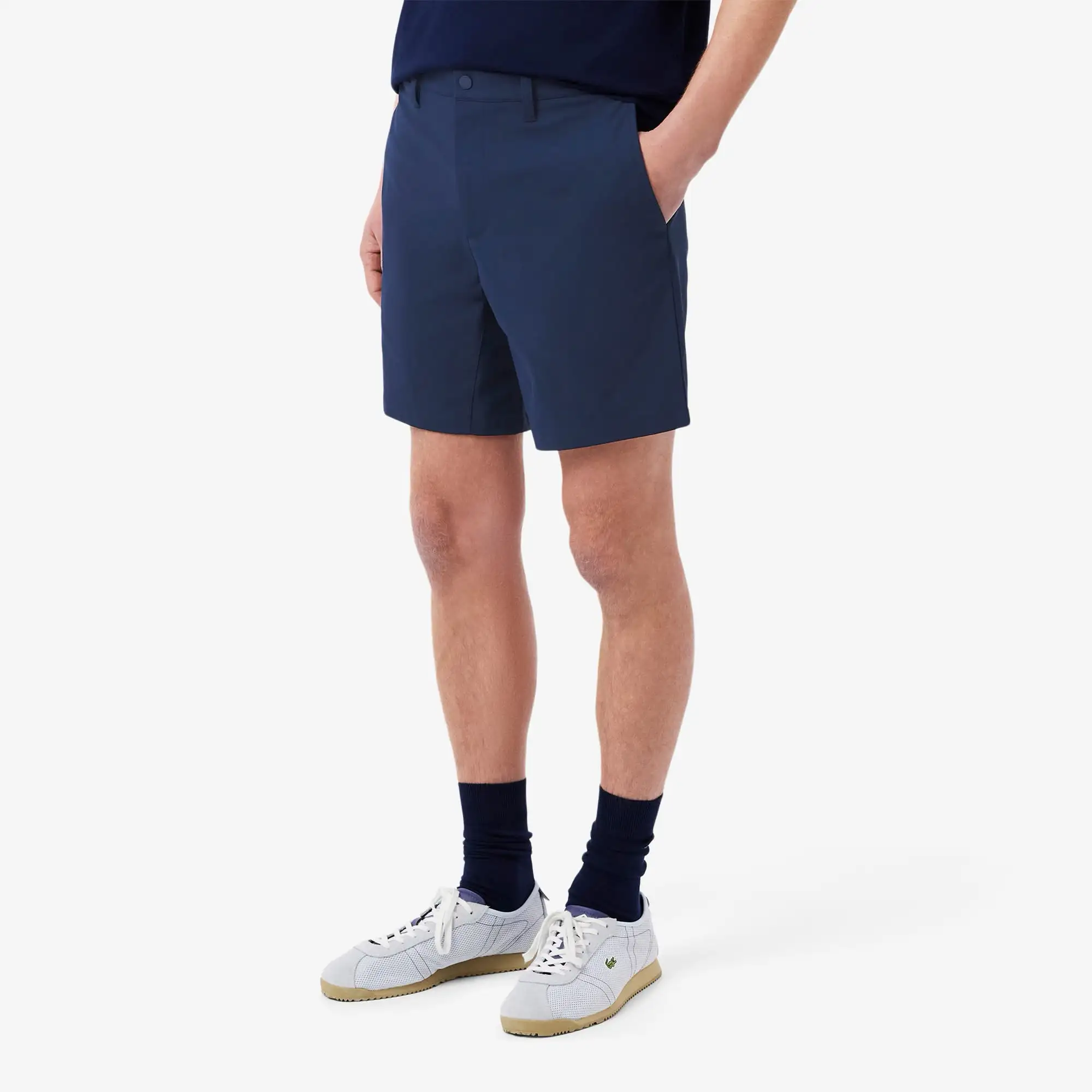Quần commuter shorts Lacoste, form SLIM FIT, dáng 7 inches, màu trơn, túi xéo, túi sau có khoá kéo, chất vải 100% polyester