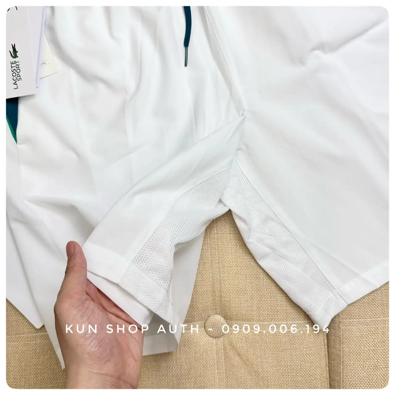 Quần shorts thể thao Lacoste, thuộc dòng Novak Djokovic, form REGULAR FIT, dài 9 inches, chất vải 100% polyester.