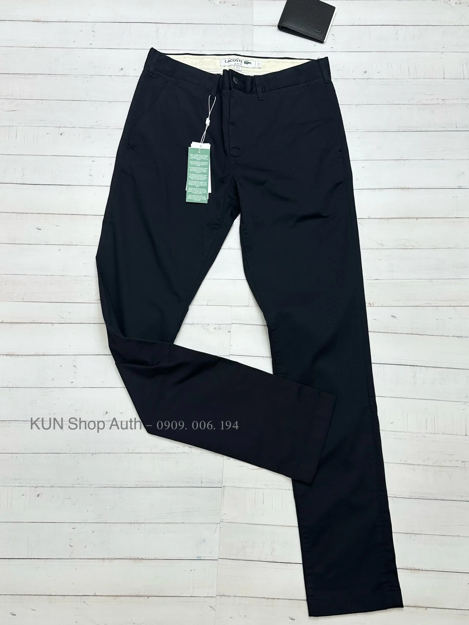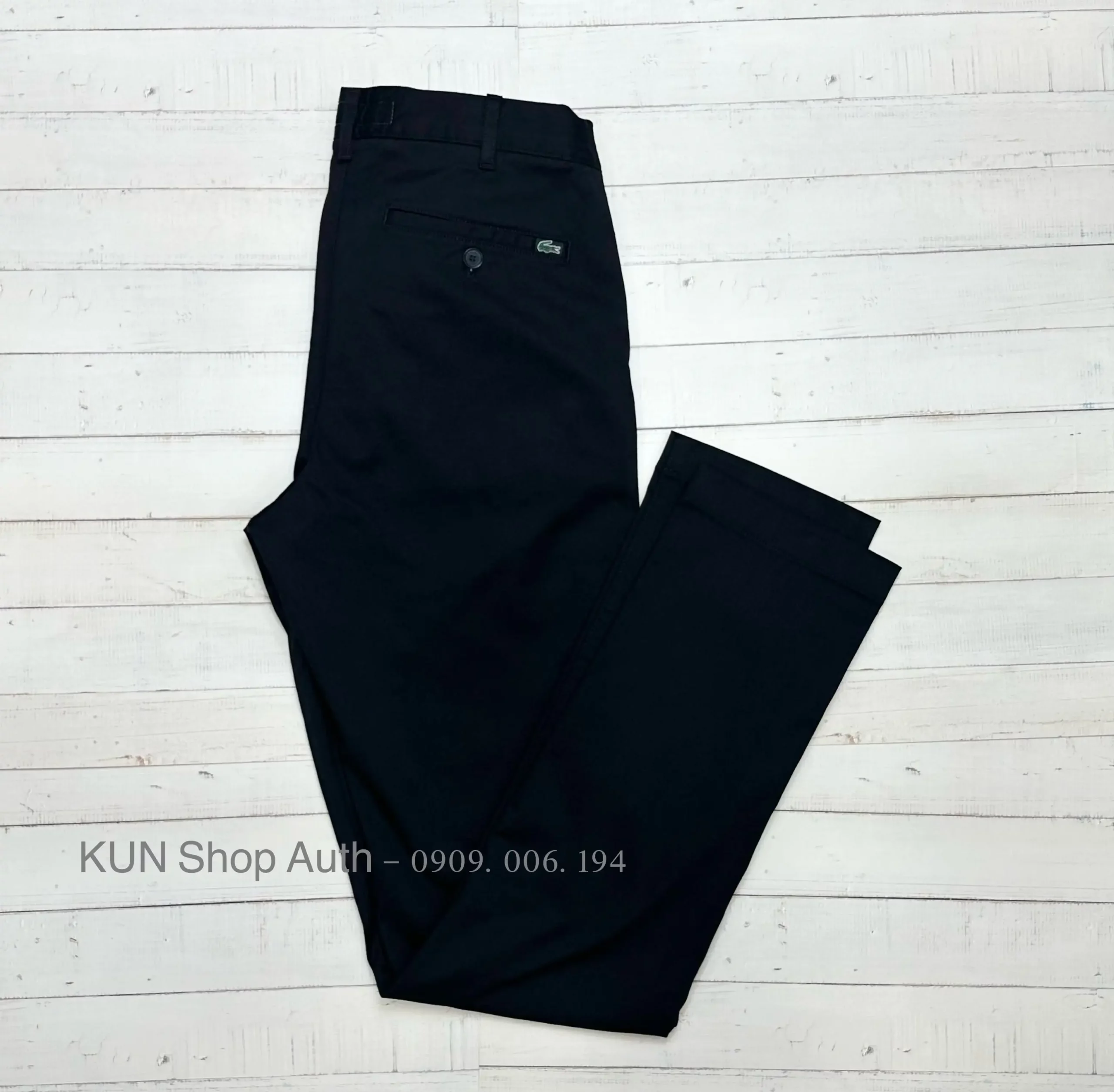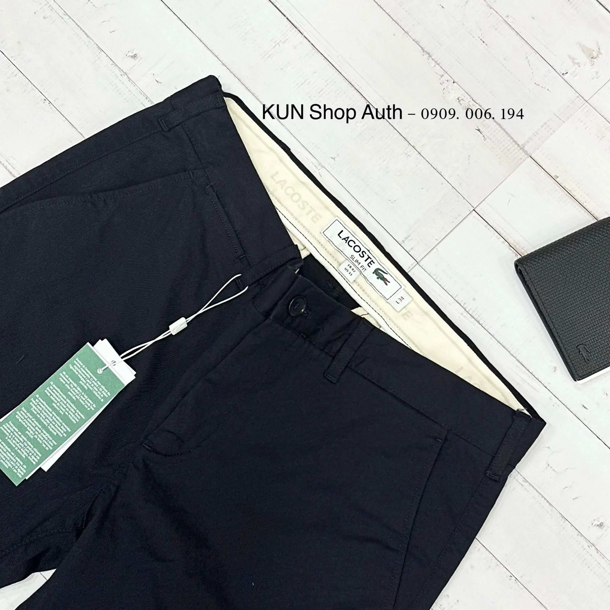 Quần kaki dài Lacoste, form SLIM FIT, thiết kế túi xéo, logo cá sấu ở túi sau, chất vải 97% cotton pha 3% Elastane