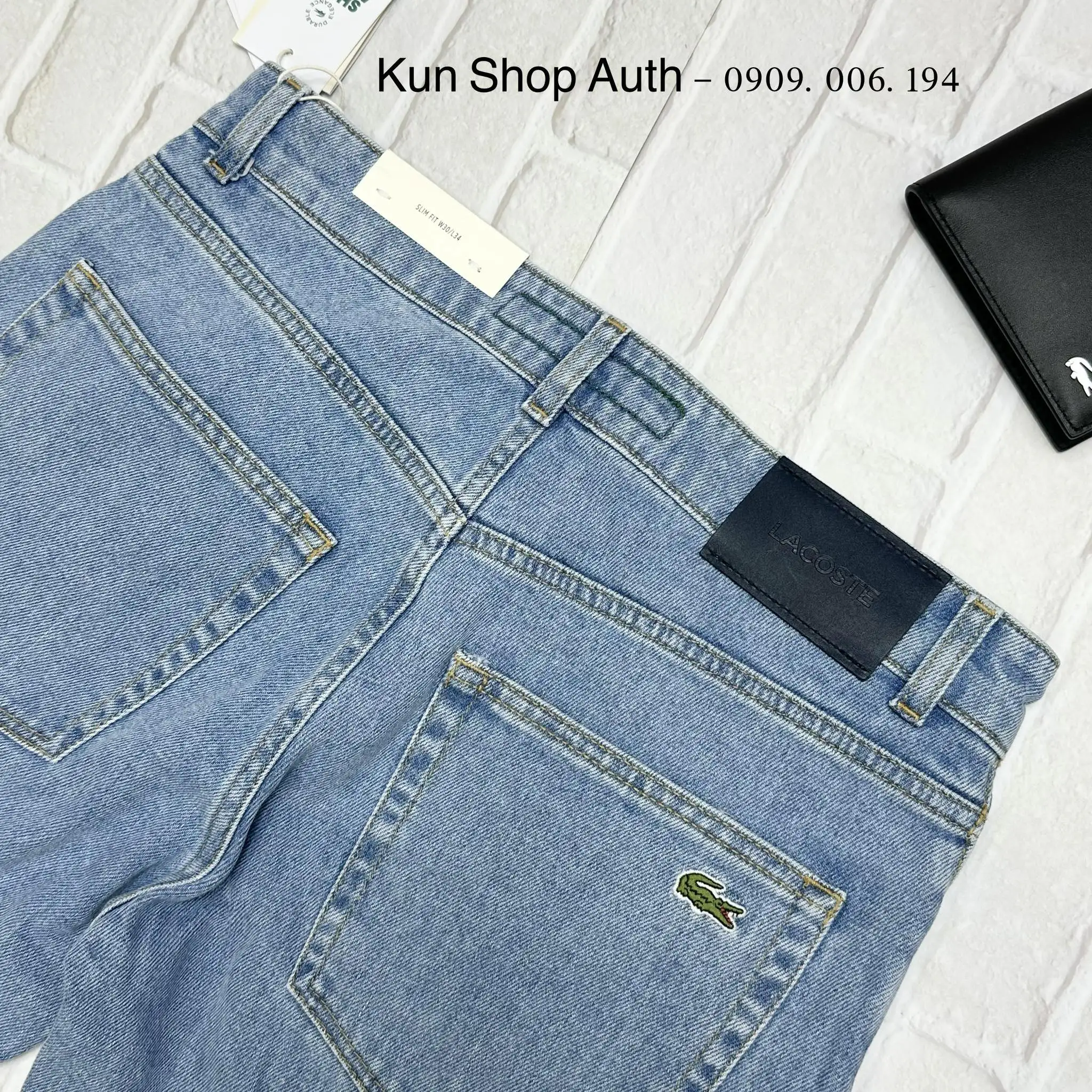 Quần jeans dài Lacoste, form SLIM FIT, logo cá sấu thêu ở túi quần sau, chất vải 98% cotton pha 2% Elastane