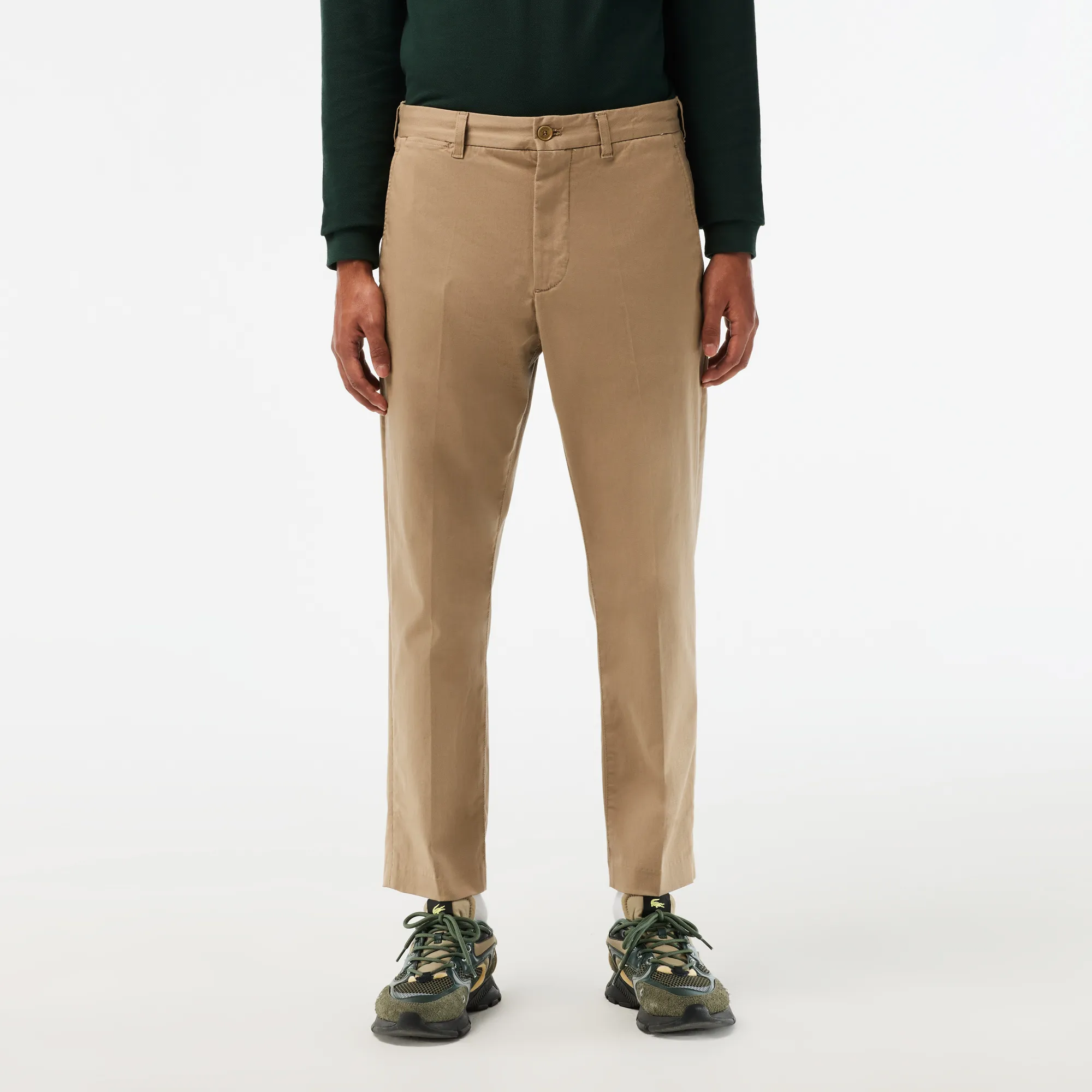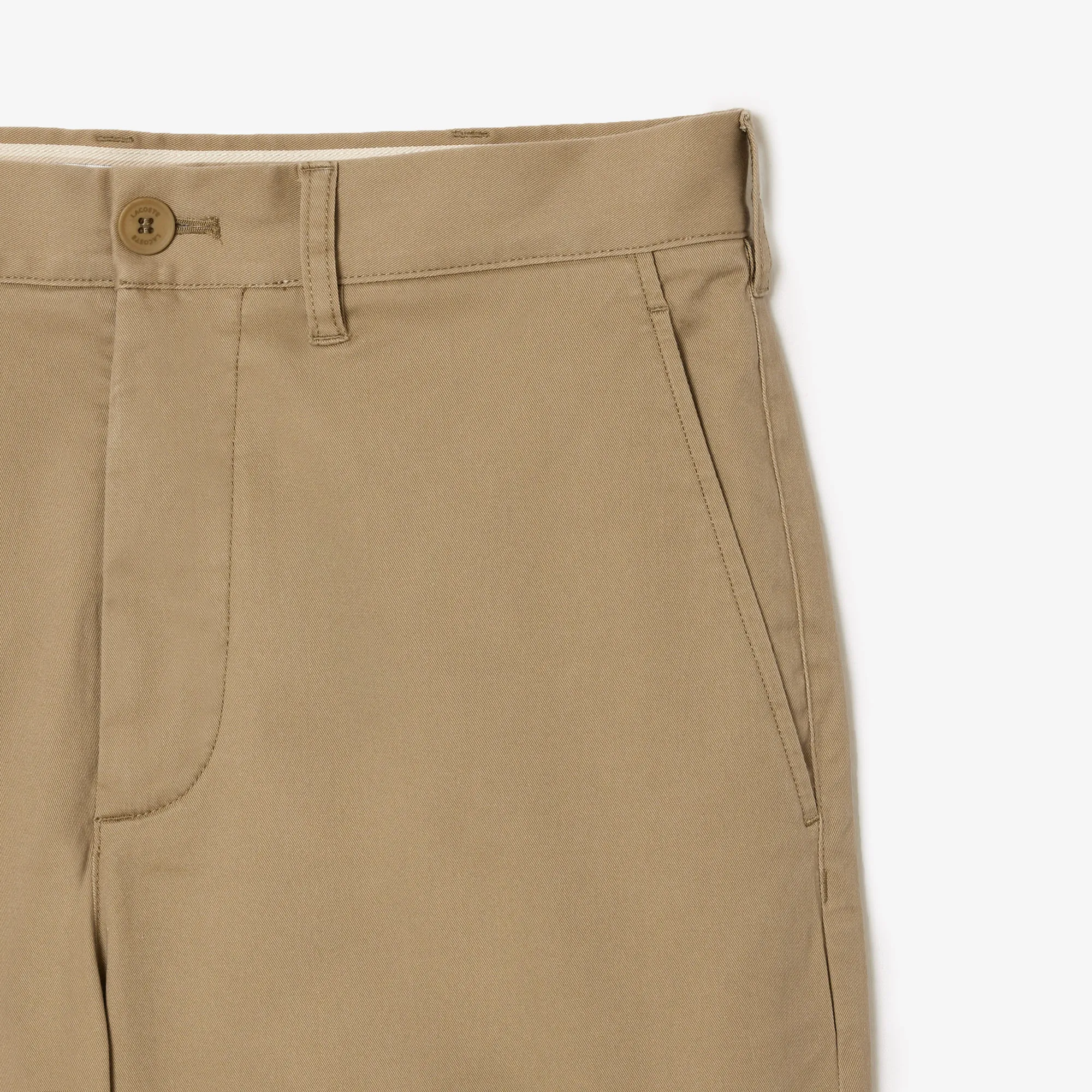 Quần kaki dài Lacoste, form TAPERED FIT, thiết kế túi xéo, logo cá sấu ở túi quần sau, túi sau có nút, chất vải 97% cotton pha 3% Elastane