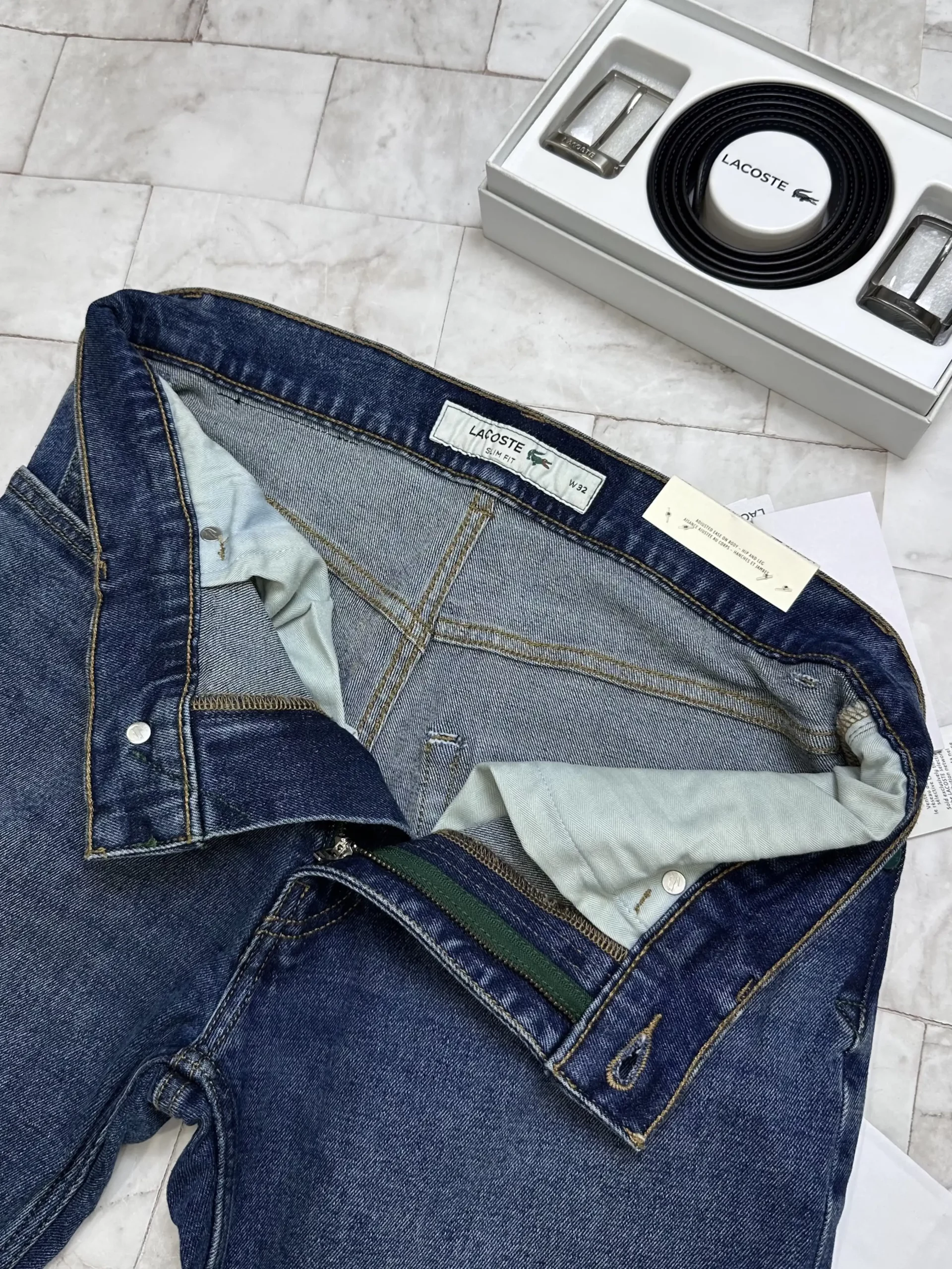 Quần jeans dài Lacoste, form SLIM FIT, logo cá sấu thêu ở túi quần sau, chất vải 98% cotton pha 2% Elastane
