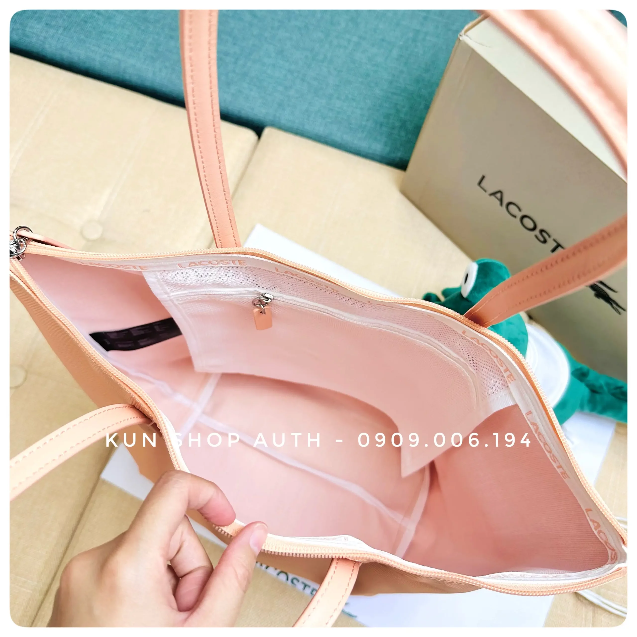 Túi Tote Lacoste form đứng, thiết kế basic màu trơn, logo cá sấu thêu. Chất liệu 100% PVC phủ canvas