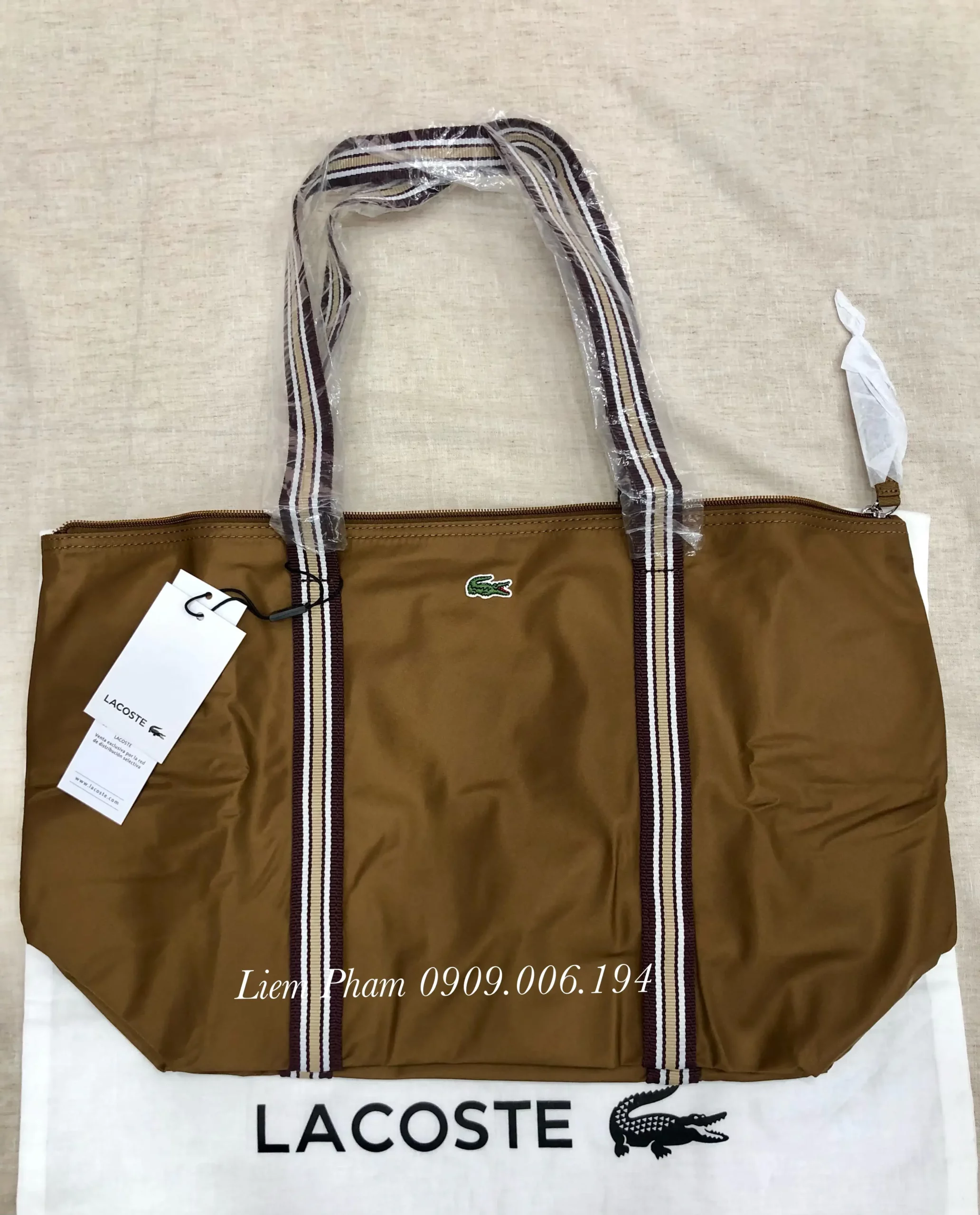 Túi Tote Lacoste form ngang, khoá kéo Jeanne Striped Handles Canvas, thiết kế basic màu trơn, logo cá sấu thêu. Chất liệu 100% Polyamide – Ultra light Nylon.