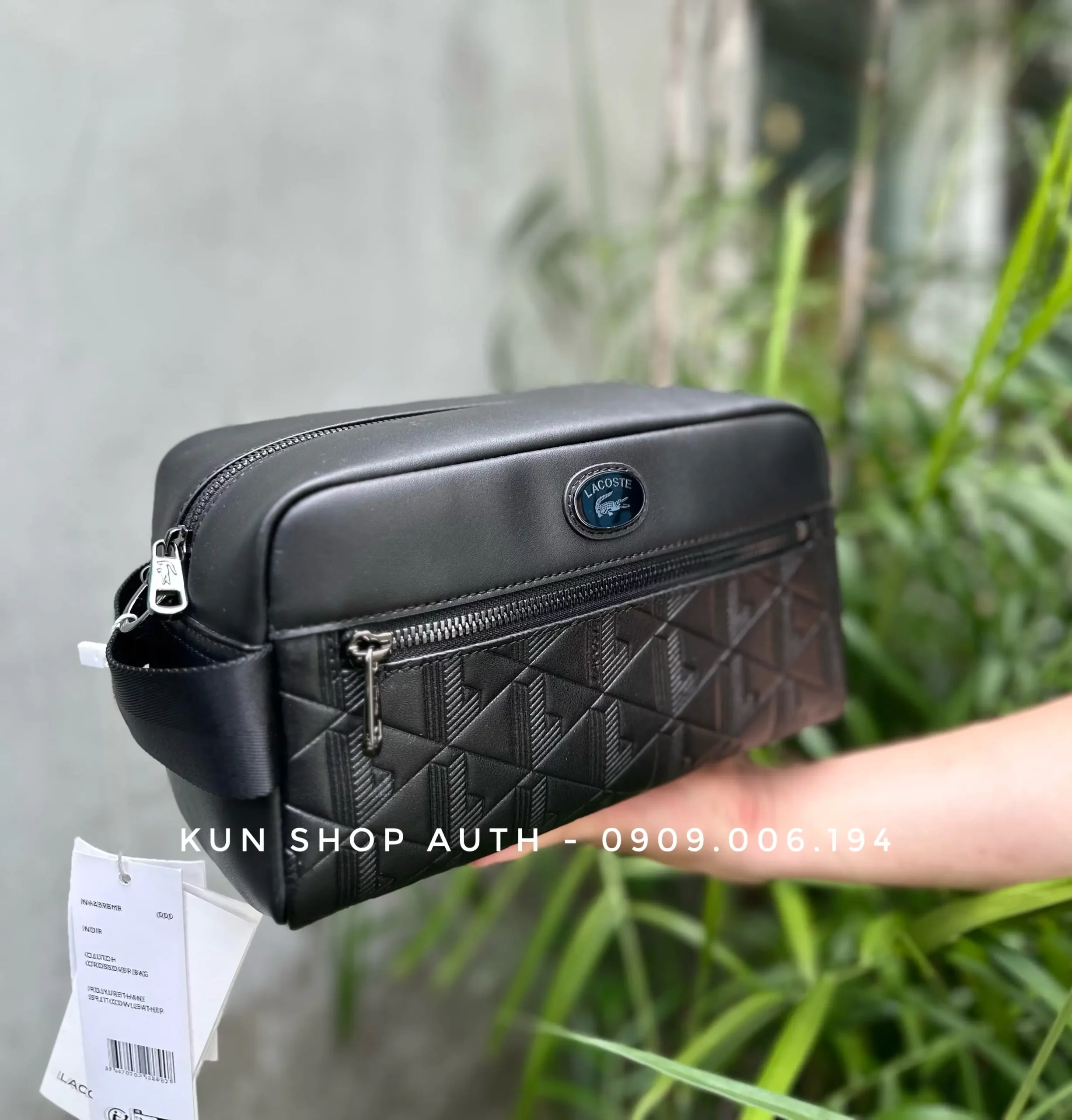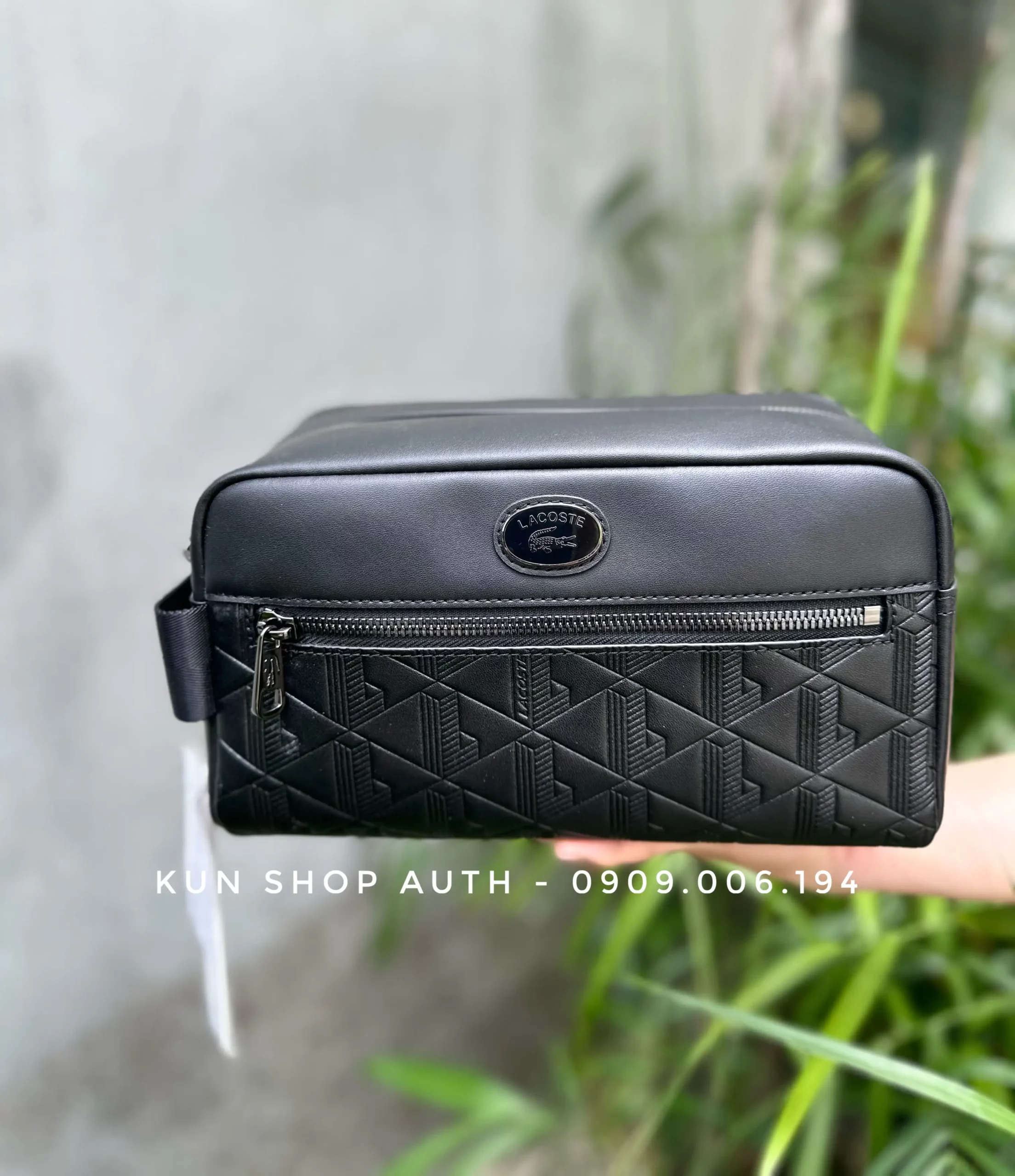 Túi đeo chéo Lacoste thiết kế dạng Clutch, hoạ tiết monogram dập chìm. Chất liệu da bê