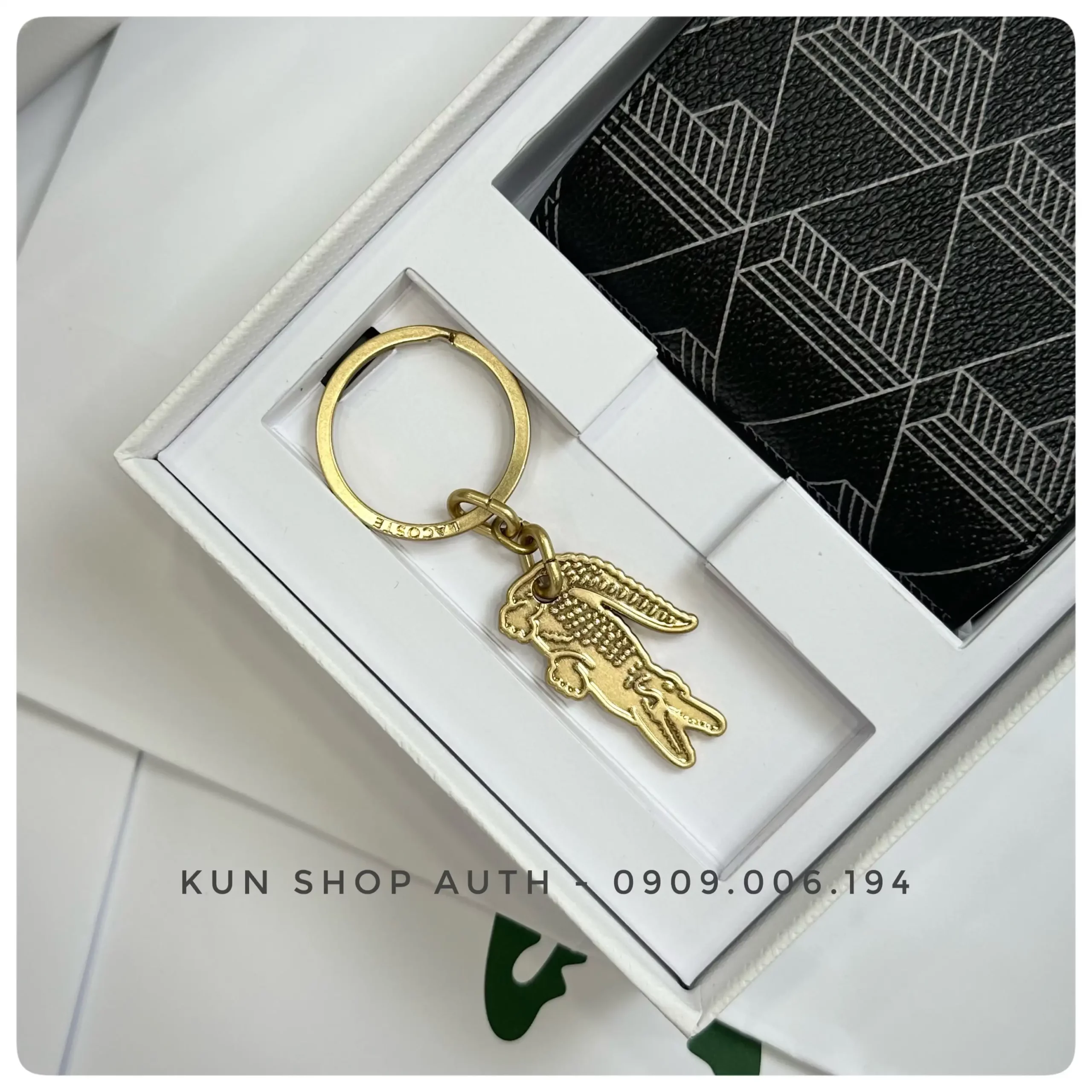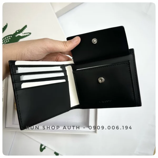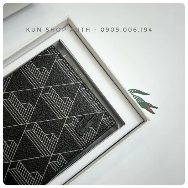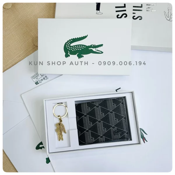 Set ví nam + móc khoá Lacoste, ví thiết kế Small Billfold dòng Monogram, logo cá kim loại cùng màu ví, chất liệu 100% PVC