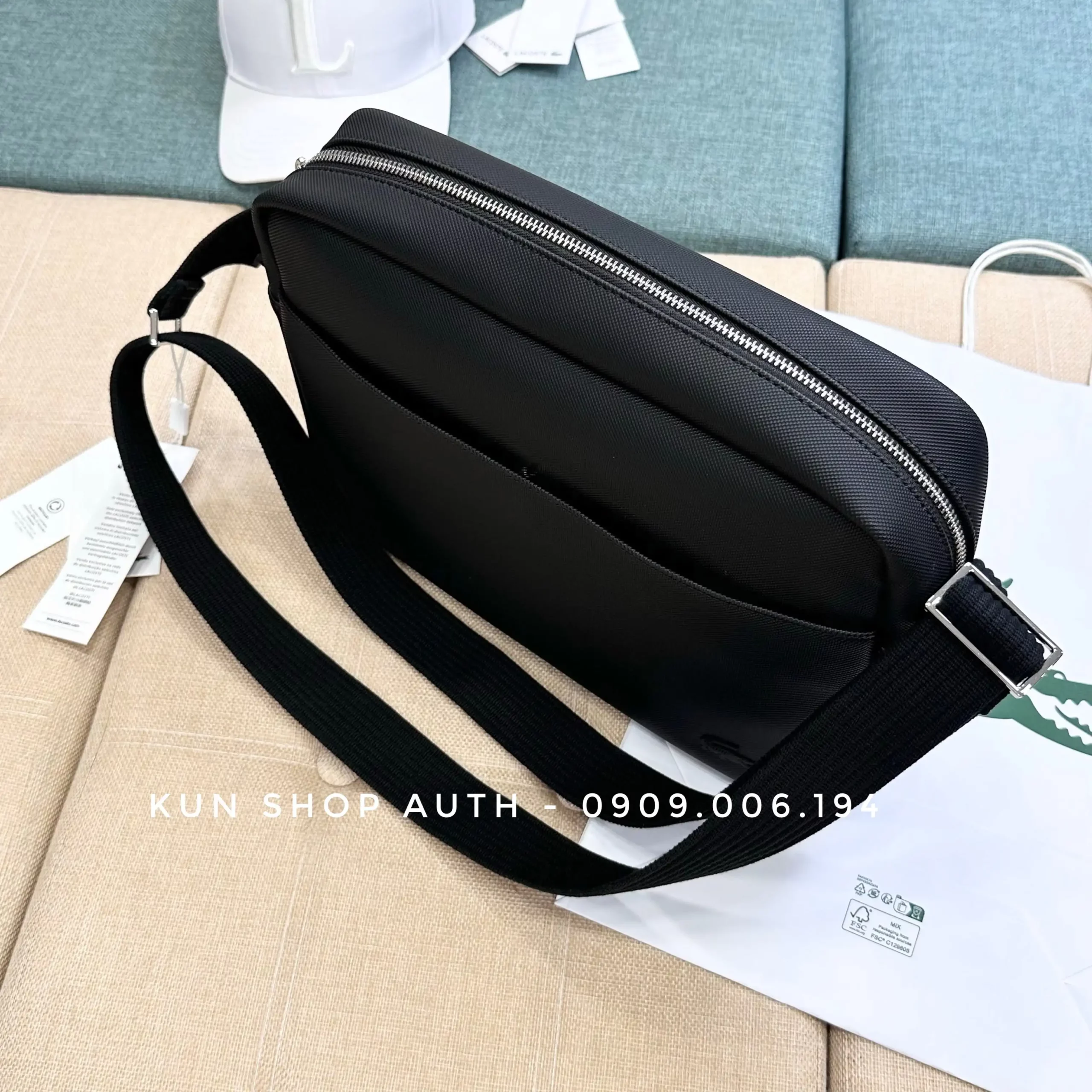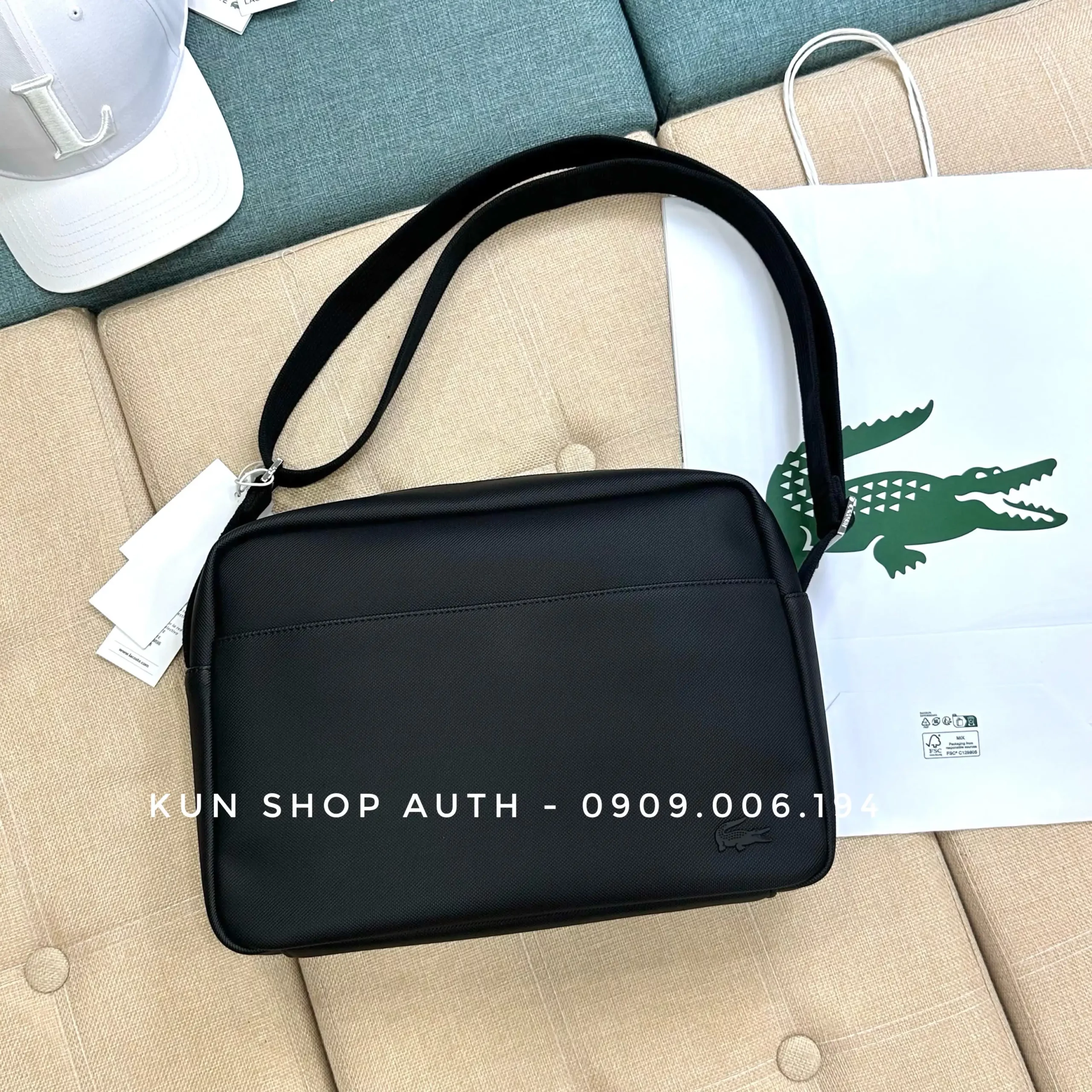 Cặp táp đeo chéo Lacoste, thiết kế màu trơn basic. Chất liệu 100% Polyurethane