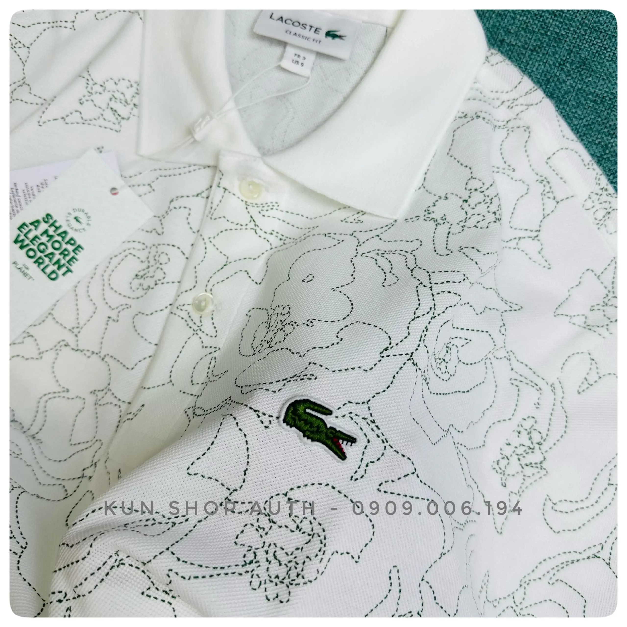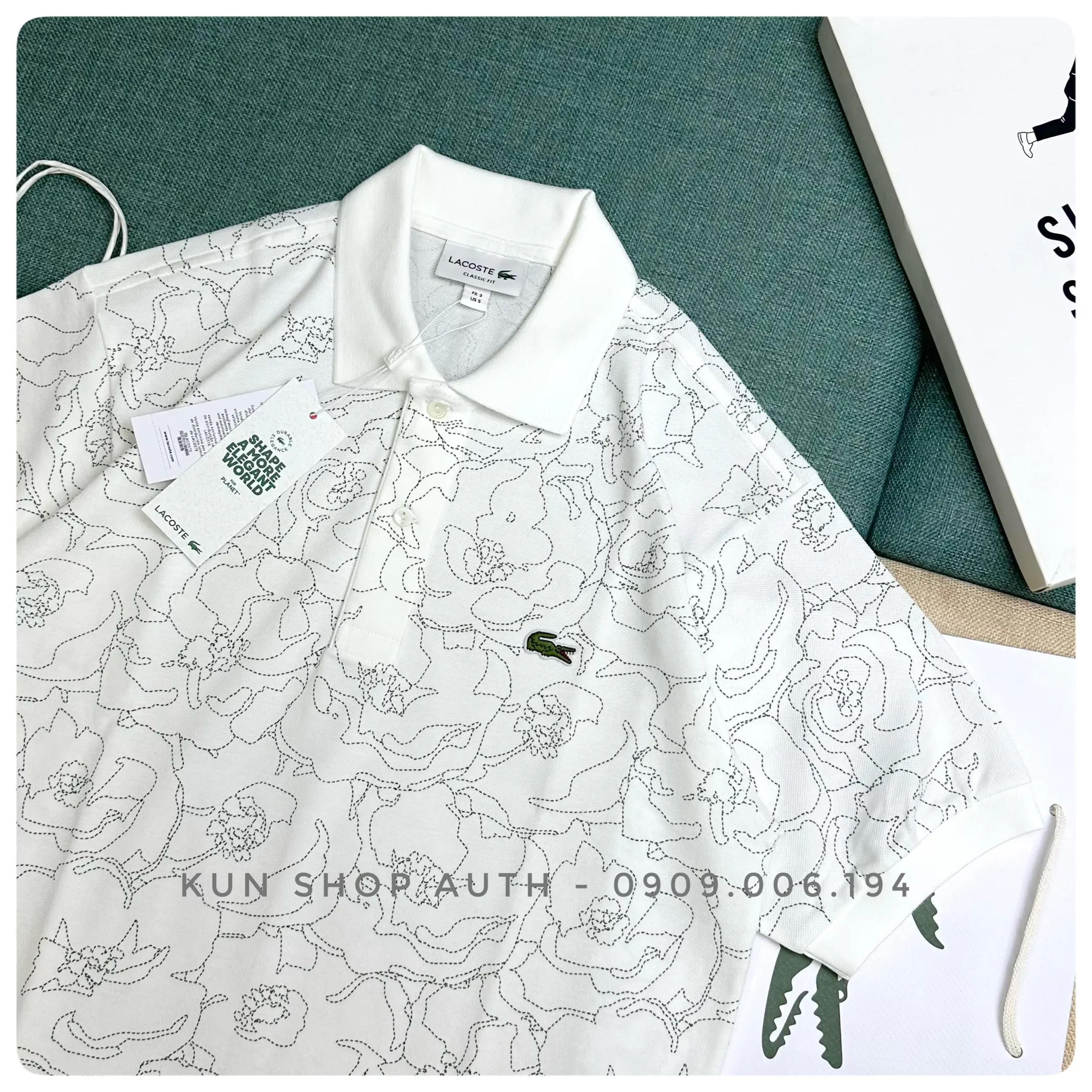 Áo Polo Lacoste, form CLASSIC FIT, hoạ tiết bông hoa lấy cảm hứng từ Robert George, chất liệu 100% cotton.