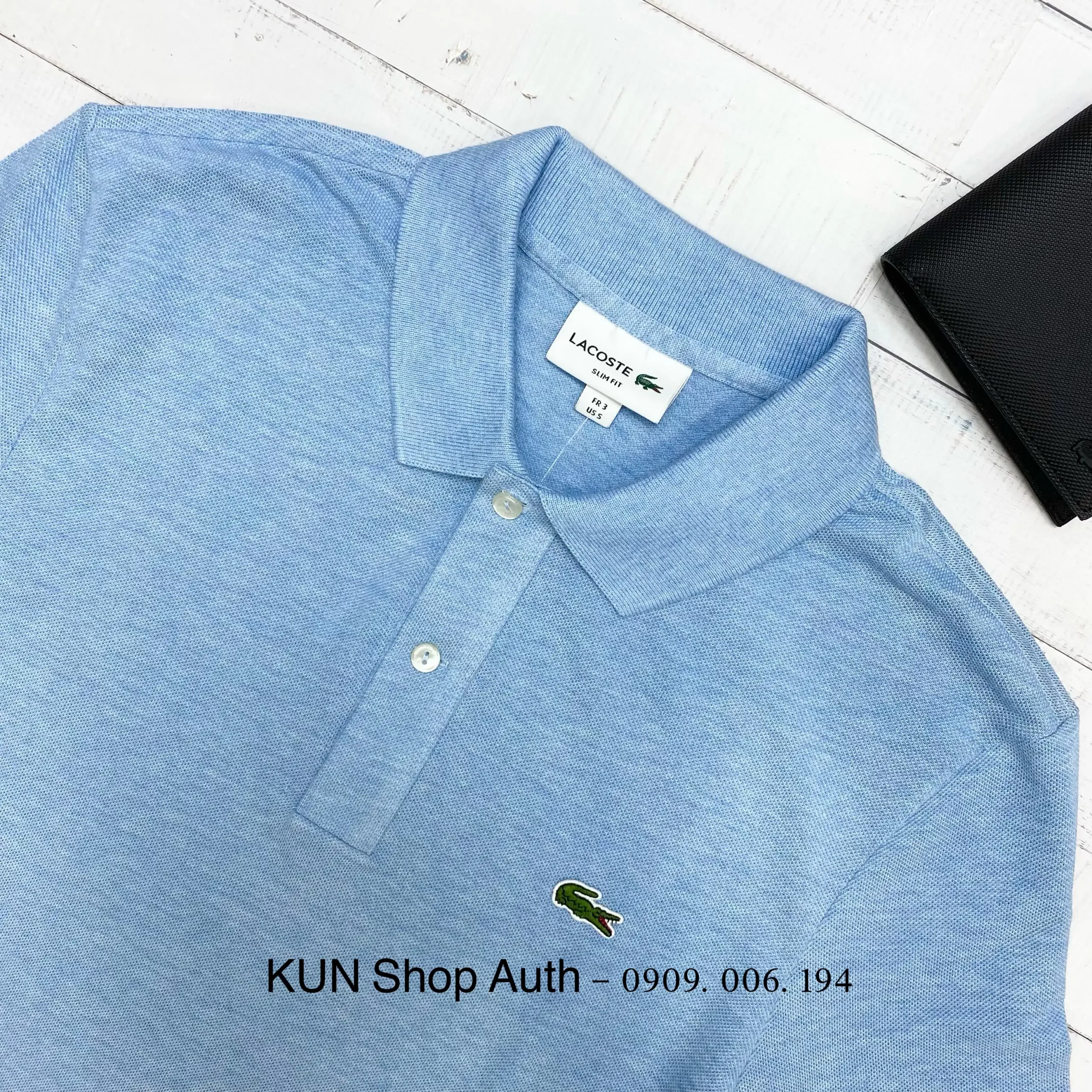 Áo Polo Lacoste, form SLIM FIT, màu trơn truyền thống, cổ áo có 2 nút, logo cá sấu xanh ngực trái, chất vải 100% cotton.