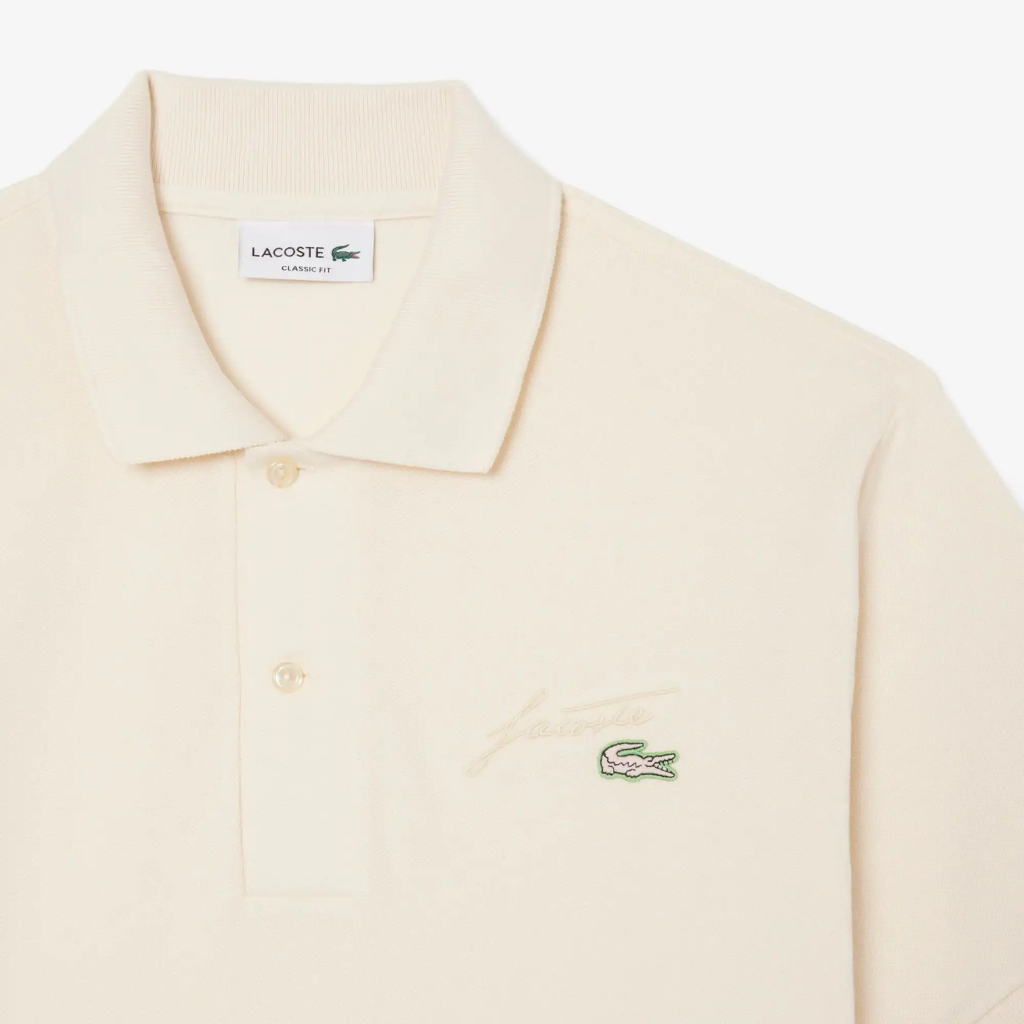 Áo polo Lacoste, form CLASSIC FIT, thiết kế logo cá sấu viền nổi kèm chữ ký Lacoste thêu. Chất liệu 100% Cotton