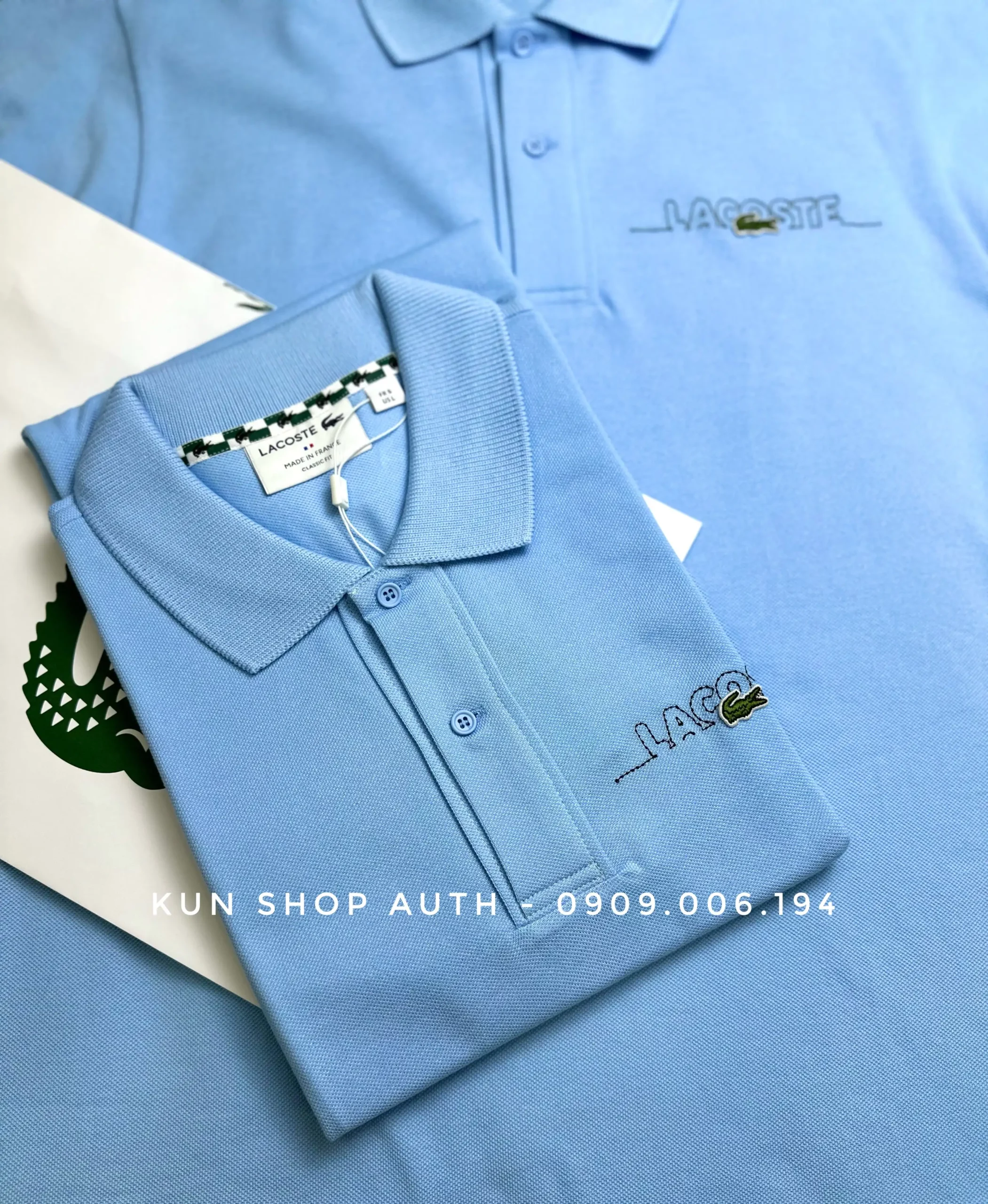 Áo Polo Lacoste form CLASSIC FIT, dòng áo Made in France, logo cá sấu trên nền chữ LACOSTE, chất vải 100% Organic cotton