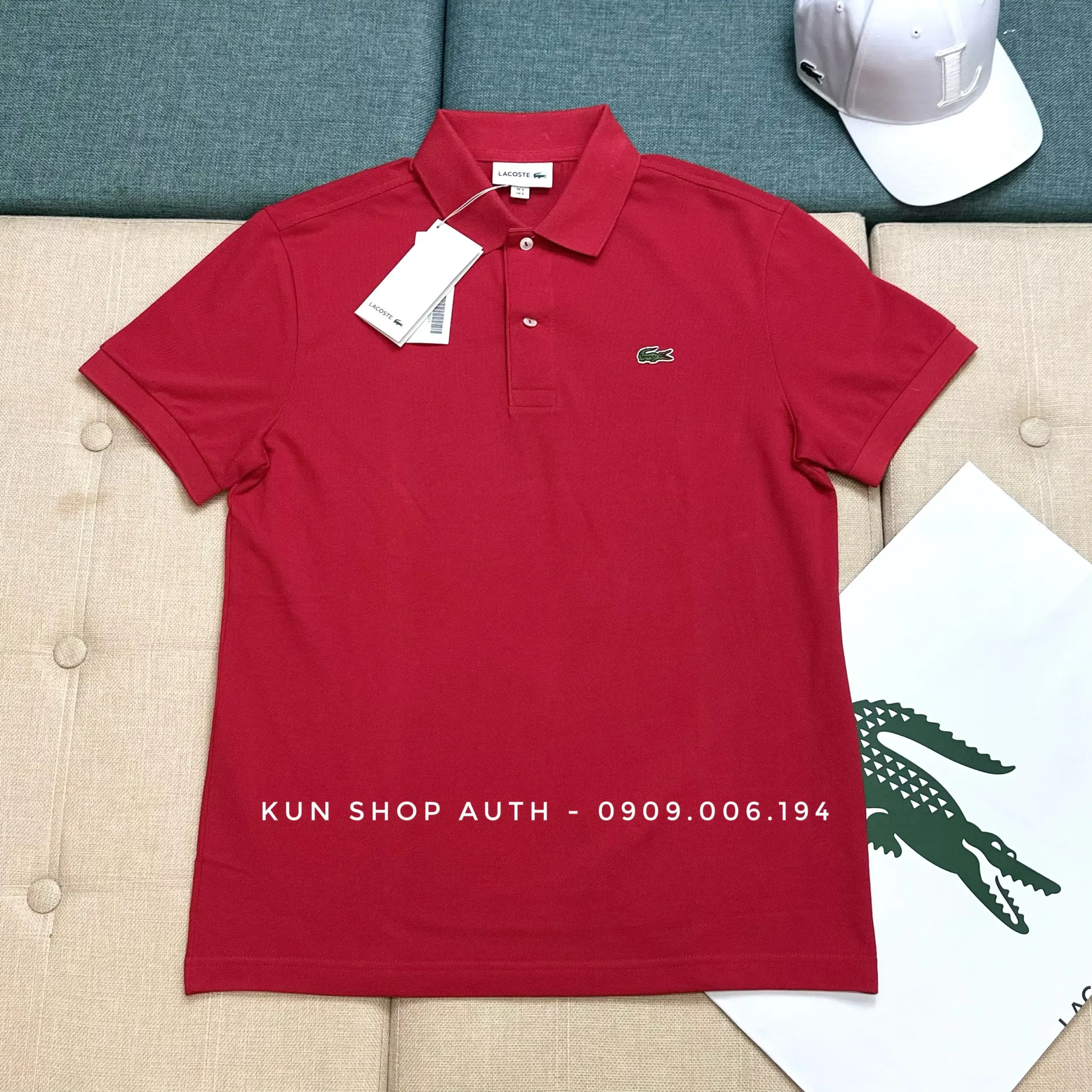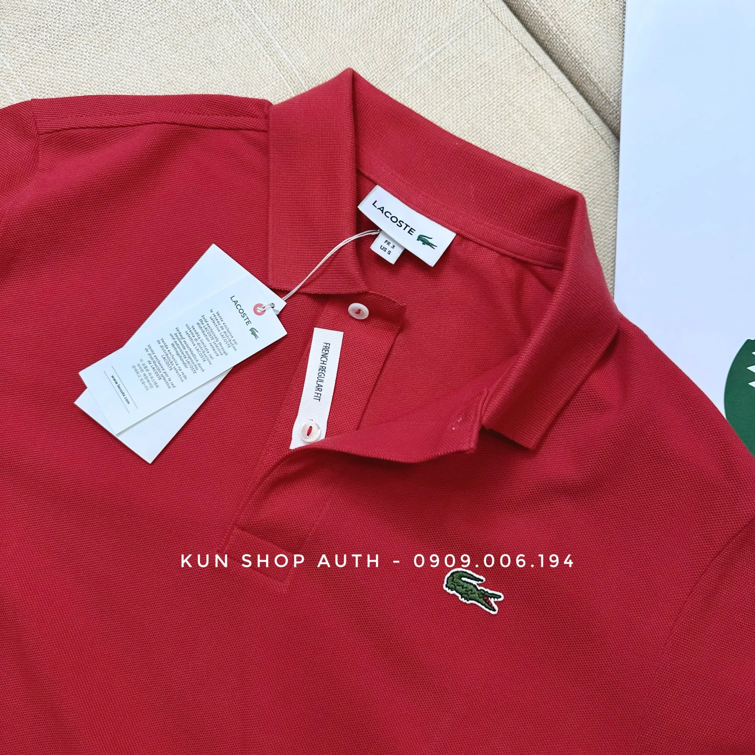 Áo Polo Lacoste, form REGULAR FIT, màu trơn, logo cá sấu xanh truyền thống, chất liệu 100% cotton, made in France