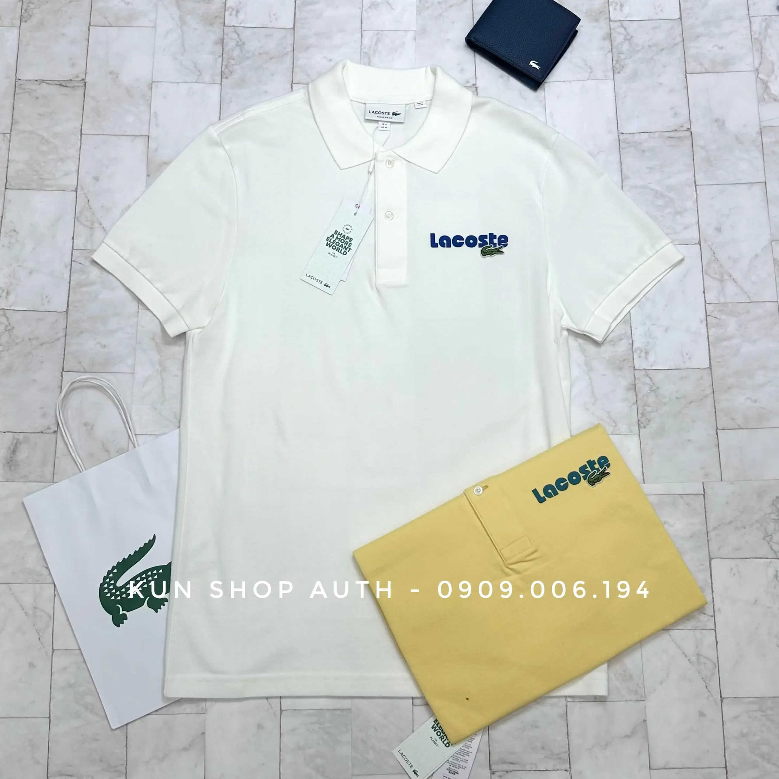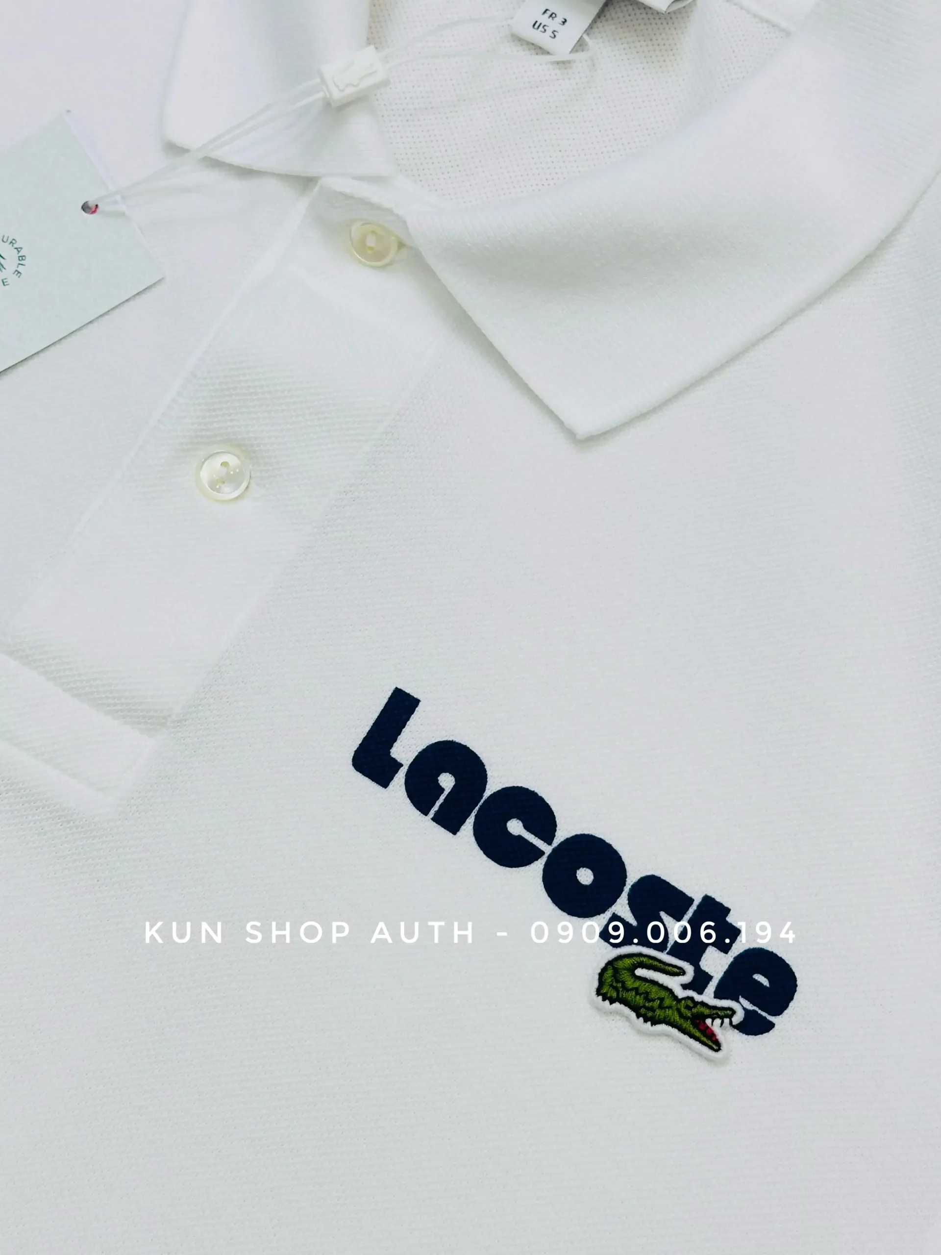 Áo Polo Lacoste, form REGULAR FIT, chữ LACOSTE in + logo cá sấu thêu, chất liệu 100% cotton.