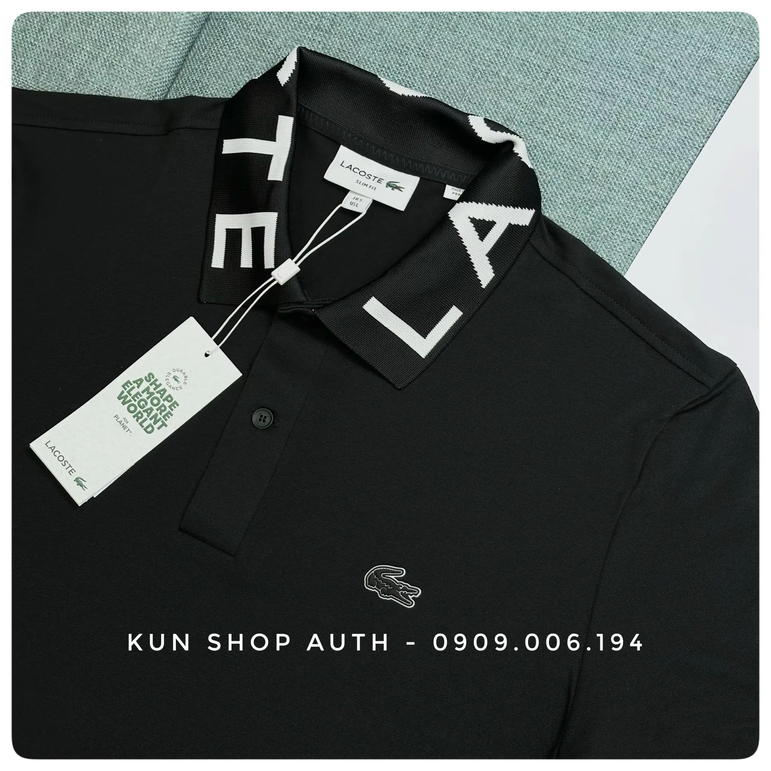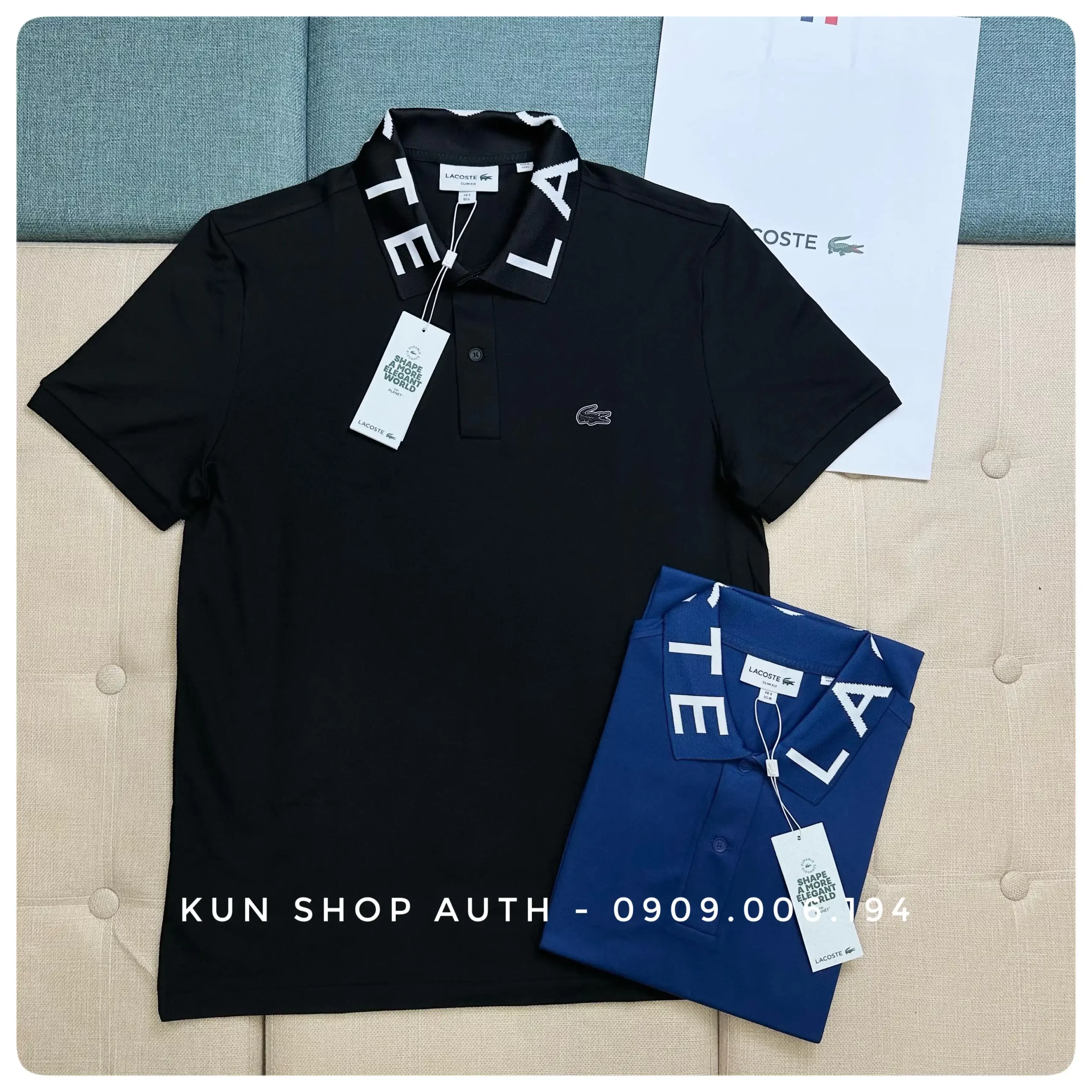 - Thiết kế: chữ LACOSTE trên cổ