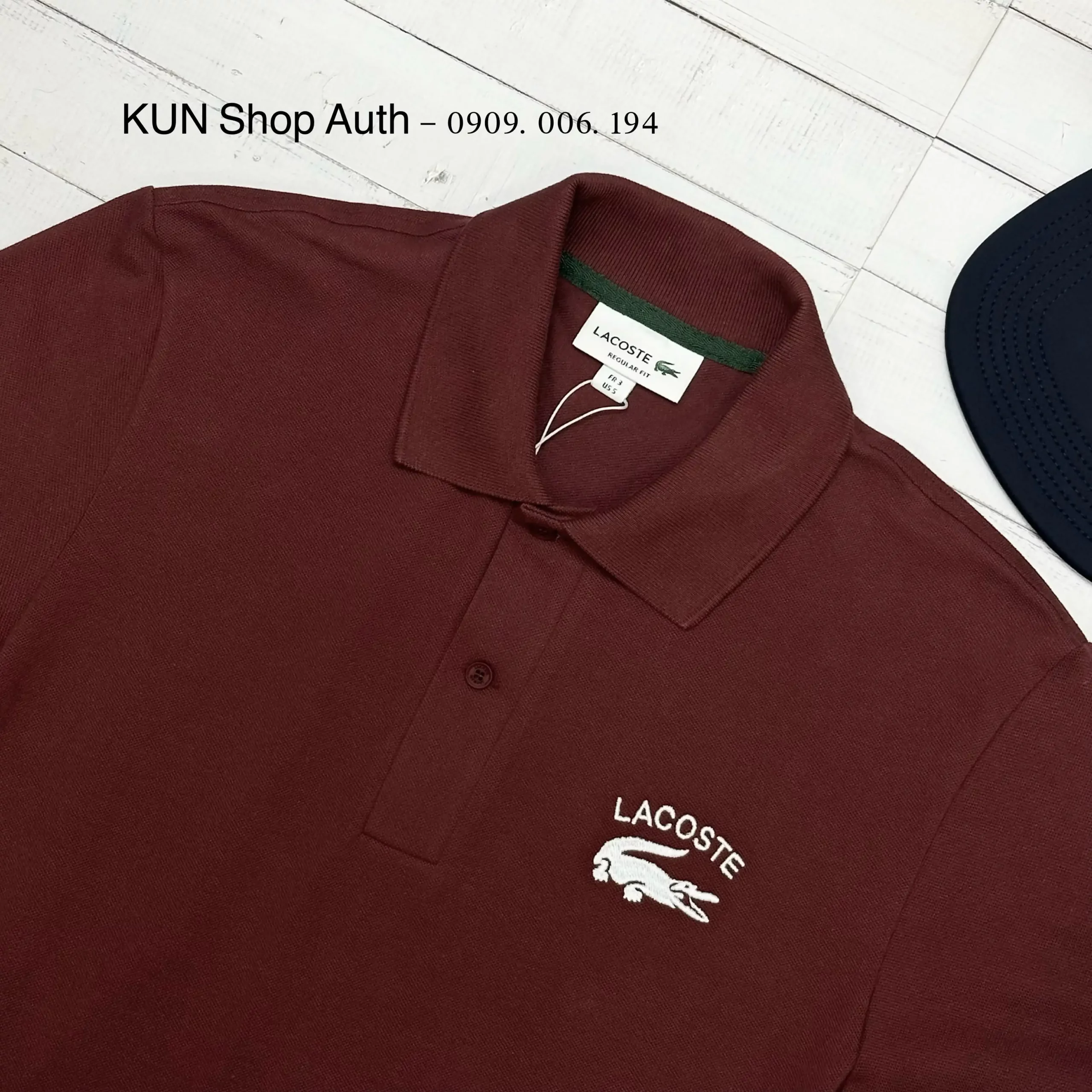 Áo Polo Lacoste form REGULAR FIT, hoạ tiết cá sấu thêu to kèm chữ Lacoste ở ngực áo trái, phía sau áo bên dưới có toạ độ hãng lacoste, chất vải 94% cotton pha 6% Elastane.