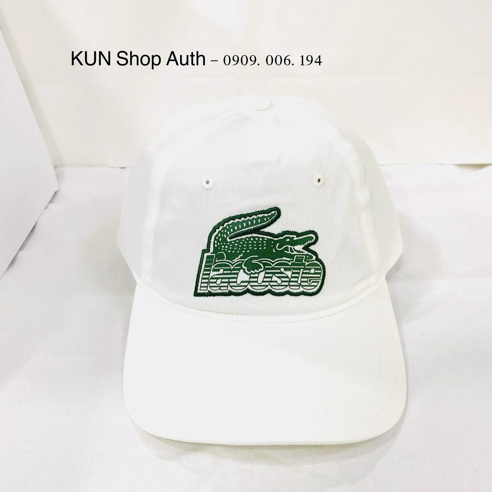 Nón Lacoste, form unisex, logo cá sấu + chữ LACOSTE phía trước nón, chất liệu 100% cotton