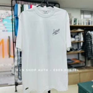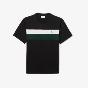 Áo thun cổ tròn Lacoste, form REGULAR FIT, hoạ tiết sọc ngang, chất liệu 70% cotton pha 30% linen.