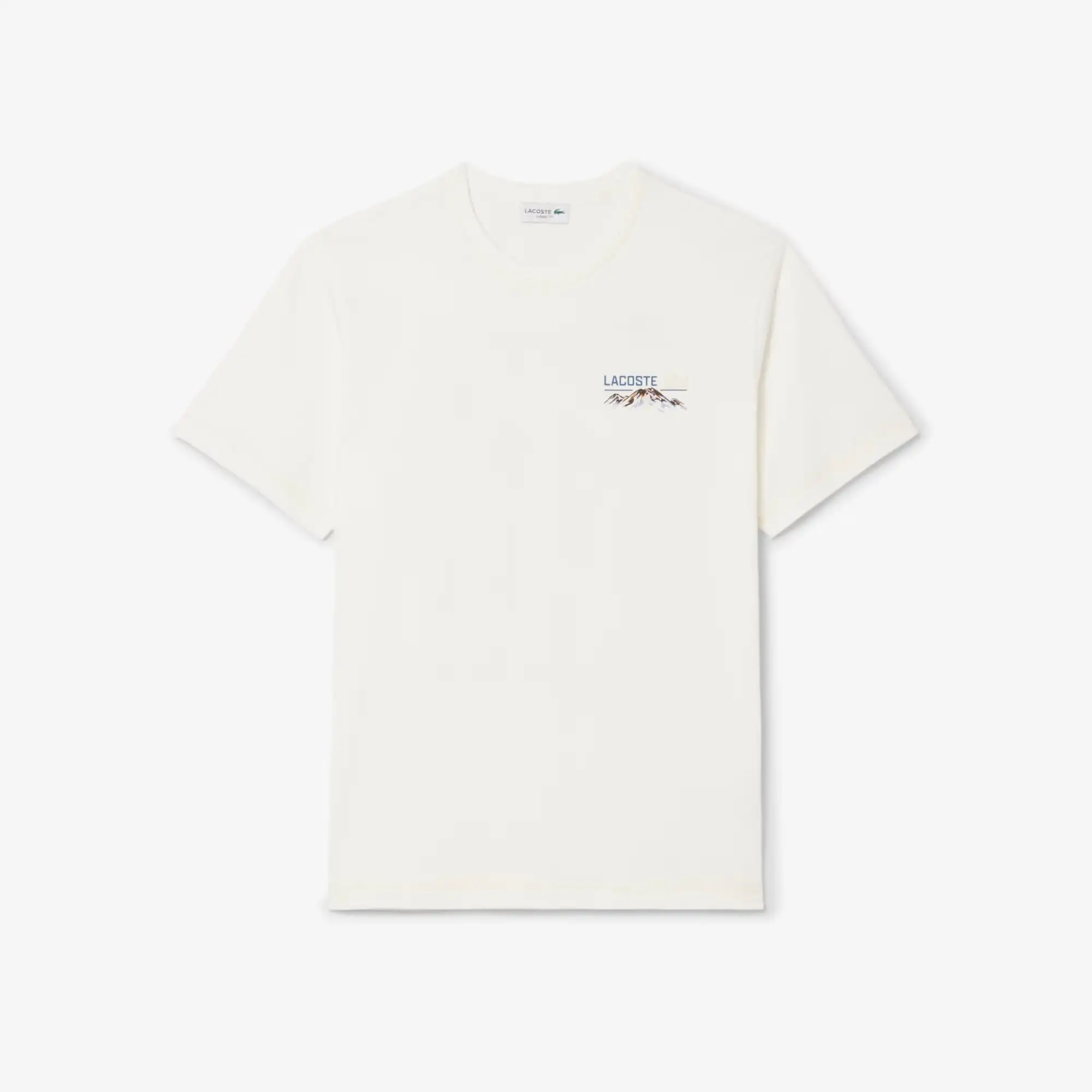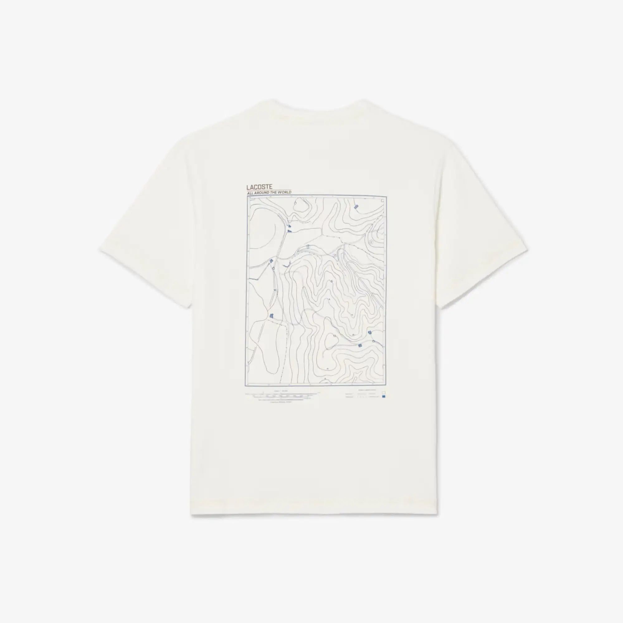 Áo thun cổ tròn Lacoste T-Shirt, form CLASSIC FIT, thiết kế hoạ tiết núi thêu ở ngực trái, in bản vẽ địa đồ topography ở sau lưng. Chất liệu 100% cotton