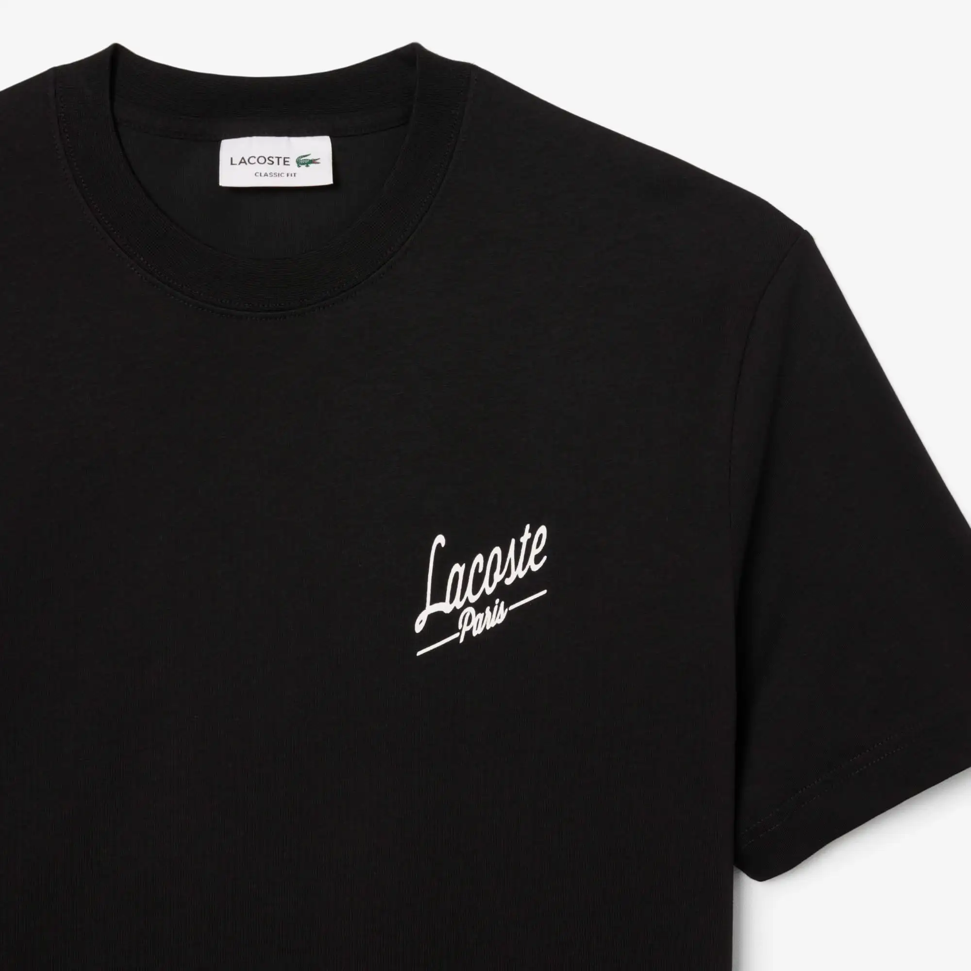 Áo thun cổ tròn Lacoste, form CLASSIC FIT, thiết kế Lacoste Paris trước ngực trái và hoạ tiết Lacoste Paris Heritage sau lưng. Chất liệu 100% Cotton