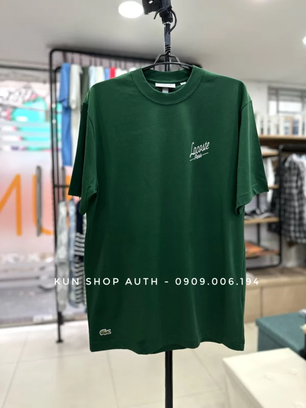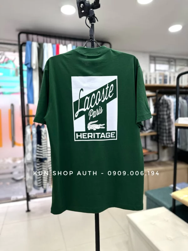 Áo thun cổ tròn Lacoste, form CLASSIC FIT, thiết kế Lacoste Paris trước ngực trái và hoạ tiết Lacoste Paris Heritage sau lưng. Chất liệu 100% Cotton