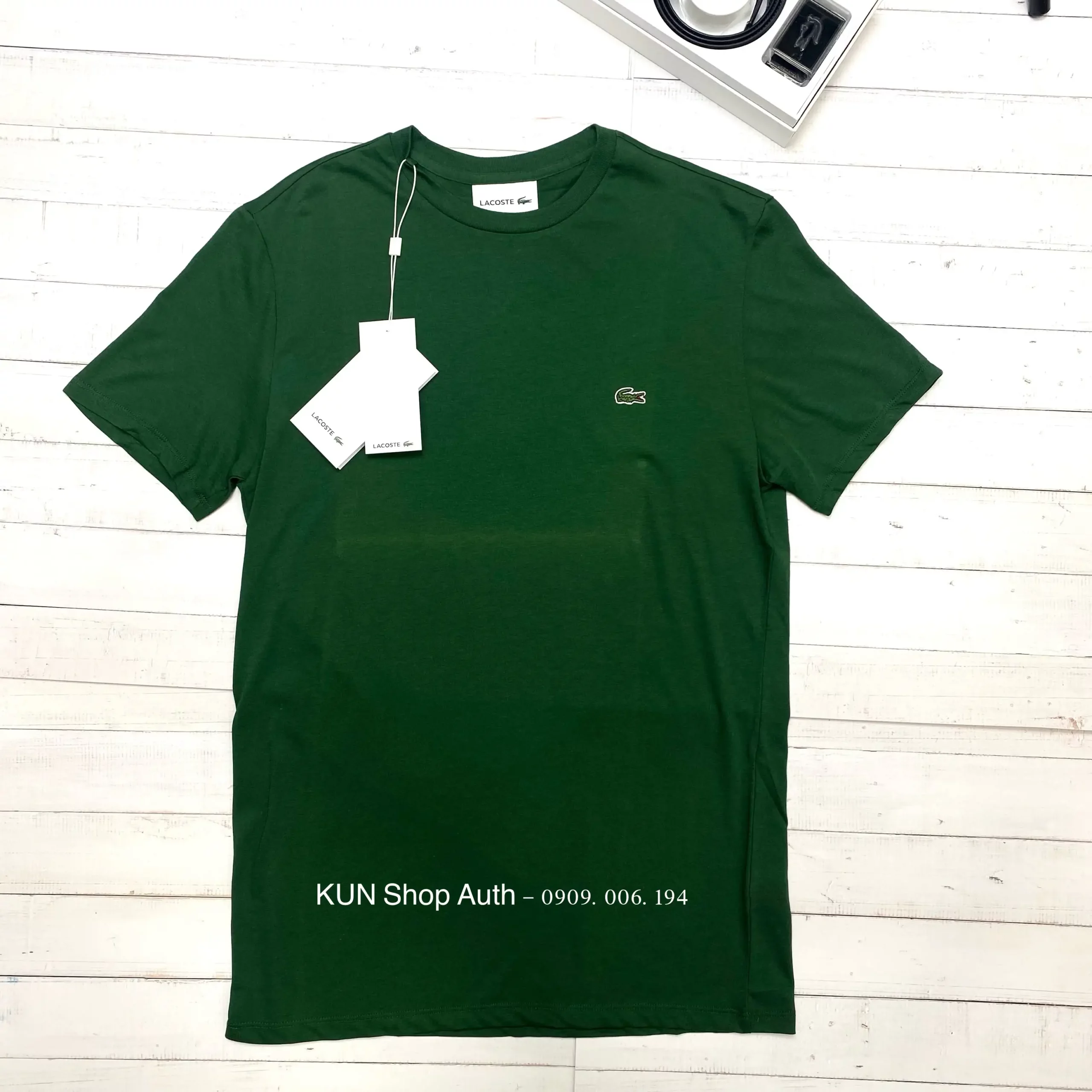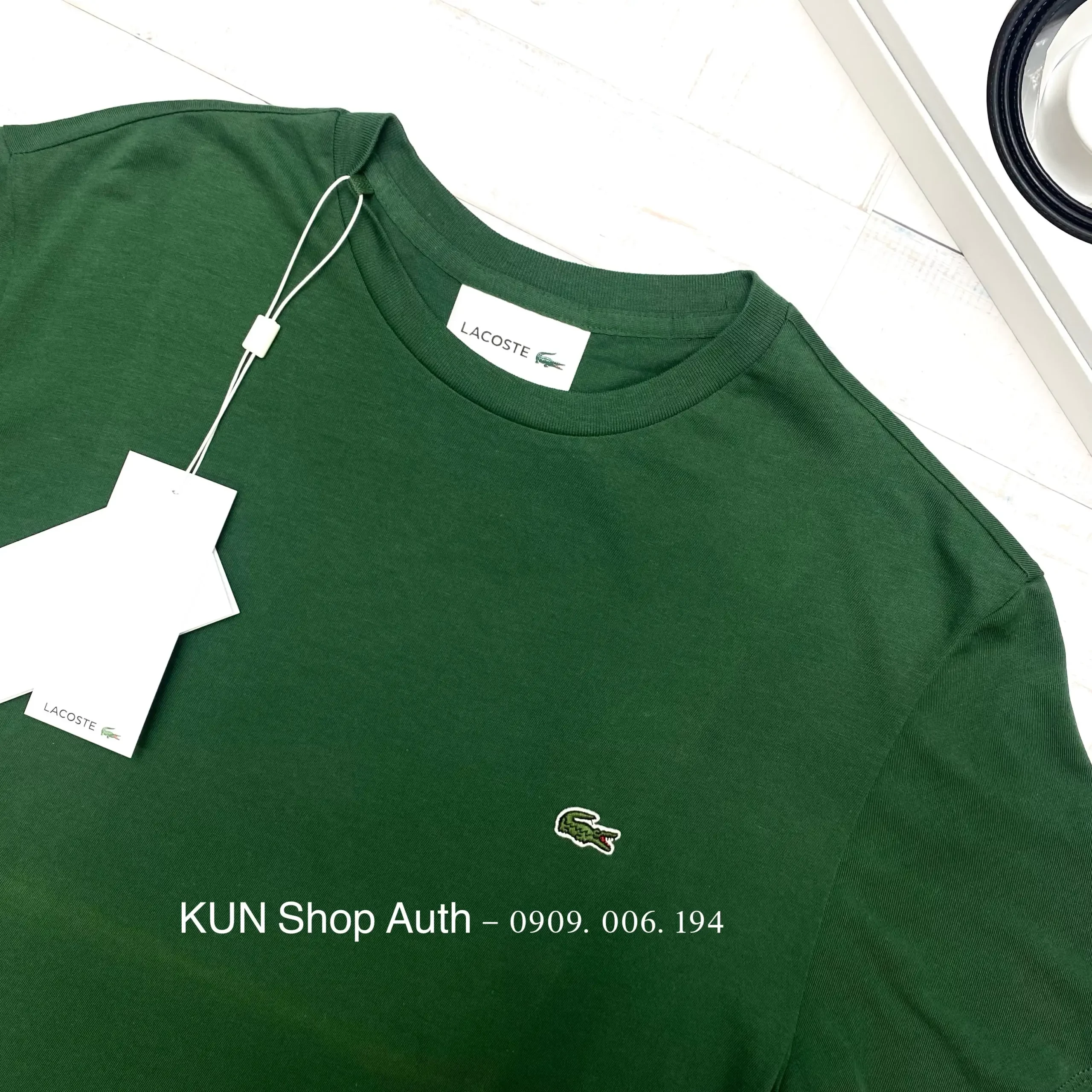 Áo thun cổ tròn Lacoste, form REGULAR FIT, màu trơn, logo cá sấu xanh, chất vải 100% pima cotton