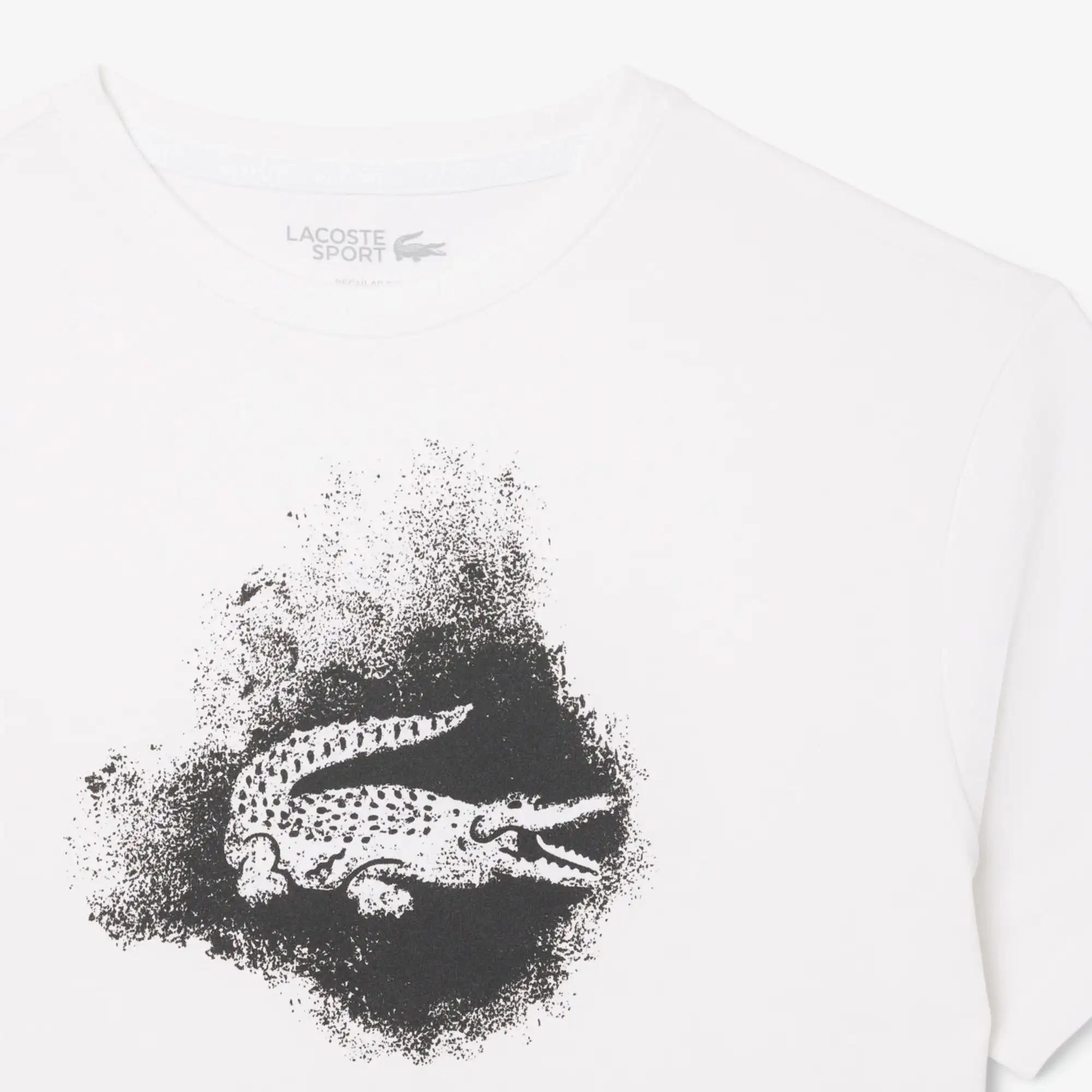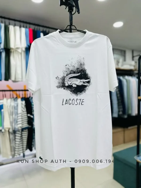 Áo thun cổ tròn Lacoste, form REGULAR FIT, dòng thể thao, thiết kế logo cá sấu hoạ tiết nghệ thuật. Chất liệu 65% cotton pha 35% polyester. Made in Peru